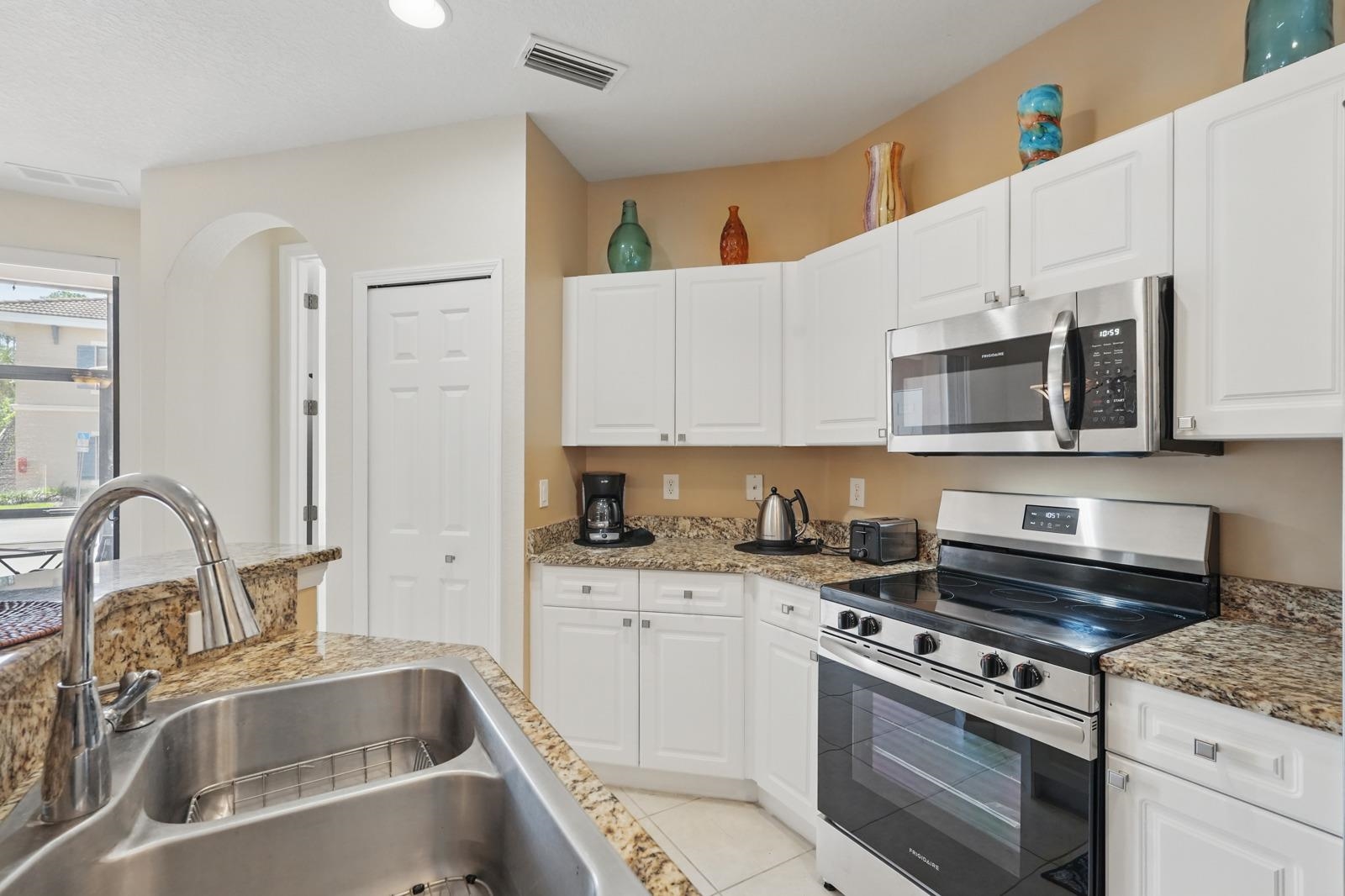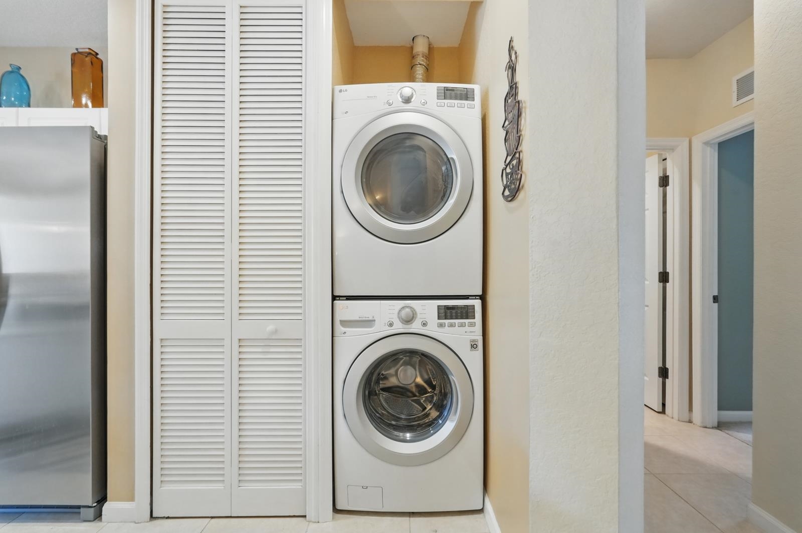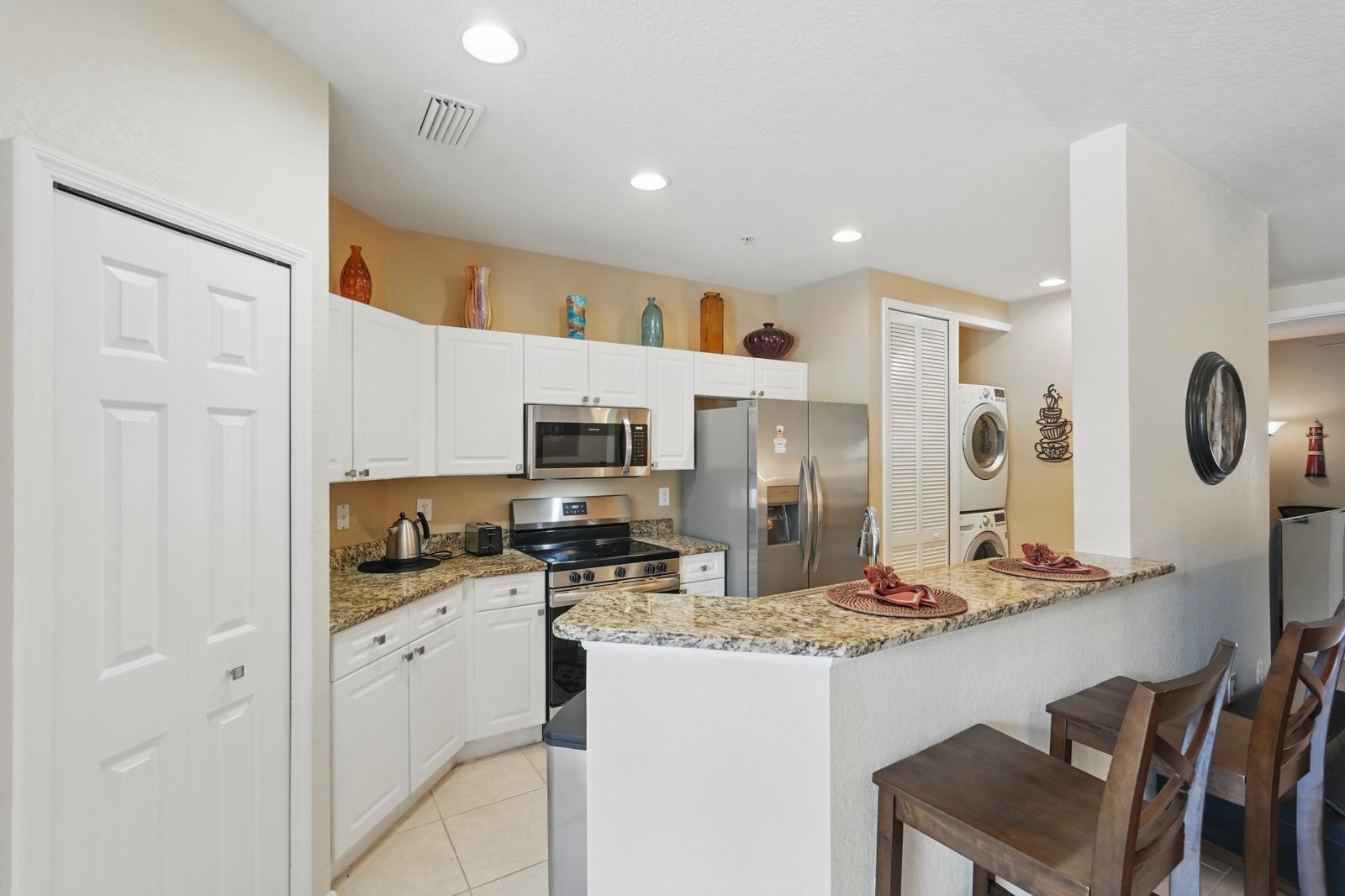 Motivated Seller, Incredibly Maintained!! Fully furnished, ground-floor condo with covered carport in the gated Avila at Palencia. This turnkey-unit offers an open living and dining layout, kitchen with granite countertops, new stainless steel appliances, breakfast bar, and stacked washer/dryer. Dual sliding doors lead to a screened porch with storage, and French doors open to a flexible office/bonus space. Split-bedroom floor plan with private primary suite featuring walk-in closet and ensuite bath. Tile in main areas, carpet in bedrooms. Enjoy ALL Palencia amenities including pools, fitness center, tennis courts, and dog park and more. Walk to schools, Publix, Starbucks, and dining.