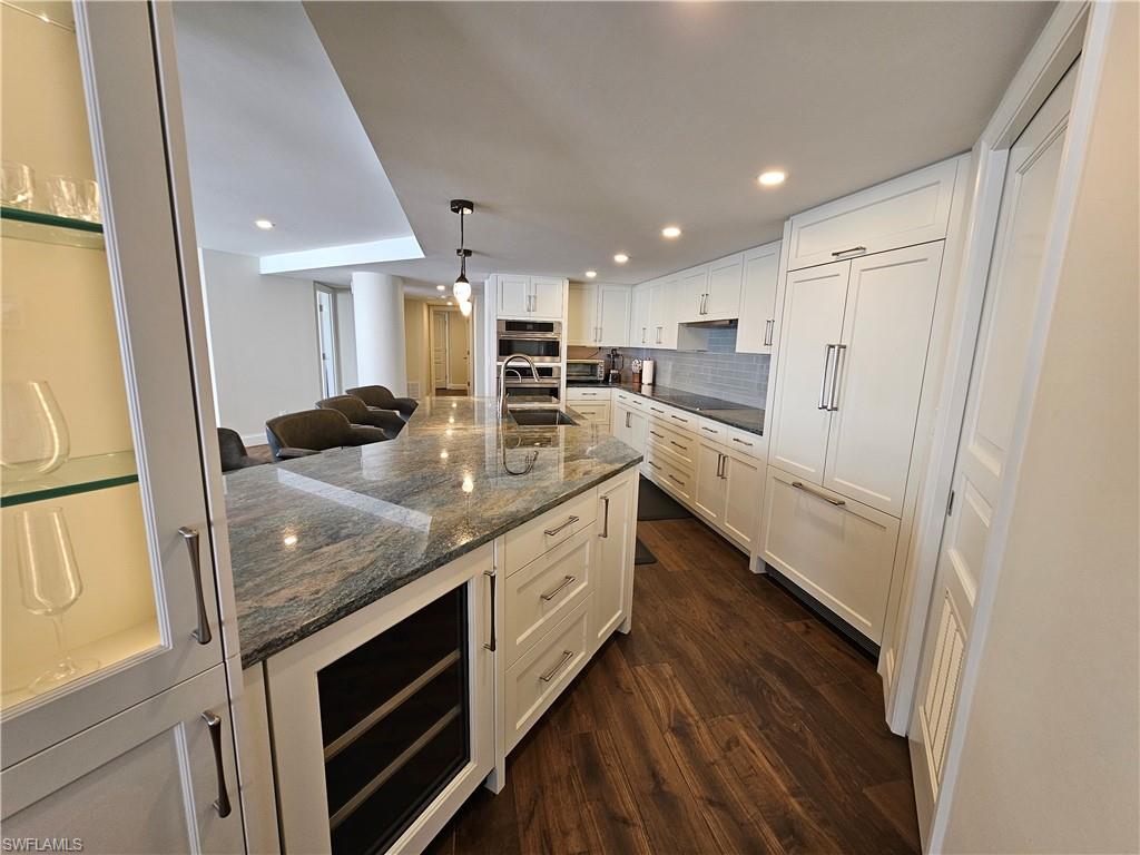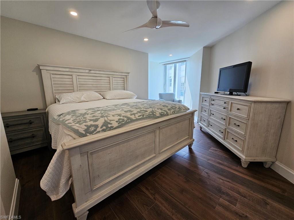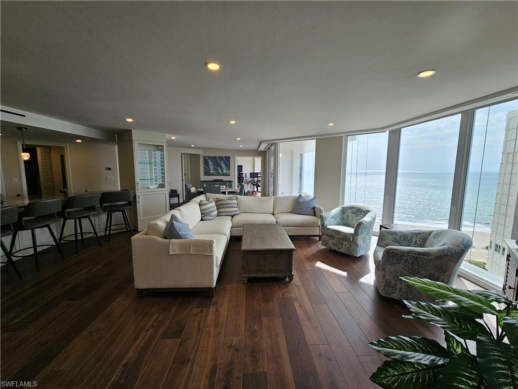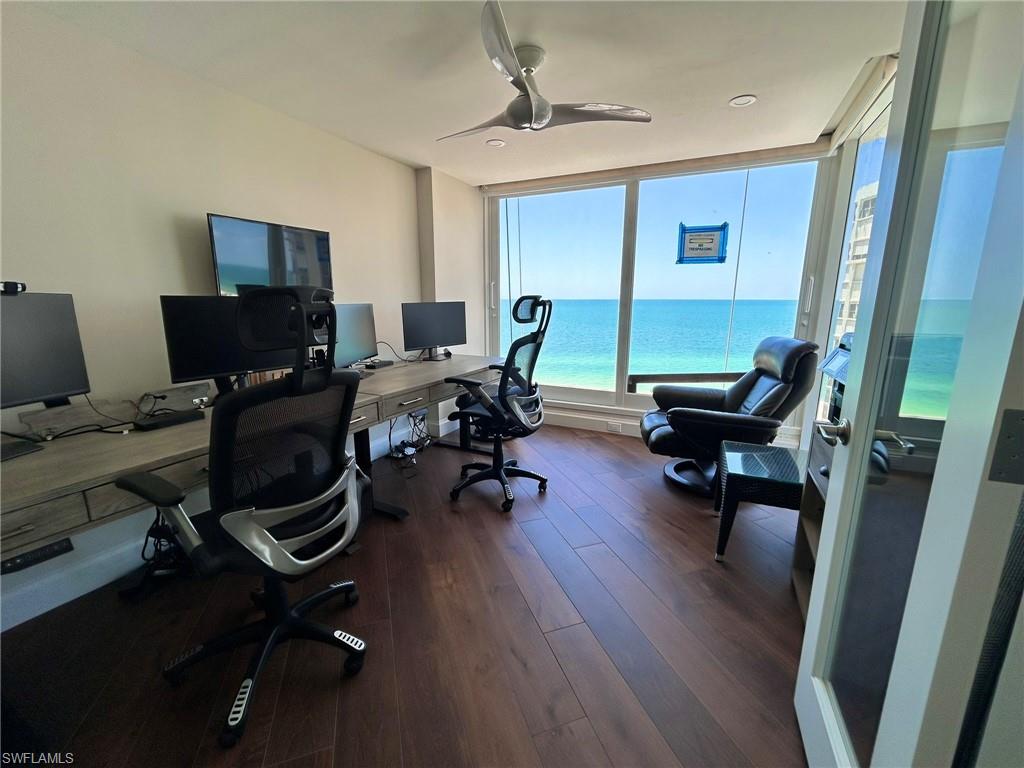 Beautifully renovated 3 bedroom 3 bath plus office with fantastic gulf views from every room! This unit has an entirely reimagined floorplan and is unlike any other unit in the building. The 3rd bedroom is currently furnished as a 2nd office with a queen sleeper sofa. Main west office has 2 desks, 4 monitors, 2 docking stations and 2 keyboards. North office (3rd bedroom) has 1 desk, 2 monitors, 1 docking station and 1 keyboard. Perfect for those who are working remotely. Please Note: Building balcony railings are currently being updated and balcony will not be usable until September 2025. Please excuse our dust, all Photos taken during building renovations.