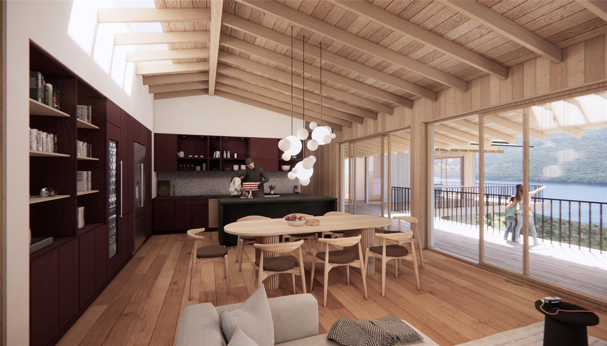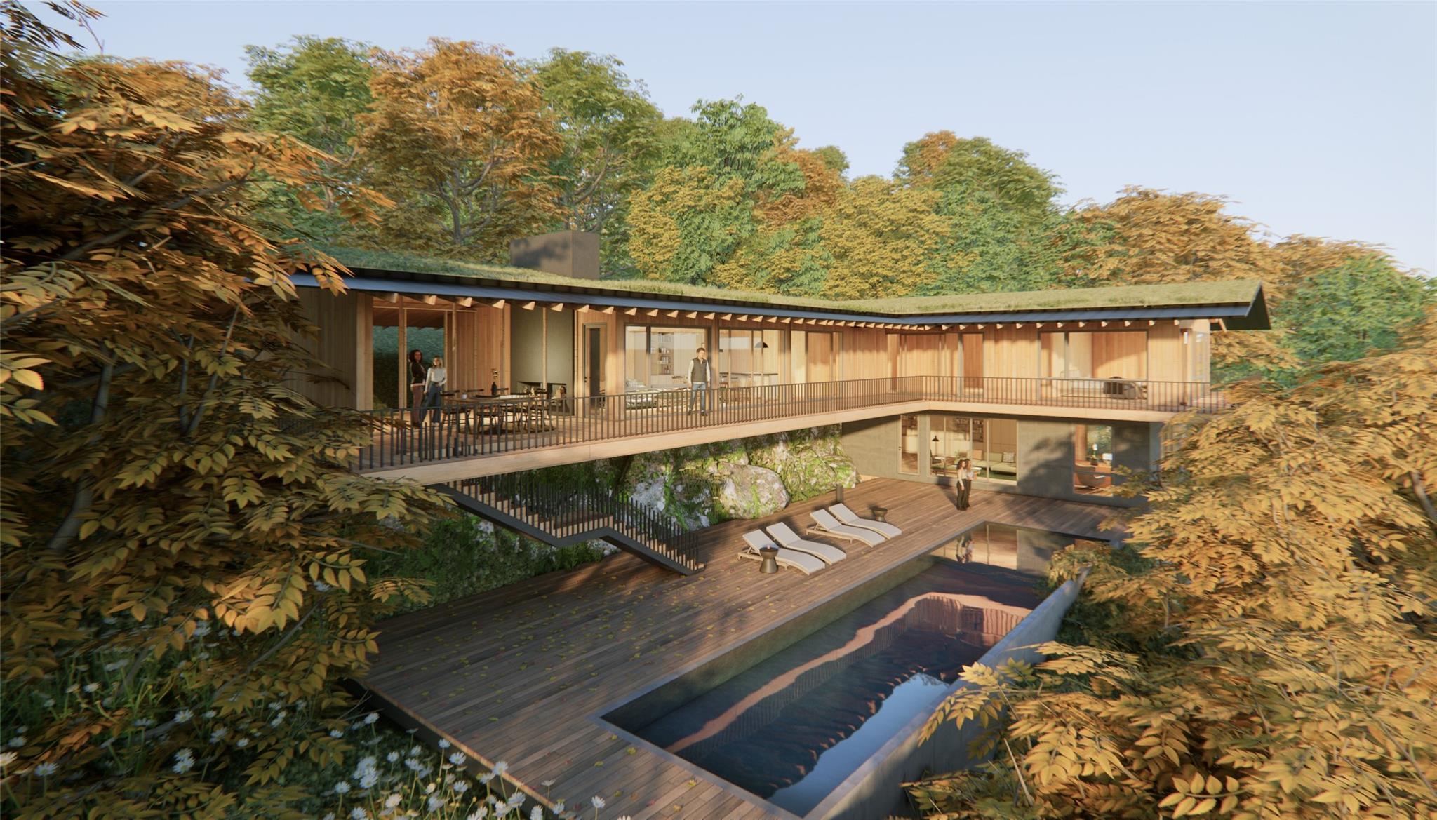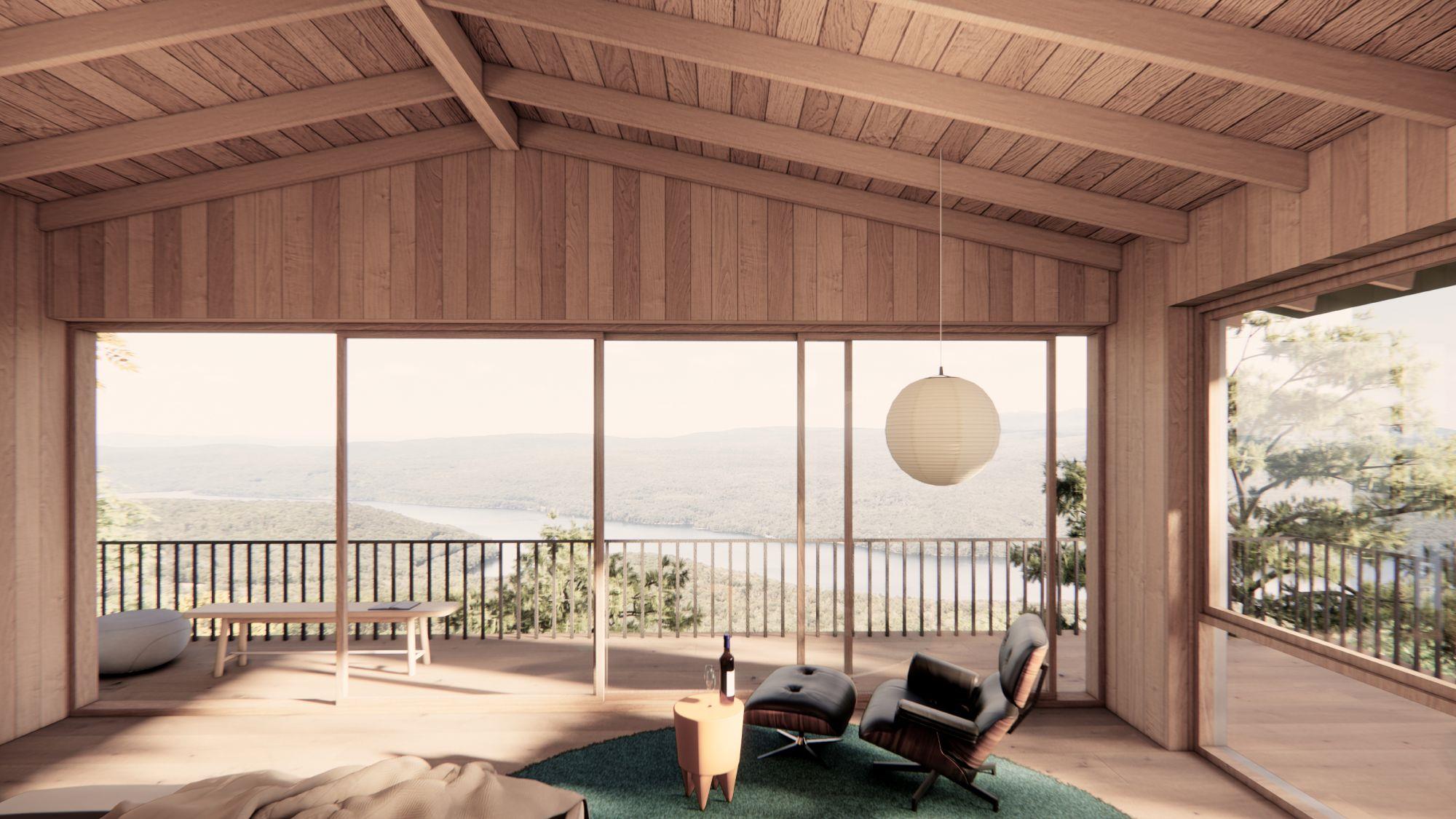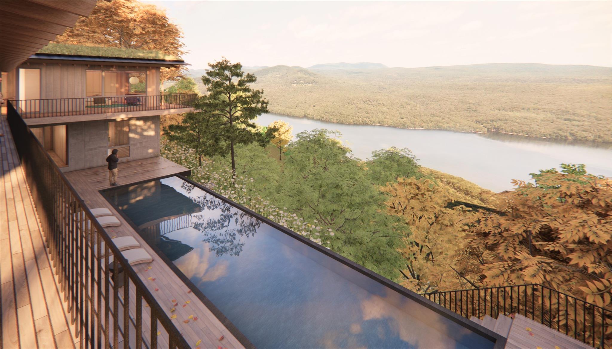 This exceptional mountain property showcases innovative architectural design that respects and enhances its natural setting. This 3, 100 square foot home offers sophisticated living spaces with direct connection to the surrounding landscape. The main living area runs parallel to the natural slope, partially integrated into the terrain for energy efficiency and protection. Floor-to-ceiling triple-pane sliding glass doors open completely to create a seamless transition between indoor comfort and outdoor living, with panoramic mountain views from every angle. The primary suite occupies a premium position extending outward from the main structure, providing exceptional privacy and commanding views. Its private deck creates an elevated vantage point above the tree canopy toward distant mountain peaks. With three bedrooms, three and a half baths, and a versatile den that can function as a fourth bedroom, the home accommodates guests with ease. The thoughtful floor plan balances communal spaces with private retreats. Premium materials throughout include warm cedar cladding and architectural concrete elements that complement the natural surroundings while providing exceptional durability and minimal maintenance. Kaaterskill House represents a rare opportunity to own a significant architectural property that delivers both everyday livability and a meaningful connection to the mountain landscape. Modern luxury meets natural beauty in this thoughtfully designed mountain retreat.