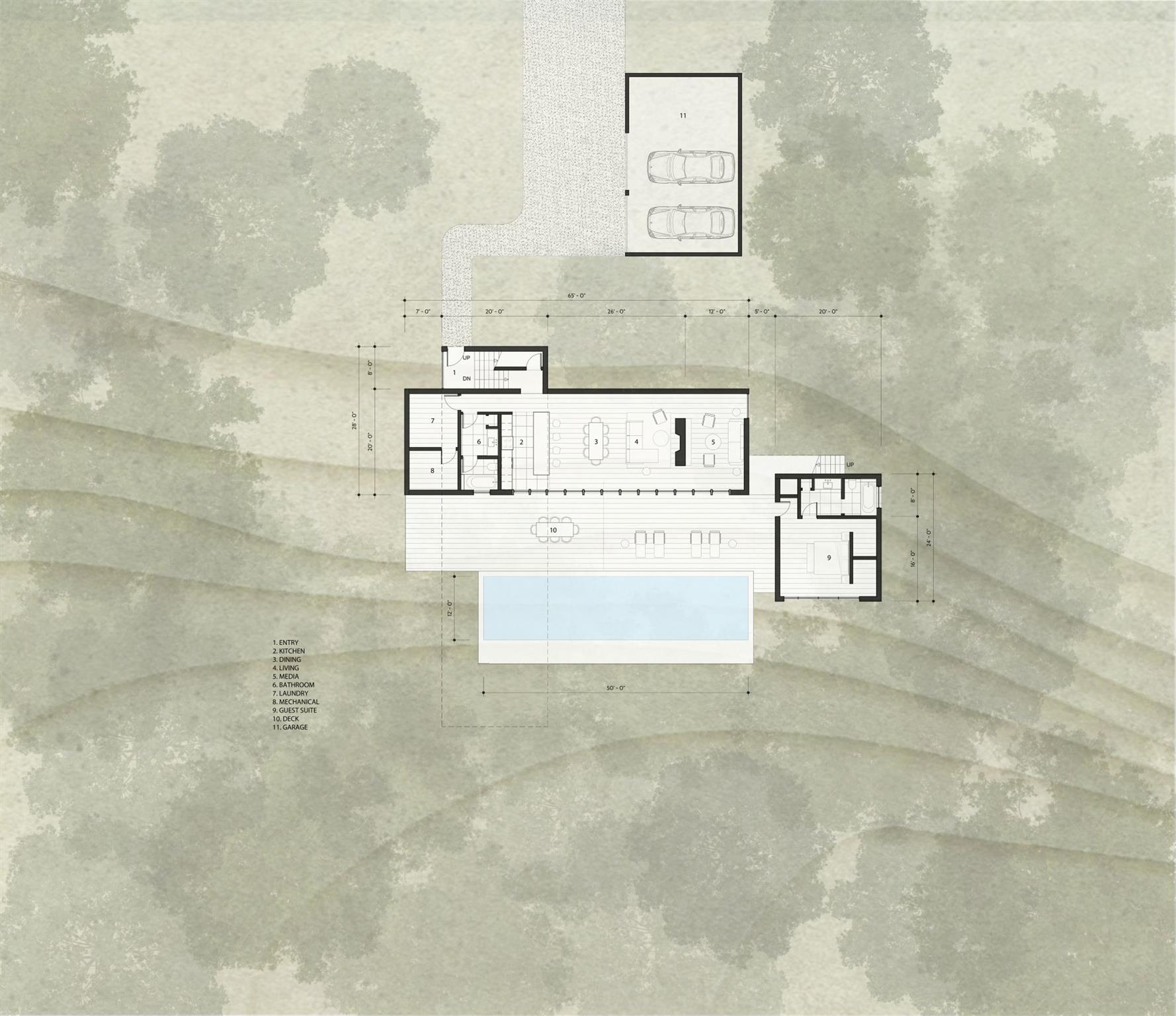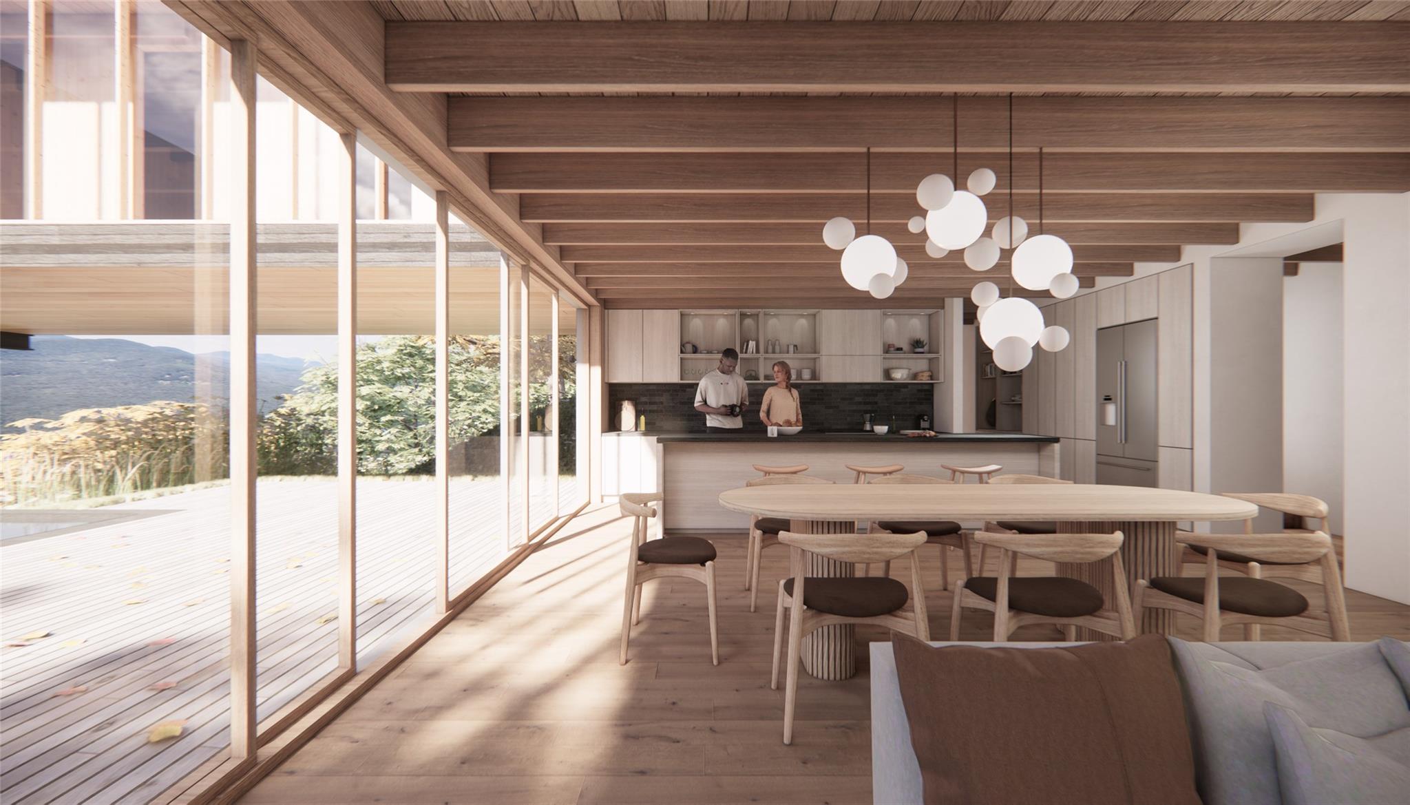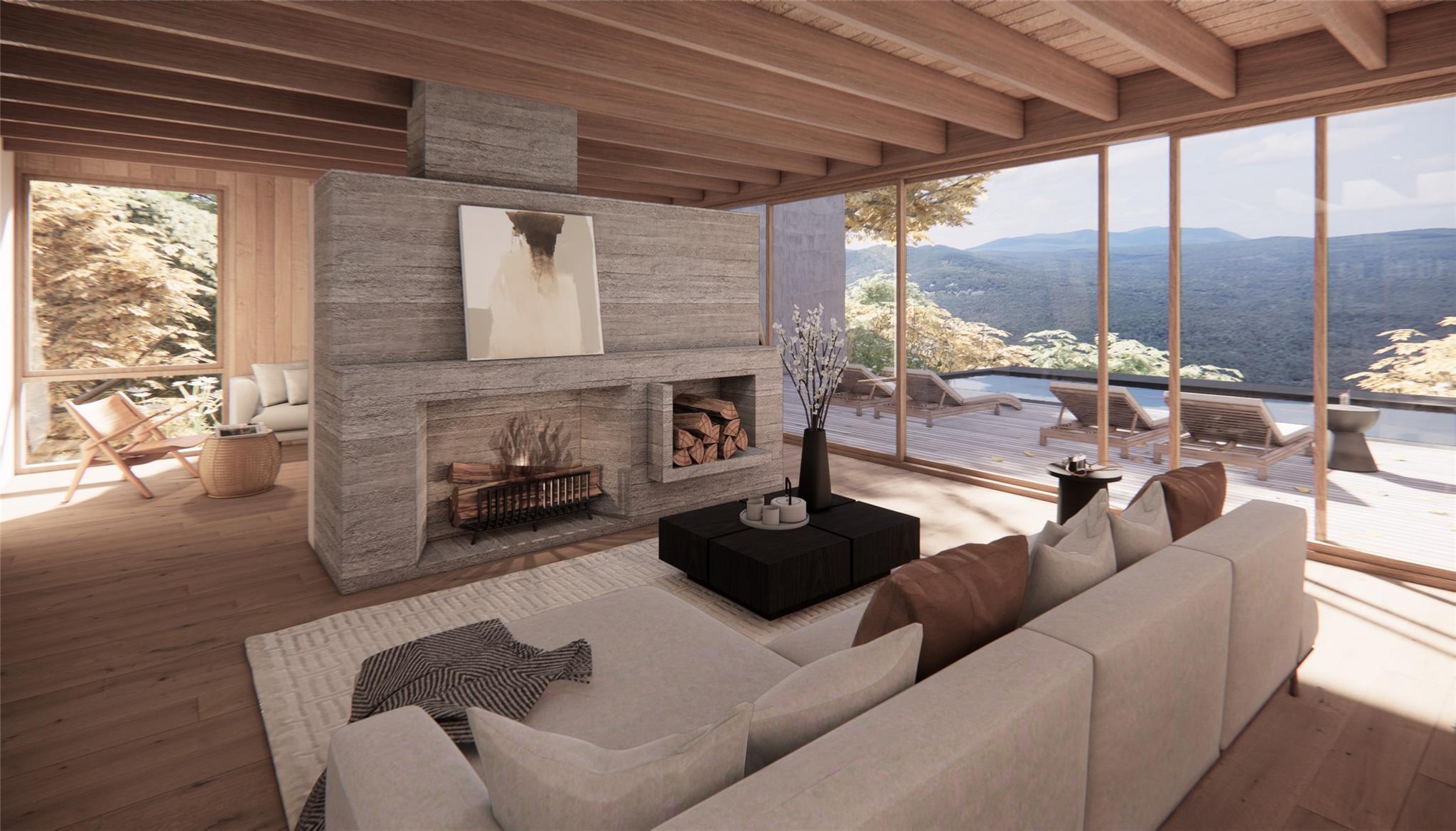 This contemporary mountain home designed by Mapos Architects offers sophisticated living in perfect harmony with its natural surroundings. Thoughtfully divided into three distinct sections to preserve the landscape's integrity, this 3, 400 square foot residence provides both luxury and connection to nature. The main living area features warm cedar cladding and a distinctive green roof deck that extends the natural landscape. Floor-to-ceiling triple-pane sliding glass doors open completely to transform the space into a seamless indoor-outdoor environment, perfect for entertaining or peaceful relaxation. The bedroom wing extends dramatically outward from the slope, creating a floating effect above the landscape. The primary suite includes a private, deck with unobstructed mountain views, while three additional bedrooms, each offer their own bath and tranquil setting. A separate guest wing, constructed of poured concrete that echoes the surrounding stone terrain, provides privacy for visitors and includes its own elevated roof deck with panoramic vistas. Built with premium sustainable materials and meticulous attention to detail, Slide Mountain House represents exceptional mountain living with modern comforts. This property balances architectural significance with practical luxury—an investment in both lifestyle and legacy in one of the Catskills' most desirable locations.