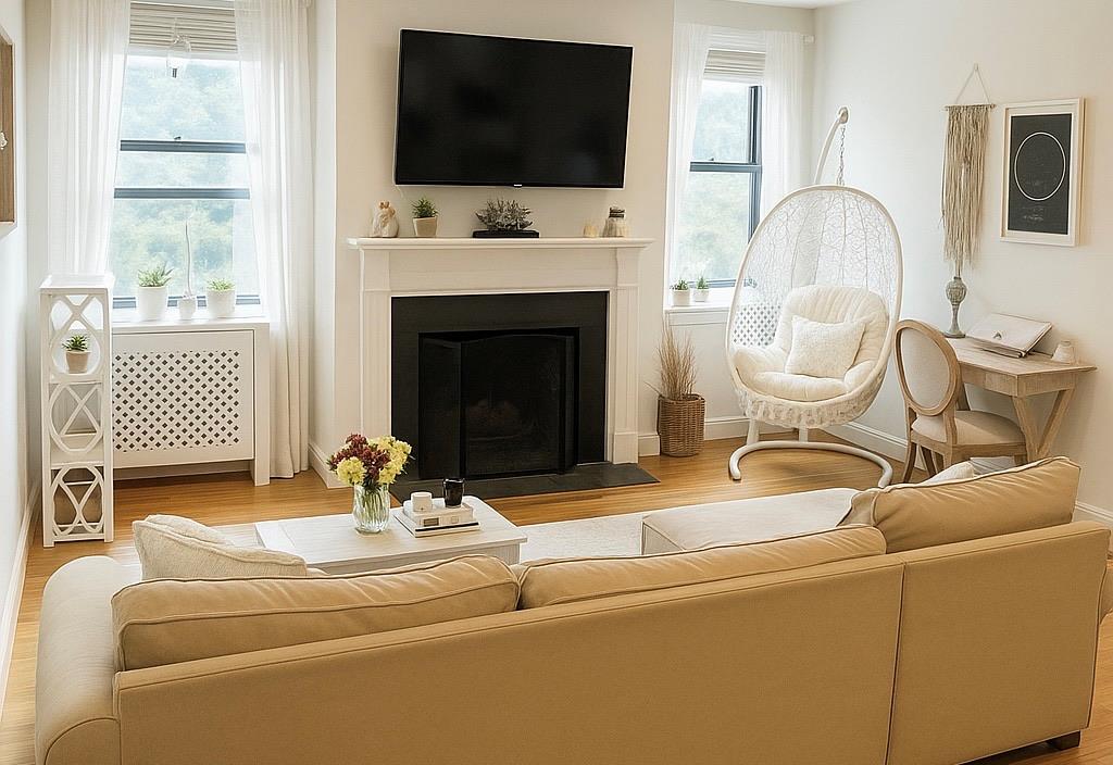 Luxury living meets ultimate convenience in this beautifully maintained, sun-filled 1-bedroom corner unit at 68 E Hartsdale Ave, Unit #5E, located in the highly desirable, pet-friendly Country Club Apartments. Just 30 minutes from Grand Central, this elegant pre-war building offers timeless charm and modern updates throughout. The spacious 800 sq ft layout features classic hardwood floors, recessed lighting, and a wood burning fireplace in the oversized living room. A welcoming foyer with a coat closet flows into a renovated kitchen with stainless steel appliances and a brand-new floor, while the generous bedroom includes double closets and a full bath. The building offers a suite of amenities including a fitness center, bike room, private storage, card-operated laundry, a garbage chute on every floor, a live-in super, and a newly updated roof. Ideally located just a 10-minute walk to the Hartsdale Metro-North station and steps from local shops, dining, bakeries, and walking and bike paths, this residence is surrounded by everyday conveniences like a pharmacy and wine shop. Directly across the street, residents can enjoy the beautifully redesigned Bob Gold Parklet—a beautifully built park perfect for relaxing, reading, or simply taking in the neighborhood charm. This is refined, easy living in the heart of Hartsdale.