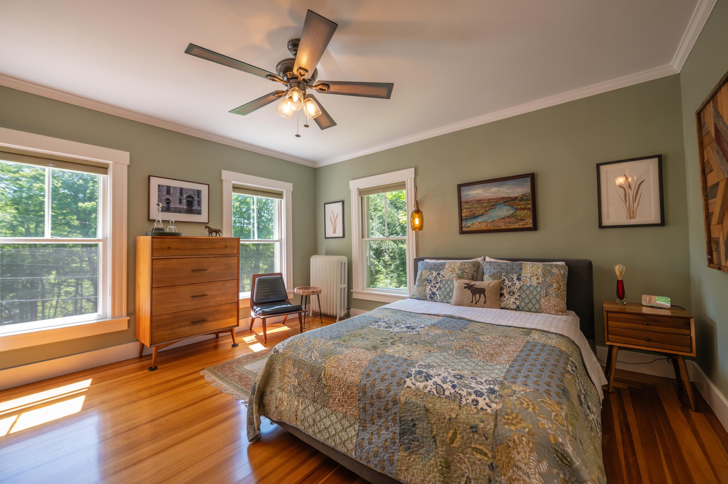 Rare opportunity to own a completely remodeled and updated vintage farmhouse, completely turn key. This stunning home sits just up from the country village of Wilmington with easy access to dining and shopping, a short drive to Mount Snow, and near the amazing Lake Whitingham, for true four season enjoyment. The interior features meticulously updated open concept living areas, a chef's kitchen with custom cabinets, stainless appliances, and soapstone counters, large living room with wood burning fireplace and stone hearth from Parmelee and Howe soda counter, large pantry, mudroom, main floor full bath with laundry, one car garage with bonus storage, updated flooring and specialty lighting fixtures, and the list goes on. There are 4 bedrooms en suite, including a newly added primary suite with tiled bath with steam shower, family room with custom walnut built-ins and wet bar, as well as minisplit A/C. Take in your morning sun from the covered front porch, or enjoy soaking in the hot tub off the large rear deck surrounded by stone walls, perennial gardens, and mature trees. A backyard oasis with a surprisingly private yet convenient location. Less obvious features include standing seam metal roof, updated utilities, full basement, second laundry location, paved driveway, freshly painted exterior, fiber internet, and town water & sewer for total peace of mind. A welcome respite from metropolitan life or potentially a great rental opportunity.