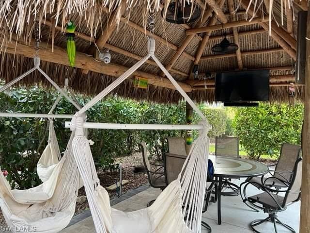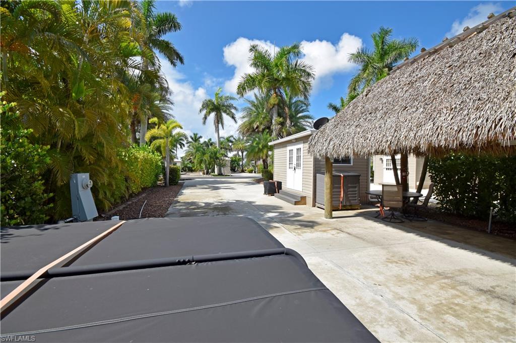 Beautifully landscaped and move-in ready, this 35' x 90' concrete pad offers privacy and comfort in a resort-style setting. The lot features a spacious 10' x 18' tiki hut, ideal for relaxing or entertaining, and an 8' x 15' finished shed equipped with a washer, dryer, utility sink, toilet and shower.
