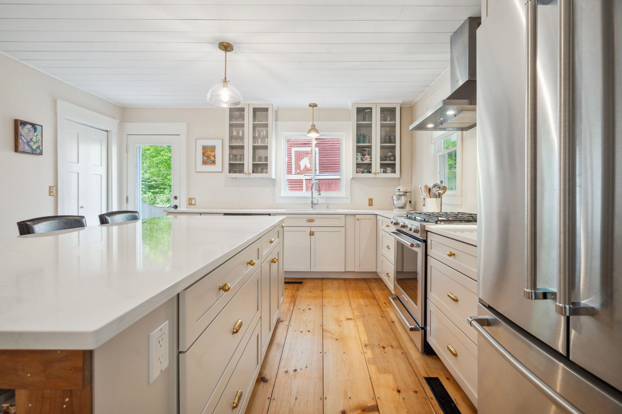 Quintessential New England small-town living defines The Betsy Searle Place, a distinguished Federal style residence blending historic integrity with thoughtful modern updates in the heart of Francestown. Located within walking distance to the town market, library, Town Hall, Meeting House, and tennis courts, this home offers true village living. Enjoy a vibrant community calendar featuring a weekly Farmers’ Market, 4th of July Celebration, Labor Day Parade, summer concerts and more. Just minutes to Crotched Mountain skiing, golf, hiking, and local destinations including the Hancock Inn and Blue Bear Inn. A pond and waterfall down the street transform into a skating pond in winter, adding to the charm of all four seasons. Rich in architectural character, this timeless home showcases original Tamarack pine flooring, classic window shutters in the living and dining rooms, wood burning fireplaces, and a charming clapboard and brick exterior complemented by a traditional red barn. Mature sugar maples dot the property, ready to be tapped, enhancing both beauty and seasonal charm. A gracious foyer welcomes you to the main level featuring a parlor/sitting room, spacious living room, formal dining room, and a beautifully renovated kitchen with modern finishes. A half bath completes the first floor. Upstairs offers four bedrooms and three full baths, including a spacious primary suite with ensuite bath. Detailed wainscoting enhances the upper level, reflecting the home’s craftsmanship and heritage. A multi-level stone patio connects the home and barn, creating a private outdoor setting ideal for entertaining or relaxing. The barn offers exceptional flexibility for a studio, home office, or guest space, with access to a second floor loft. Set on a landscaped 0. 40 acre lot, the sale also includes a separate, non-contiguous 3. 00 acre parcel, an increasingly rare opportunity. A rare blend of history, lifestyle, and community in one of New England’s treasured small towns.