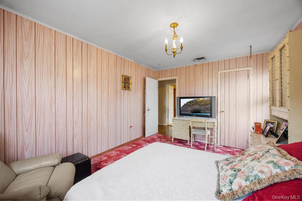 New to the market! Welcome to a beautifully maintained 4-bedroom, 3-bathroom home on a spacious 74x100 lot, located on a serene tree-lined street in the highly desirable Hewlett-Woodmere School District. This charming home features a formal living room with vaulted ceilings, a separate dining room, and a large eat-in kitchen with granite countertops and abundant cabinet space. The primary bedroom boasts its own private en-suite bathroom for added comfort and privacy. The expansive lower level includes a generous den, wet bar, and convenient washer and dryer. A 2-car garage provides additional storage and parking. Throughout the home, you'll find gleaming hardwood floors, recessed lighting, and central air conditioning for year-round comfort. Step outside to enjoy the lush, fully fenced backyard – a perfect space for relaxation or entertaining. With its ideal location, ample living space, and modern amenities, this home is a must-see!