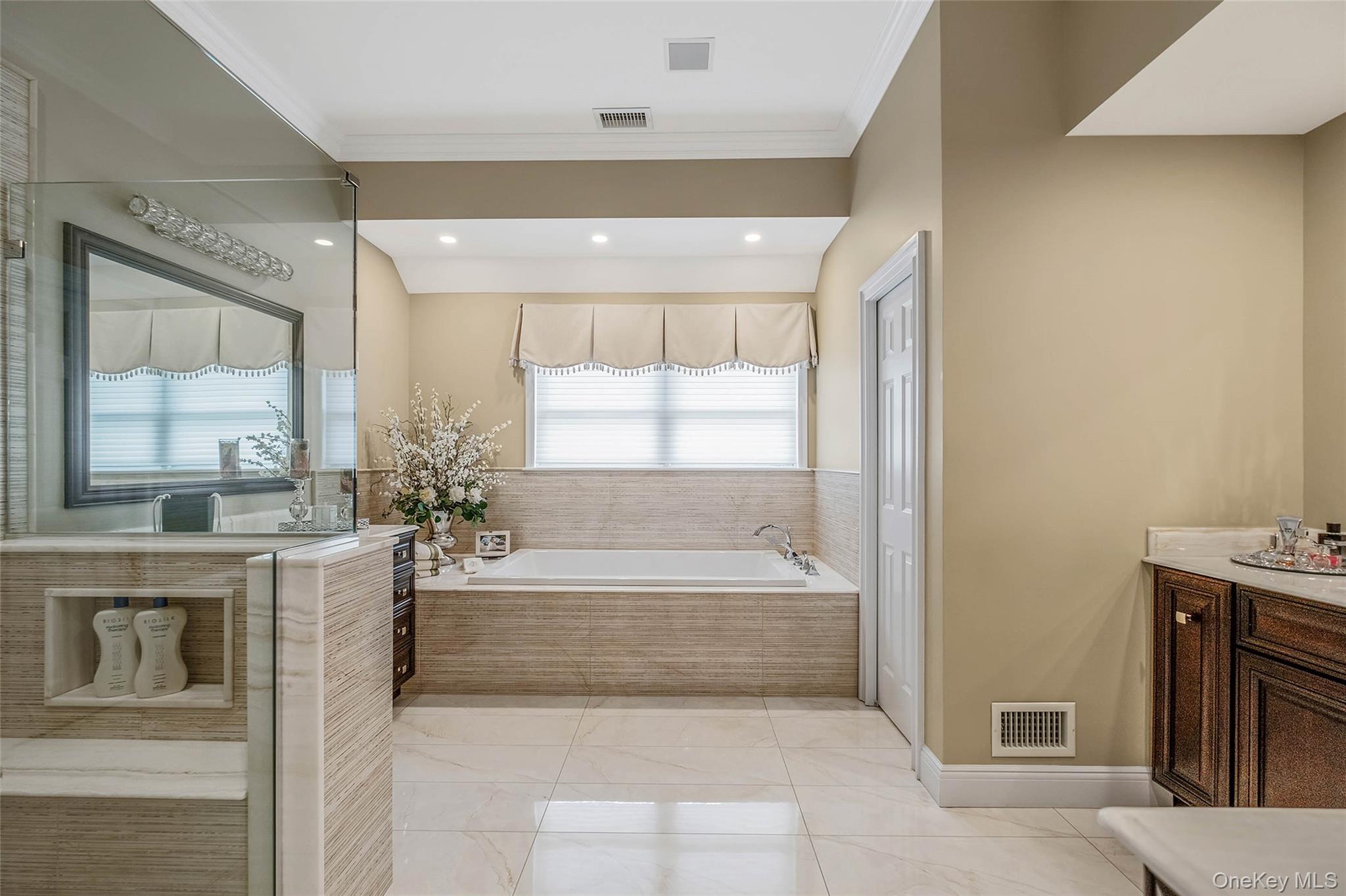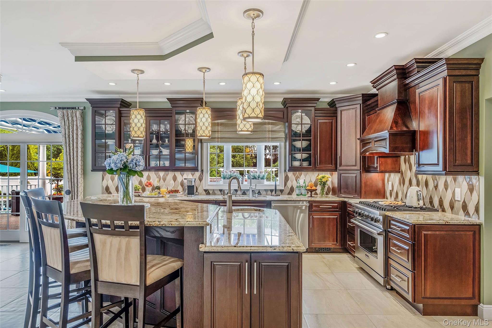 Welcome to this magnificent home in prestigious Mount Sinai. This home features a front porch with lighting and front waterfall. Enter into a two-story foyer through the double glass doors from Italy. This leads into the formal living room, large formal dining room with tray ceilings and into the magnificent new kitchen with an island. The kitchen has granite countertops, Viking stainless steel appliances, six burner stove, two porcelain Kohler sinks with stainless steel faucets, five decorative light fixtures, walk in pantry. From the kitchen to the dinngroom there is a butlers pantry with Viking wine fridge, cabinets with glass doors. There is a hallway leading to an office with tongue and groove and full bath. There is radiant heat in kitchen, office, hall and baths. From the kitchen, look into your large den with fireplace and Crawford ceilings. There are sliders leading to the yard. Climb the beautiful staircase to the master bedroom suite with white carpet, tray ceilings, 2 walk-in closets (one has access to attic) full bath with Jacuzzi, full shower, new vanities and radiant heat. There are 3 additional large bedrooms and a full bath with double sink, stall shower, and linen closet. The laundry room is upstairs with whirlpool washer, and dryer, table with wood counter and cabinets. There is a full finished basement with an outside entrance. The basement offers a theater room with projector & stadium seating, bedroom, full bath also storage room with Control4 smart system & dual 150 amp panels, utility room with 100 gallon hot water heater. Now go relax in your oasis backyard featuring a 20' x 40' deck with an Altima stainless steel grill, Emerson mini fridge & sink. Float away in the 45' x 45’ heated L shaped inground pool with a rock formation waterfall, outdoor Jacuzzi, pool house with full bath & sitting are and full basement for storage , gas fire pit. There are fire torches and lighting under the trees and around the pool. This home has new CAC, raised panel doors, and molding throughout. There is a 3 car garage, IGS, outdoor speakers, circular all brick driveway, Unpack and enjoy your Oasis. You’re around the corner from Heritage Park, a short ride to Port Jefferson Village, the LIRR, Port Jefferson ferry, Cedar Beach, and great restaurants and shopping.