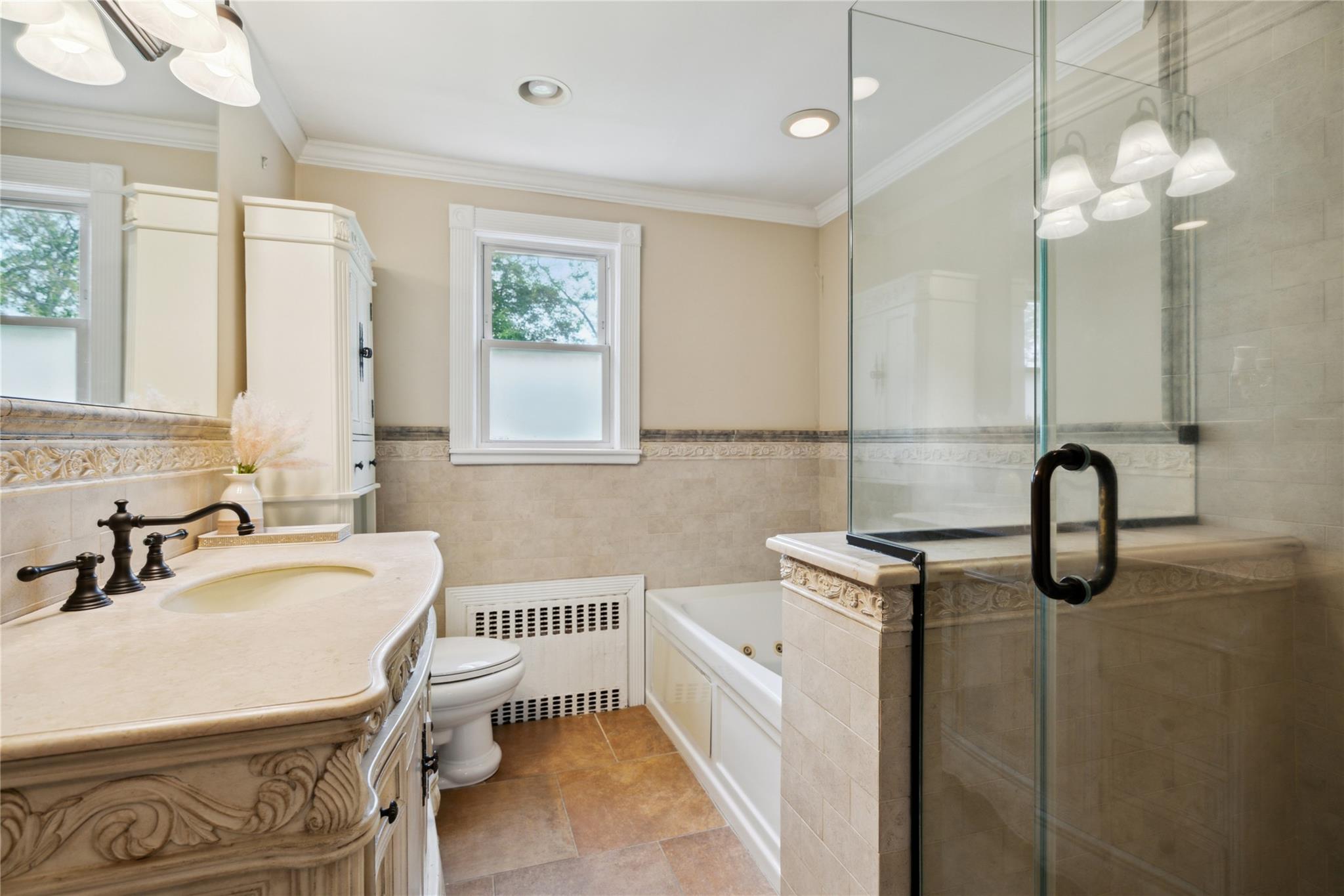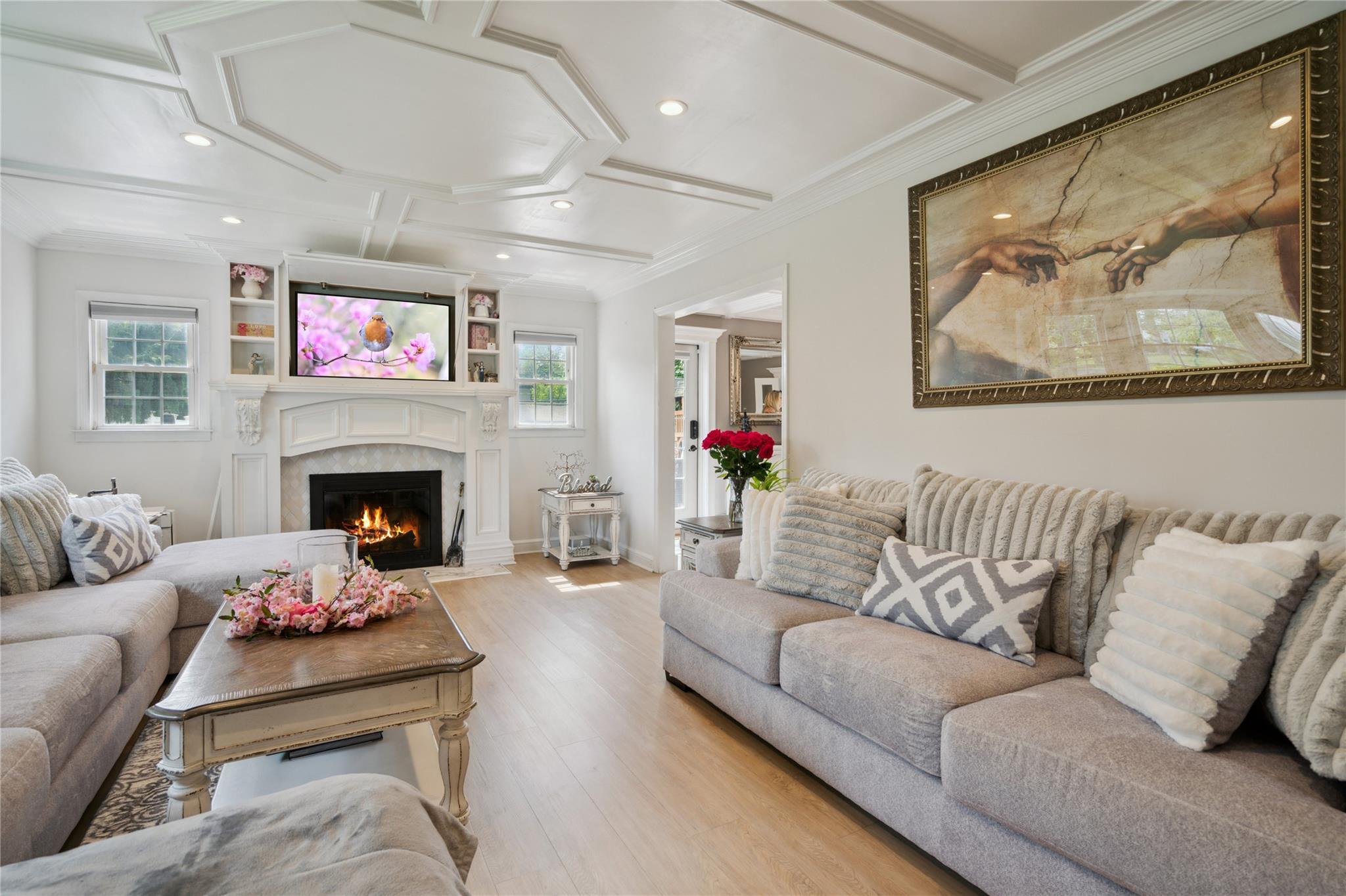 Mint ++ Completely renovated Side hall colonial. Everything brand new. Vaulted & Crawford ceilings, wood burning fireplace, Built in TV above fireplace, charming den/home office, double oven, built in micro, huge kitchen pantry, house water filtration system, security system, French doors. Radiant heated floors, steam shower, jacuzzi tubs & master walk in closet. No detail left undone. Full basement, outdoor kitchen with pool. Infrared Sauna is a gift. Mint drop your bags ready. House not located in Village.