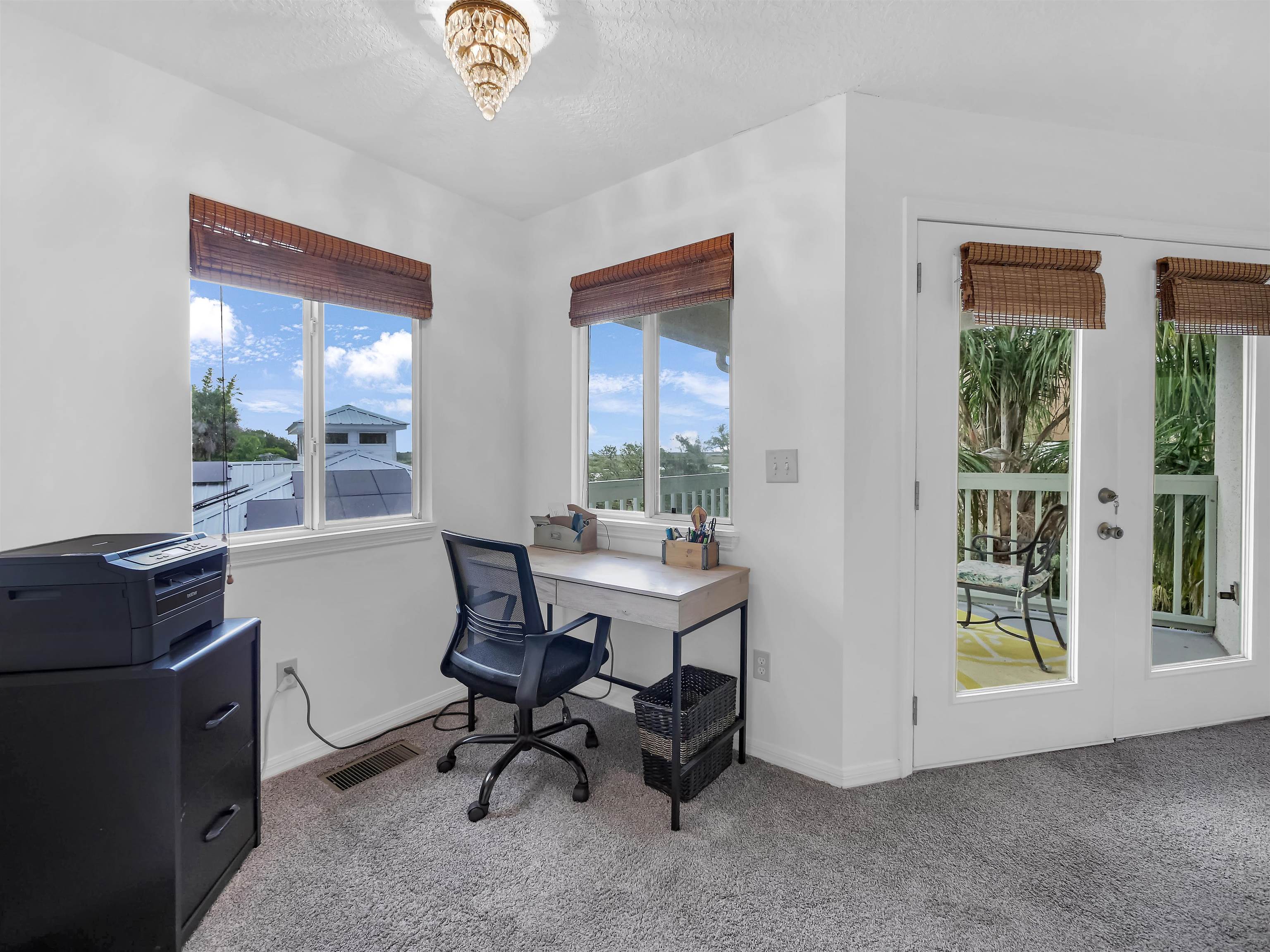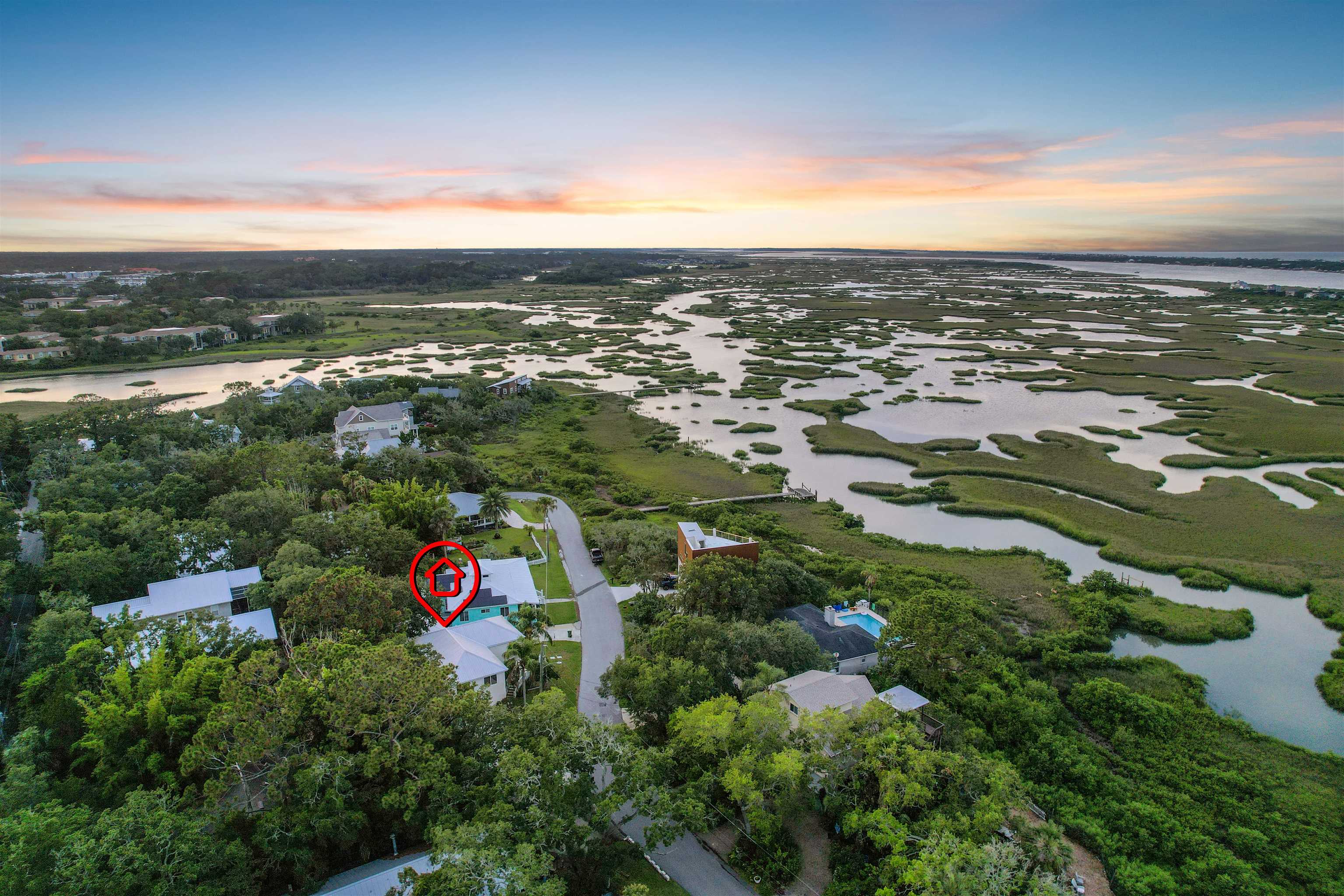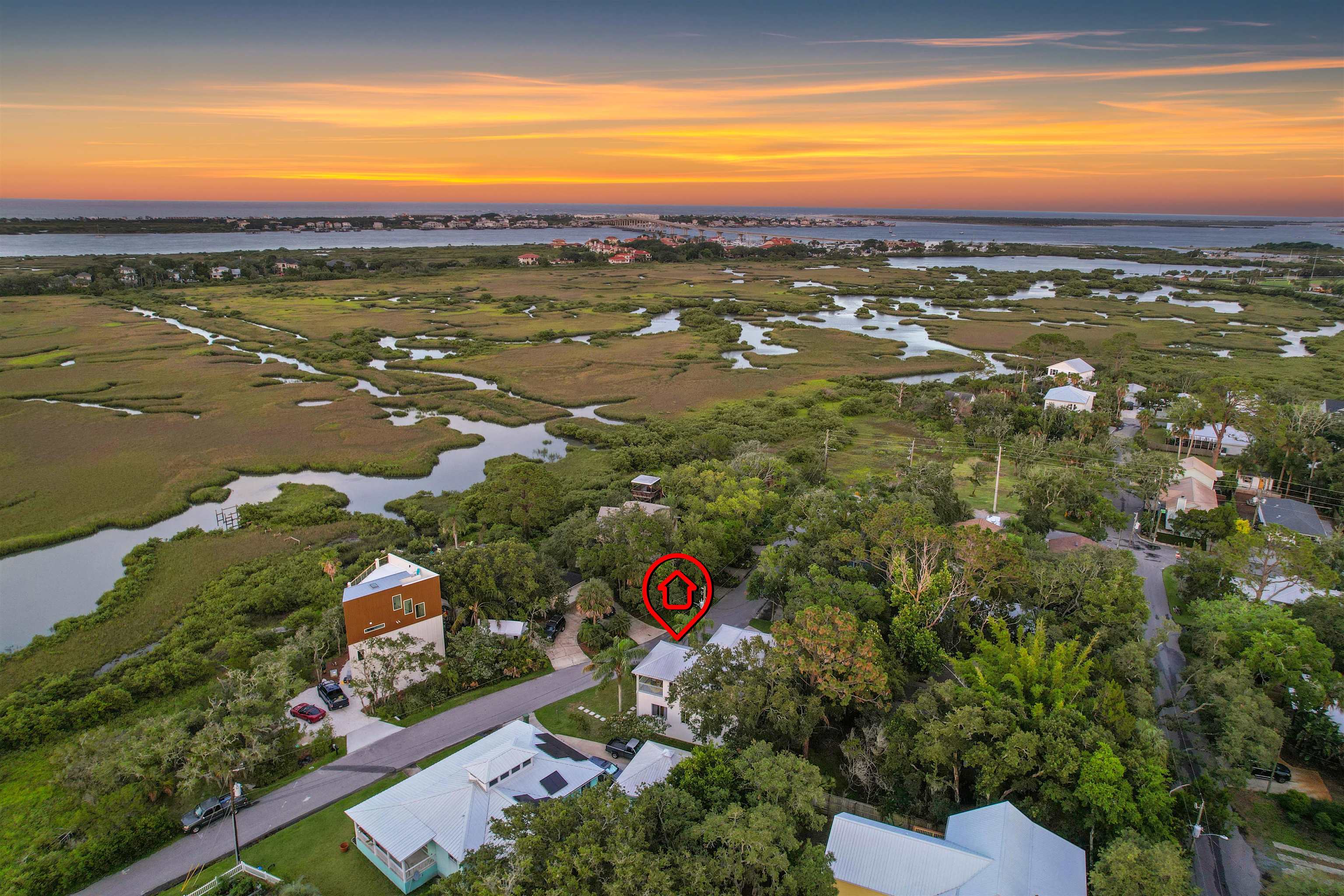 Tucked beneath the sweeping oaks of historic Fullerwood Park, this custom two-story home offers a peaceful retreat with captivating views of the Intracoastal Waterway. Located in one of St. Augustine’s most beloved and sought-after neighborhoods, residents enjoy quiet, tree-lined streets, a close-knit community vibe, and unbeatable proximity to both downtown and Vilano Beach—offering the best of coastal living with the charm of the city just minutes away. Inside, the first floor unfolds in an open, inviting layout that blends the living, dining, and kitchen spaces seamlessly—perfect for relaxed evenings or hosting friends and family. The kitchen is thoughtfully designed with granite countertops, stainless steel appliances, and a recently refreshed backsplash, making it as functional as it is stylish. A half bath and direct access to the spacious two-car garage—a rare find in this neighborhood—add to the home's everyday convenience. Upstairs, the generous primary suite is a true retreat, complete with dual walk-in closets and a private balcony overlooking the serene ICW tributary. Wake up to calming water views and start your day with a breath of fresh air. Two additional bedrooms and a full bath provide comfortable accommodations for guests, family, or a home office. A laundry closet with a newer washer and dryer adds convenience right where you need it most. This home has been well maintained with meaningful upgrades, including a durable metal roof (2018), newer HVAC system (2018), and water heater (2019), offering peace of mind and long-term value. Beyond the home, Fullerwood Park embraces a laid-back lifestyle—residents enjoy access to a kayak and paddleboard launch, a community garden, and an annual block party that embodies the neighborhood’s welcoming spirit. Walk or bike to nearby restaurants, coffee shops, and boutiques with ease. A perfect blend of comfort, community, and coastal beauty—this is a rare opportunity to call Fullerwood Park home.