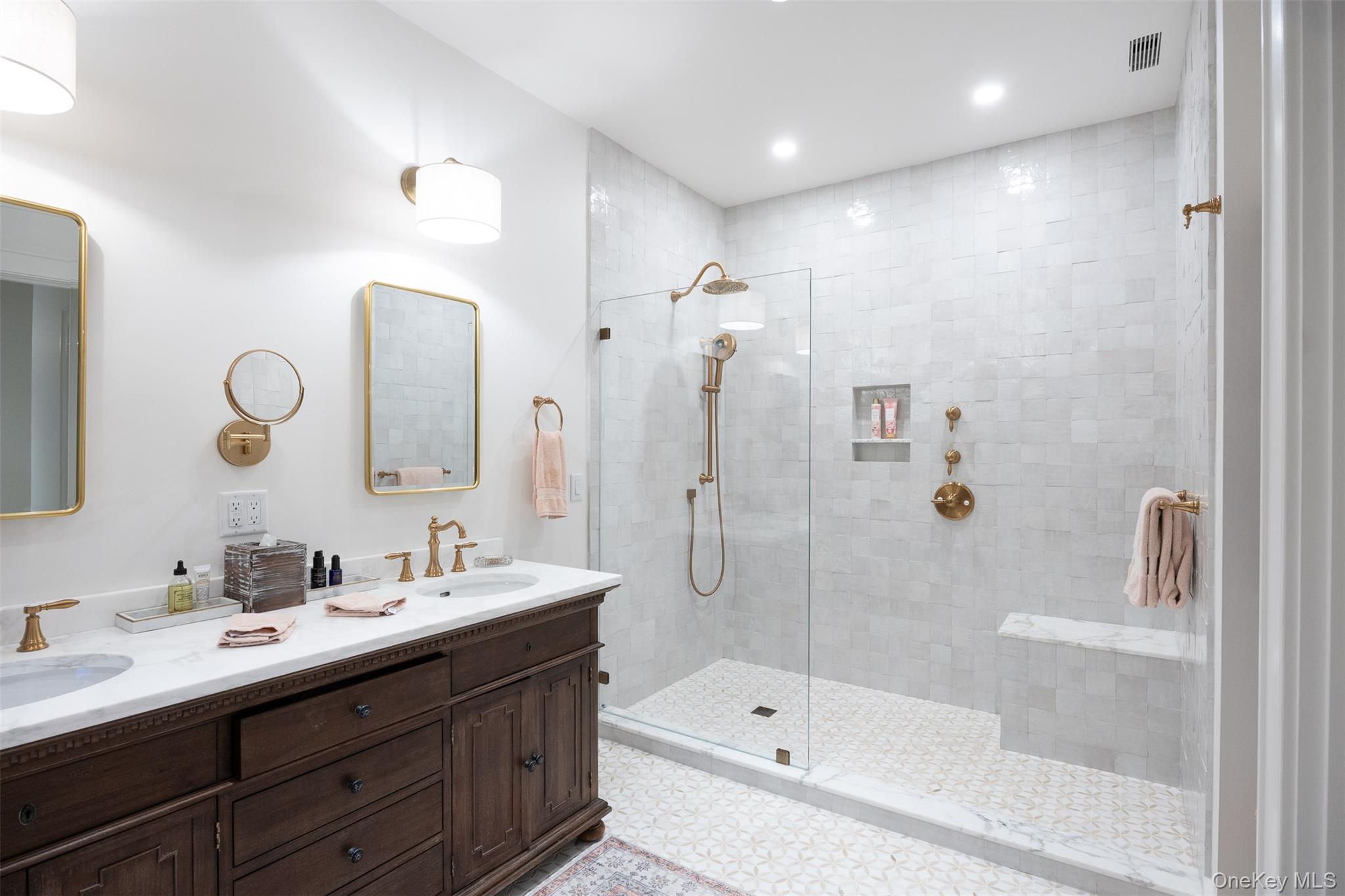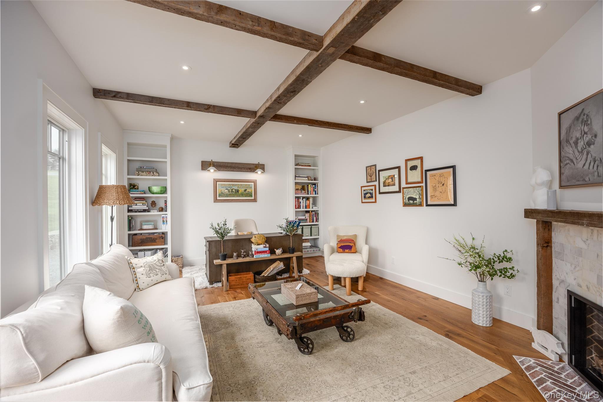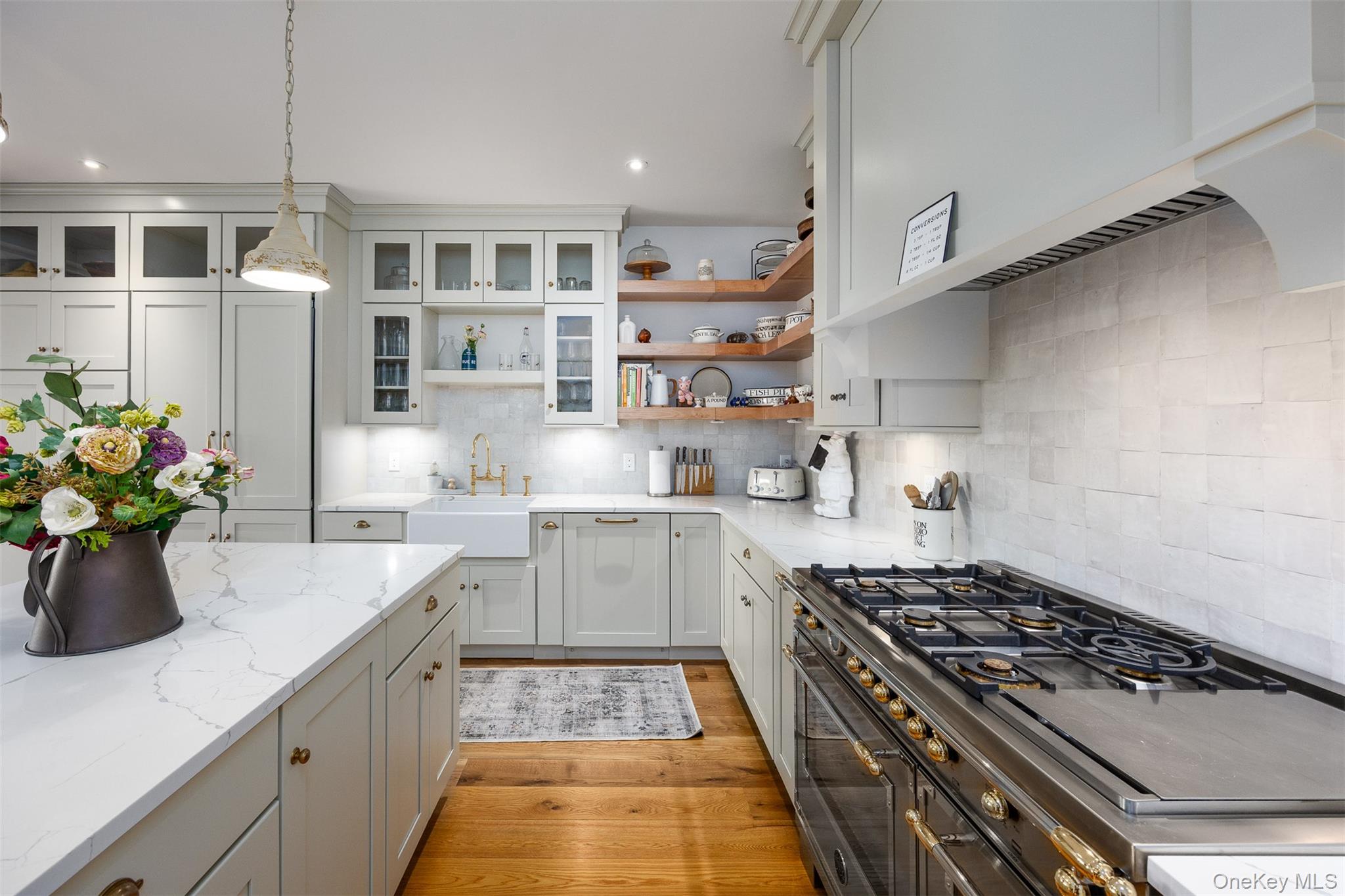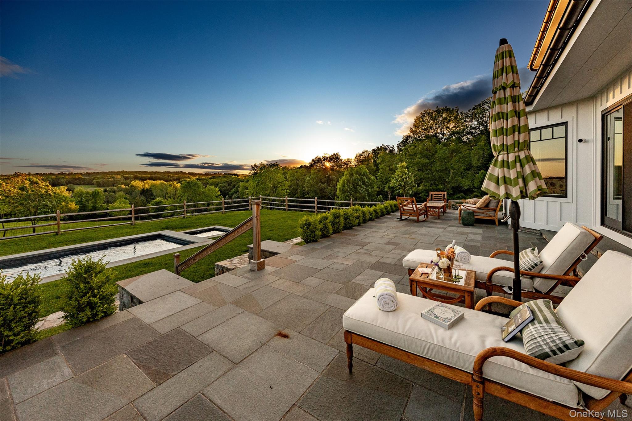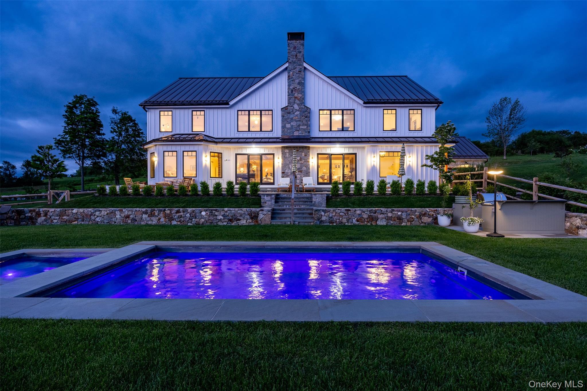 Welcome to Sunset Ridge Farm. A discreet tree-lined drive with expansive views of two aerated ponds and rolling hills leads to this breathtaking modern farmhouse estate. Set on 10 exquisitely manicured acres with mountain vistas, a heated in-ground pool, spa, and gardens reminiscent of the English countryside, 3585 Route 82 is a truly rare offering — a perfect full-time residence or refined weekend retreat. Designed by an award winning luxury hotelier and designer, every element of this 2022-built home reflects an extraordinary level of vision, craftsmanship, and artistry. Tasteful finishes, custom millwork, and hand-crafted cabinetry enrich the home's generous proportions and stunning open floor plan. An elegant entrance welcomes you into a gracious foyer and a grand living room anchored by a wood-burning fireplace, overlooking sweeping westerly sunset views over the foothills of the Catskills. Slide open the oversized doors to the pool area for seamless indoor-outdoor living at its finest. The chef’s kitchen is a work of art, featuring a four-door Samsung refrigerator, Bertazzoni free-standing vintage range, steam and multi-wall ovens, a microwave, warming drawer, and an integrated hood set against a hand-made Zellige tile backsplash. The adjacent dining area features custom deVOL cabinetry and a full bar, creating a natural separation to a cozy office/den and a fitness room at the rear of the home. The luxurious first-floor primary suite wing enjoys spectacular sunset views and features a fireplace, dual walk-in closets, and a spa-inspired bathroom with inlaid marble floors, a deep freestanding tub, an oversized walk-in shower, and a state-of-the-art Toto toilet. Also on the first floor are a stylish deVOL-designed laundry room, a jewel box powder room, a mudroom, a two-car garage, and additional bonus spaces. Upstairs, three generous ensuite bedrooms, including a second luxurious primary, each feature walk-in closets and perfectly framed vistas. A media room, which doubles as a fifth bedroom, offers even more flexibility, complete with an adjacent full bathroom. The outdoor spaces are nothing short of spectacular, including a built-in outdoor kitchen with a BBQ and gas line hook-up, a bluestone patio, and multiple entertaining and lounging areas framed by French lavender gardens. A separate studio building with a kitchenette and bath provides a home office or an artist’s retreat. Rounding out the estate are a full, dry basement with a temperature-controlled wine room, and a spacious walk-up attic with soaring ceilings, offering ultimate recreation and storage opportunities. Protected by surrounding majestic farmland yet located just moments from the Village of Millbrook, this turn-key modern farmhouse delivers an unparalleled lifestyle of quiet luxury, beauty, and timeless sophistication in the heart of the Hudson Valley.