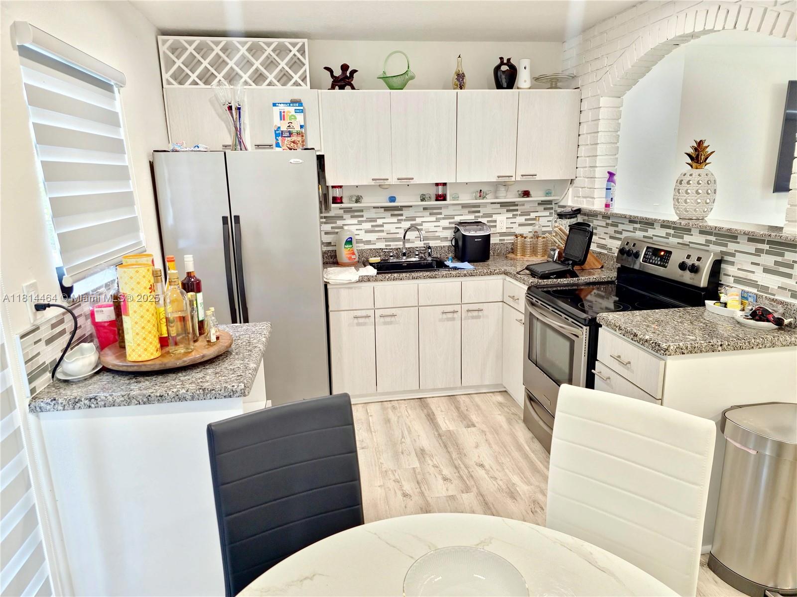 Fully updated CBS 3-bed / 2-bath in Broadview Country Club Estates! Bright open layout with decorative brick arch, luxury vinyl plank floors, LED lighting and impact-style windows. Granite kitchen, mosaic backsplash and stainless appliances flow to living/dining and out to a spacious patio—ideal for grilling. Spa-like primary bath with frameless glass shower; second bath with tub/shower combo. Oversized paver driveway plus attached carport fit multiple vehicles. Fully fenced 7 234 sf lot offers portable heated hot-tub, 8 × 10 shed, tropical landscaping and side gate for boat/RV. Newer A/C and 2021 roof coating. No HOA; close to 441, Turnpike, shopping, parks and beaches—move right in and enjoy!