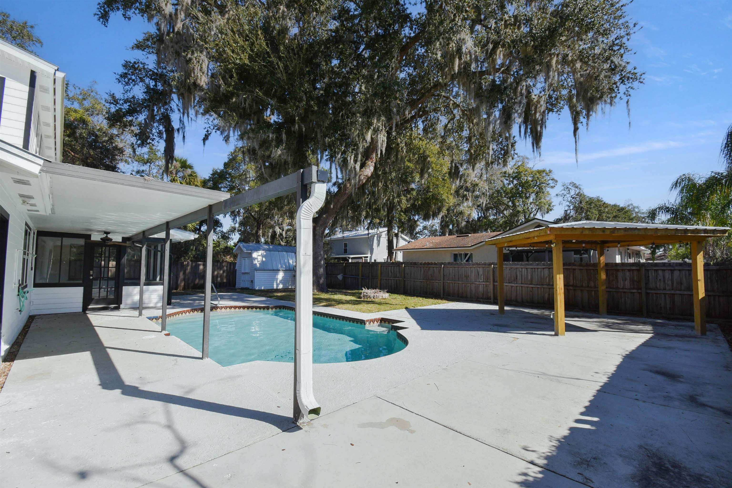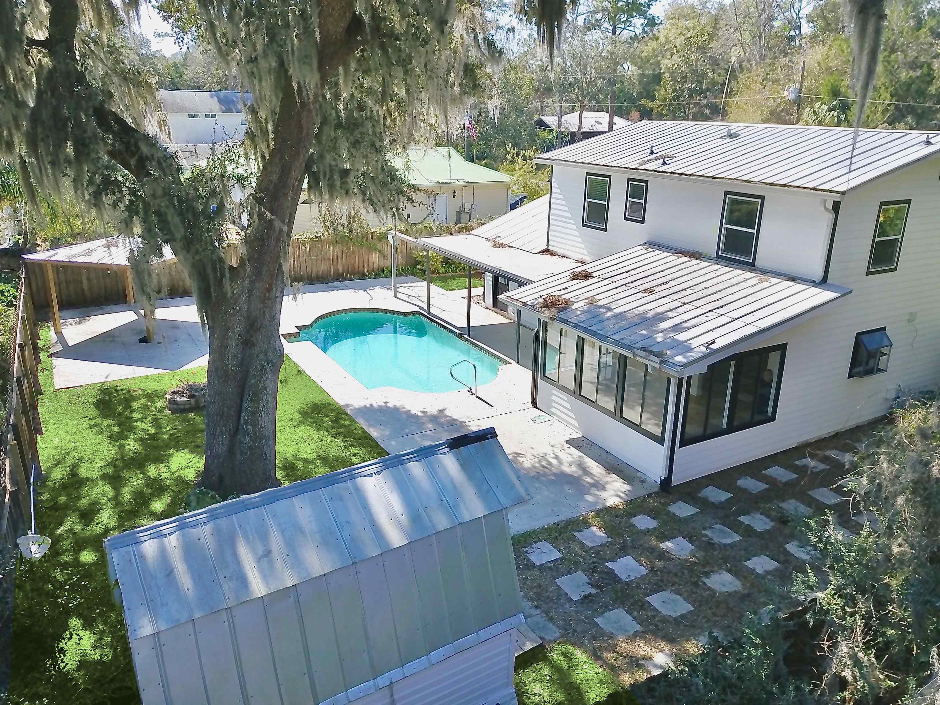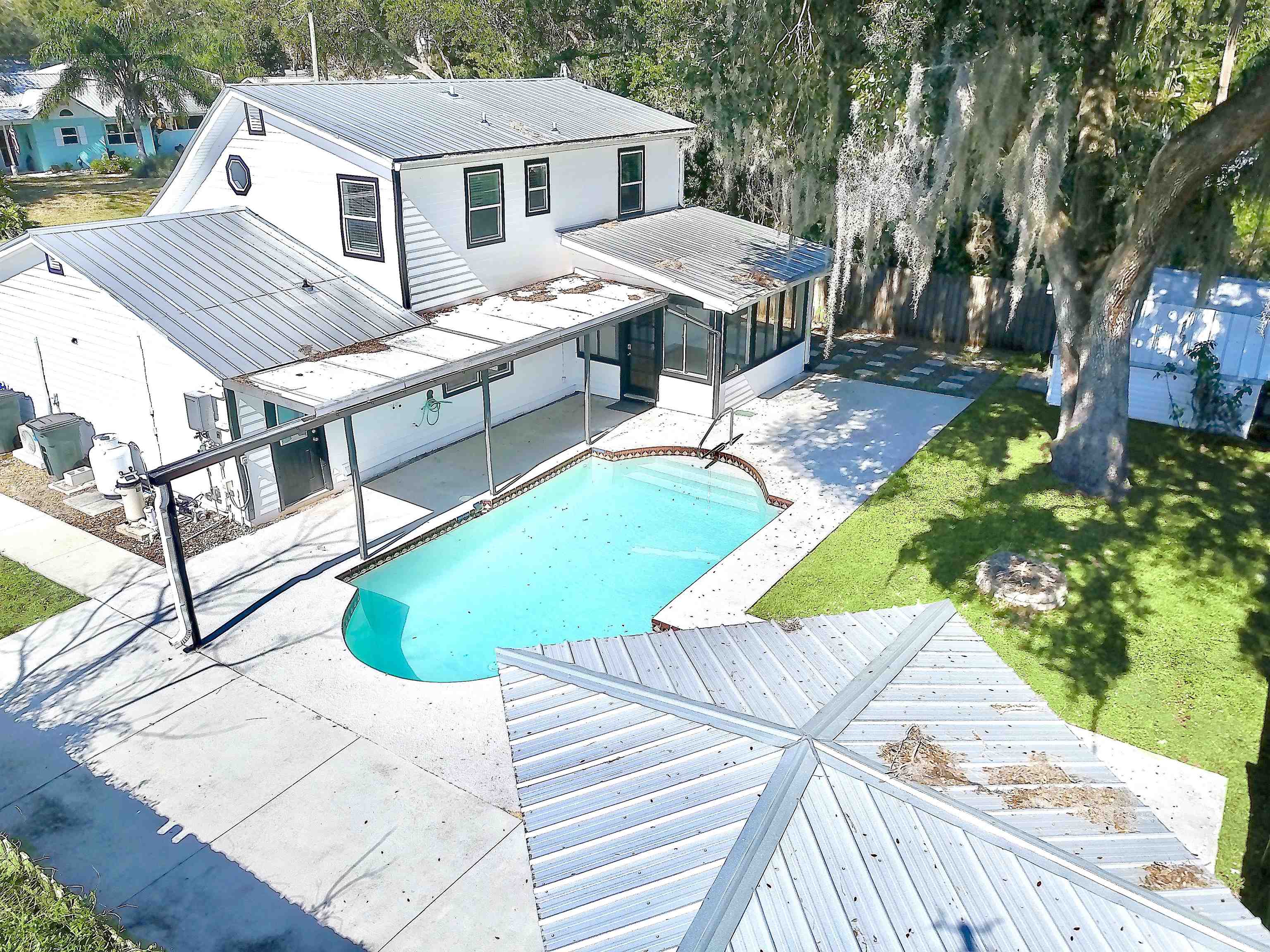 This beautifully renovated 3-bedroom + bonus room home with a private pool offers the ultimate blend of style, comfort, and location—just minutes from both historic downtown St. Augustine and the beach. Whether you're searching for the perfect short-term rental opportunity or a move-in-ready family home, this versatile property checks every box. Step inside to a bright, open floor plan designed for modern living. The remodeled kitchen features granite countertops, and the home showcases new LVP and tile flooring, newly tiled bathrooms, and updated plumbing (2020). Main floor bonus room with a mini-split system, making it ideal for a guest space, office, or playroom. A dedicated laundry and storage area adds extra convenience. This beautifully renovated 3-bedroom + bonus room home with a private pool offers the ultimate blend of style, comfort, and location—just minutes from both historic downtown St. Augustine and the beach. Whether you're searching for the perfect short-term rental opportunity or a move-in-ready family home, this versatile property checks every box. Step inside to a bright, open floor plan designed for modern living. The remodeled kitchen features granite countertops, and the home showcases new LVP and tile flooring, newly tiled bathrooms, and updated plumbing (2020). The first floor bonus room with a mini-split system, is deal for a guest space, office, or playroom. A dedicated laundry and storage area adds extra convenience. Enjoy year-round outdoor living with a sun-drenched Florida room, a sparkling in-ground pool, and a spacious fenced backyard complete with a gazebo and outdoor shower—perfect for rinsing off after beach days. Major updates offer peace of mind, including a new HVAC (2023), metal roof, tankless water heater, replacement windows, and updated gutters. Located in the desirable St. Augustine South community with two public boat ramps, a scenic walking path, and no HOA, this home offers the lifestyle you've been waiting for. Just a short 10 minute drive to the beach or historic downtown! Some images have been virtually staged to better showcase the true potential of rooms and spaces in the home. ”