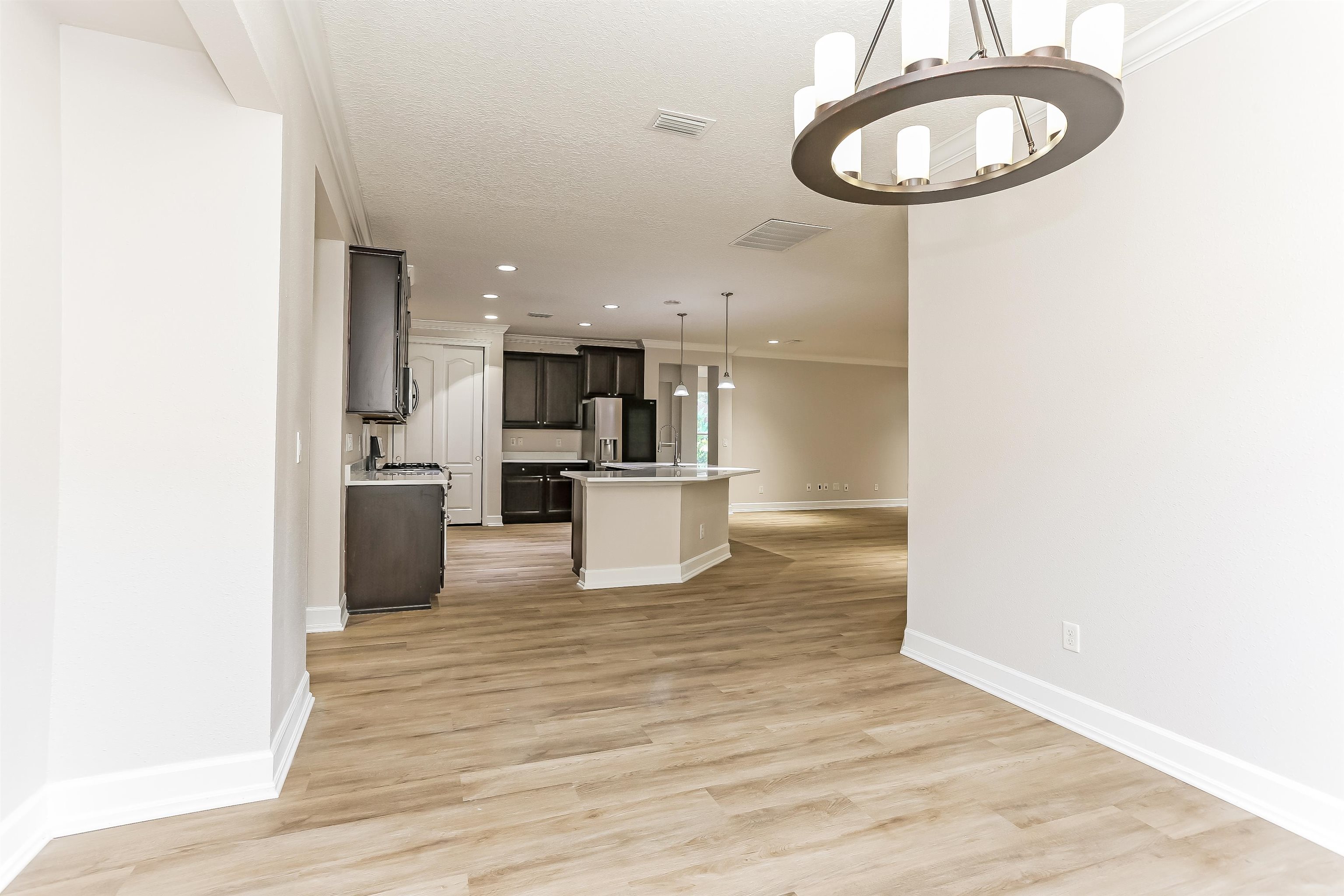Welcome to this beautifully maintained single-story 4-bedroom, 3-bath home located in a secure, gated community with exceptional amenities. This home boasts great curb appeal with a paver driveway and a spacious 3-car garage. Inside, enjoy fresh interior paint, new carpet in the bedrooms, and brand-new luxury vinyl plank flooring throughout the living areas. Elegant crown molding enhances the open floor plan, where the kitchen flows seamlessly into the family living space. The kitchen features a large island, breakfast bar, pantry, and stainless steel appliances—perfect for entertaining or everyday living. Residents enjoy access to a wealth of community amenities including a pool, clubhouse, fitness center, dog park, golf course, basketball and tennis courts, pickleball, playground, jogging path, and more. This home offers the perfect blend of comfort, style, and resort-style living.