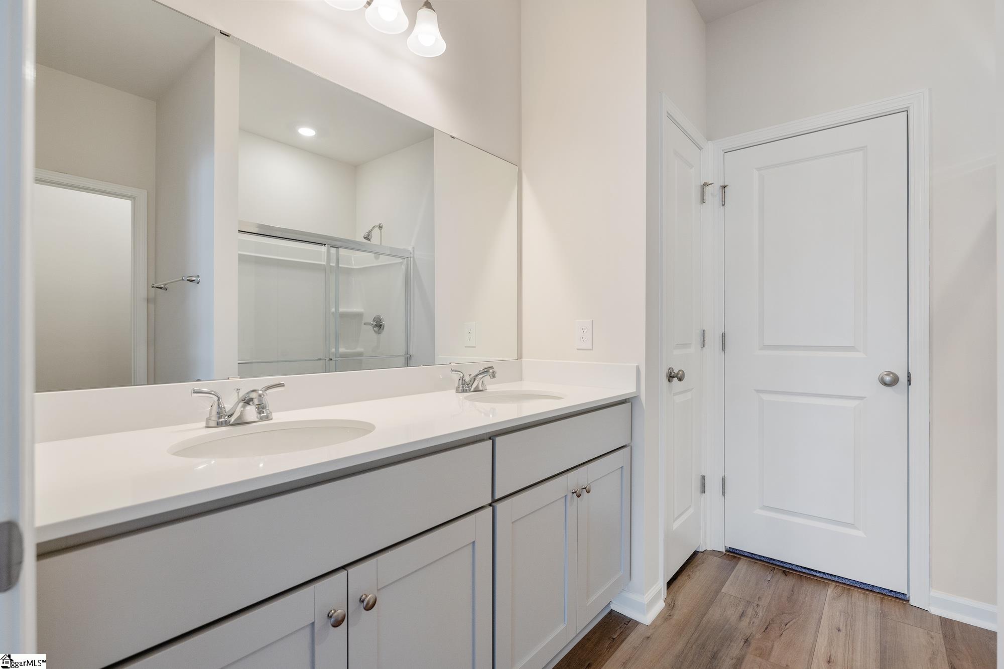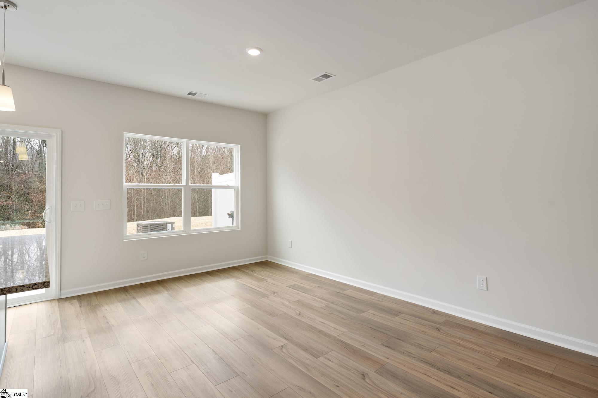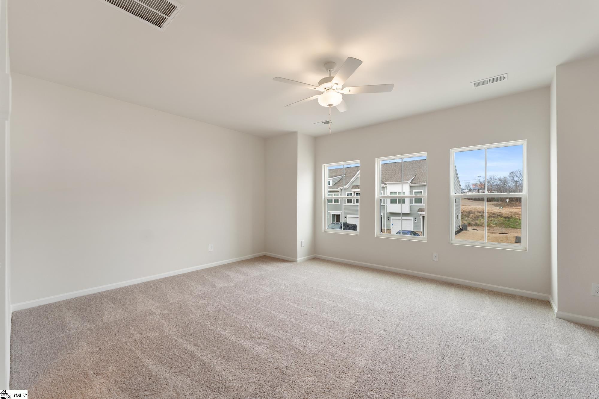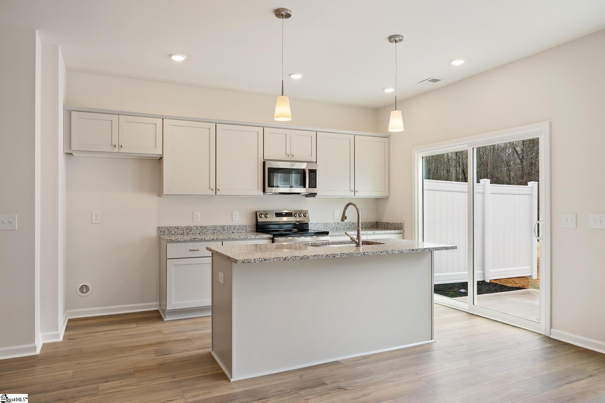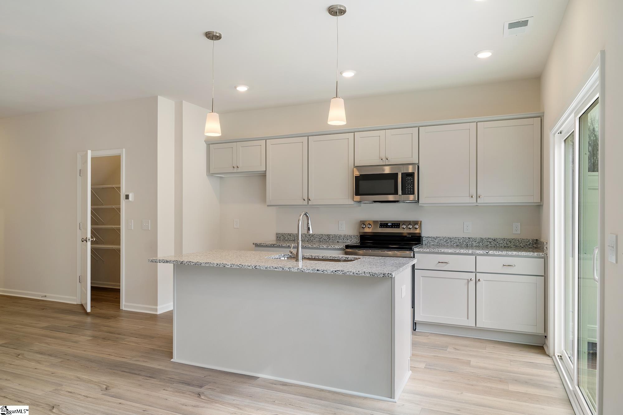 This two-story Foxglove B townhome includes three bedrooms and two-and-one-half-bathrooms. Upon entering the home, a hallway leads you past the staircase and half bathroom and into the living area, including the open-concept kitchen, cozy eat-in area, welcoming great room, and patio. Upstairs, the primary suite features a walk-in closet and an optional boxed ceiling and dual vanity. A laundry closet is located upstairs for ultimate convenience. The two additional bedrooms share a bathroom, and a one-car garage completes this home. Convenient to both downtown Greenville and Greer and located in the award-winning Riverside School District, Edwards Station has it all! (Home and community information including pricing, included features, HOA fees, availability of homes, lots and amenities are subject to change. Property taxes are estimated and are subject to change at any time without notice. Square footages are approximate. Pictures, photographs, colors, features, and sizes are for illustration purposes only and will vary from the homes as built).