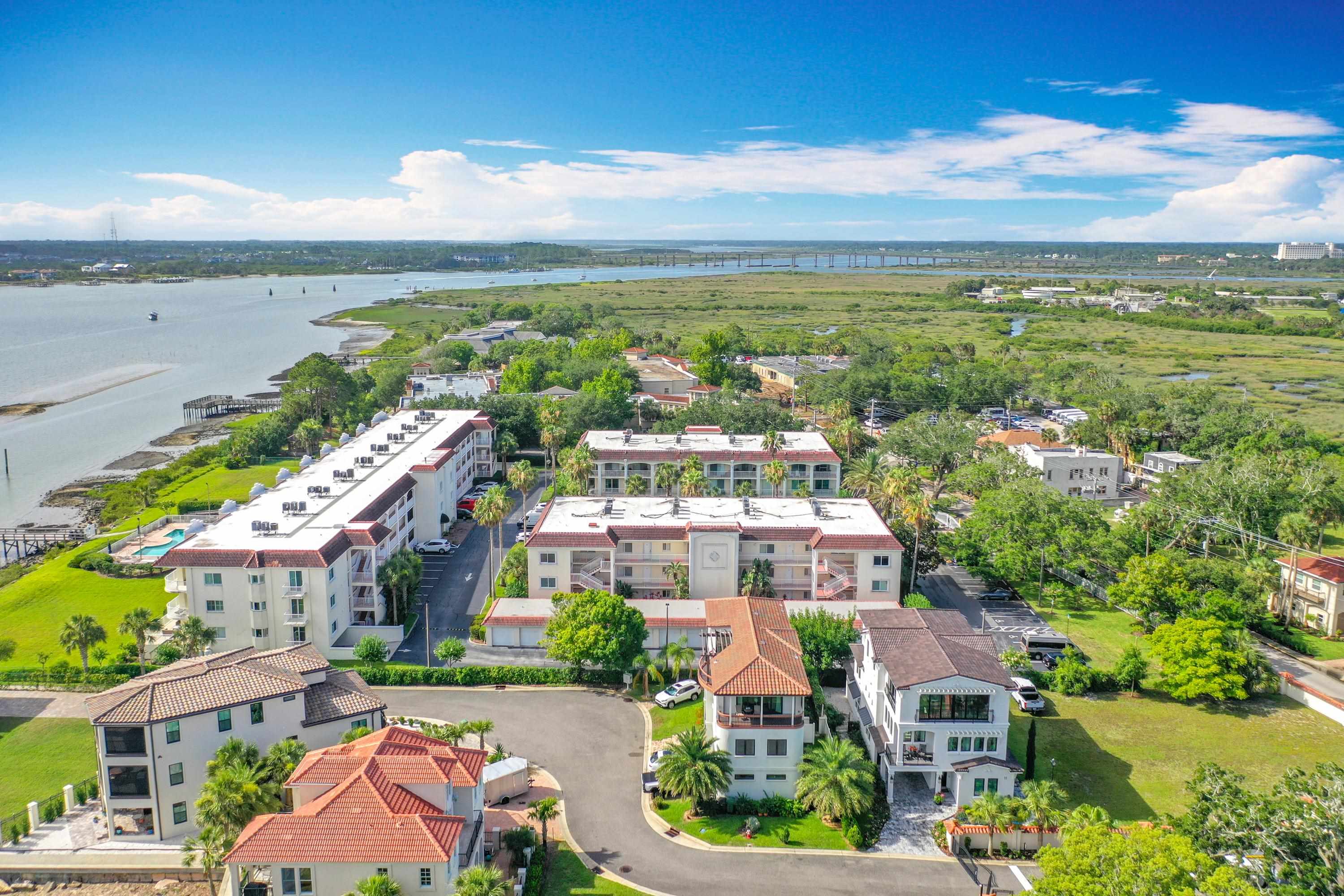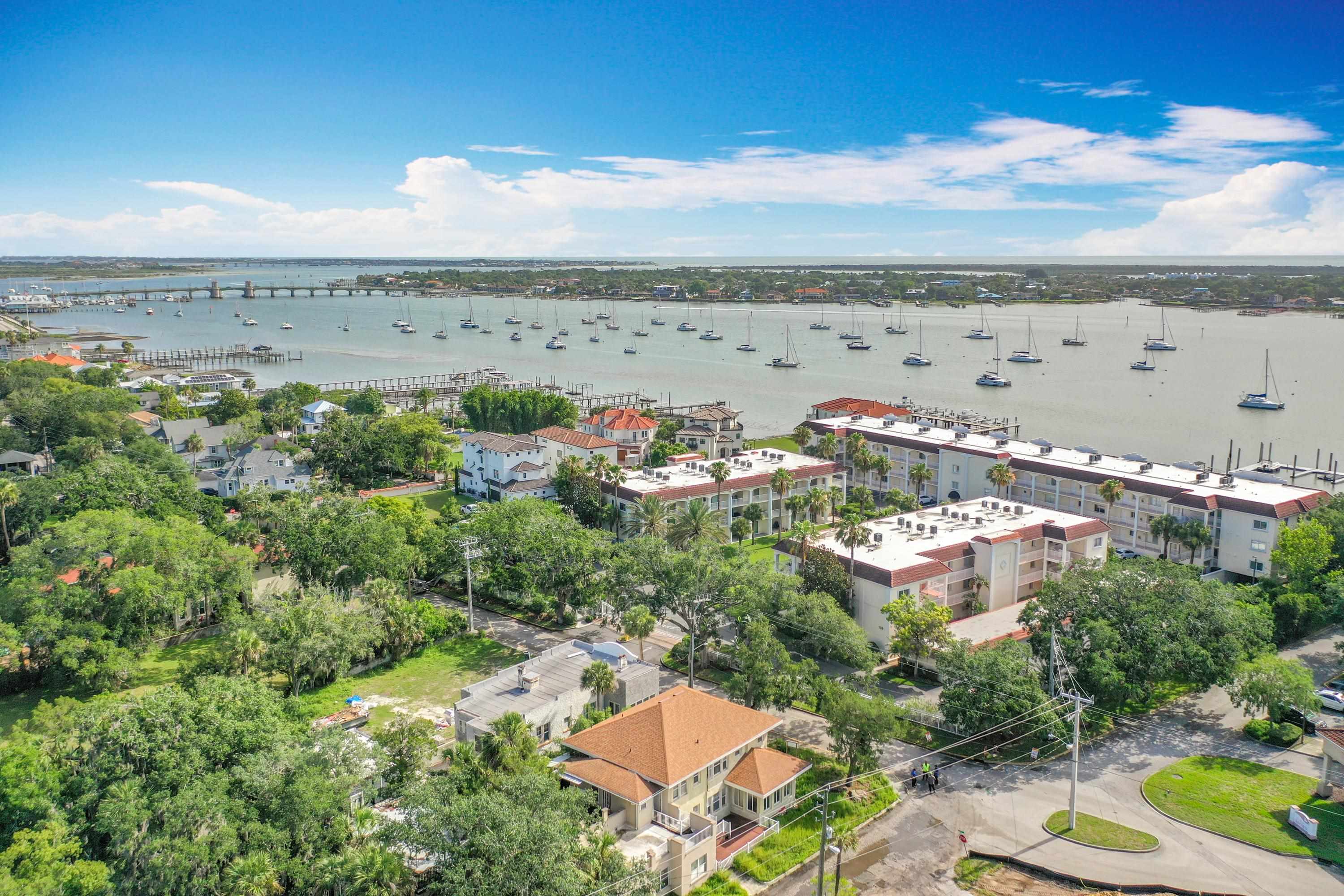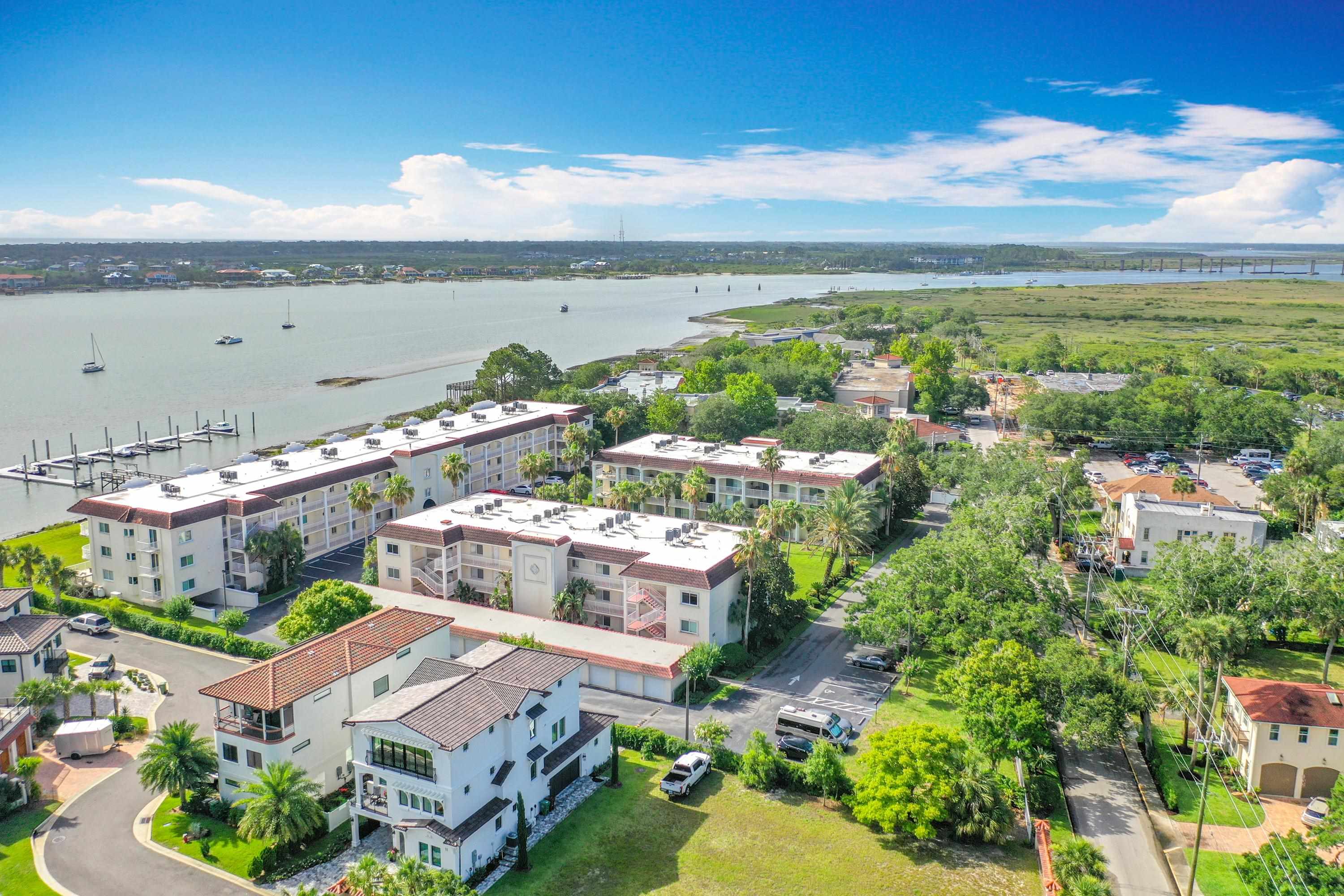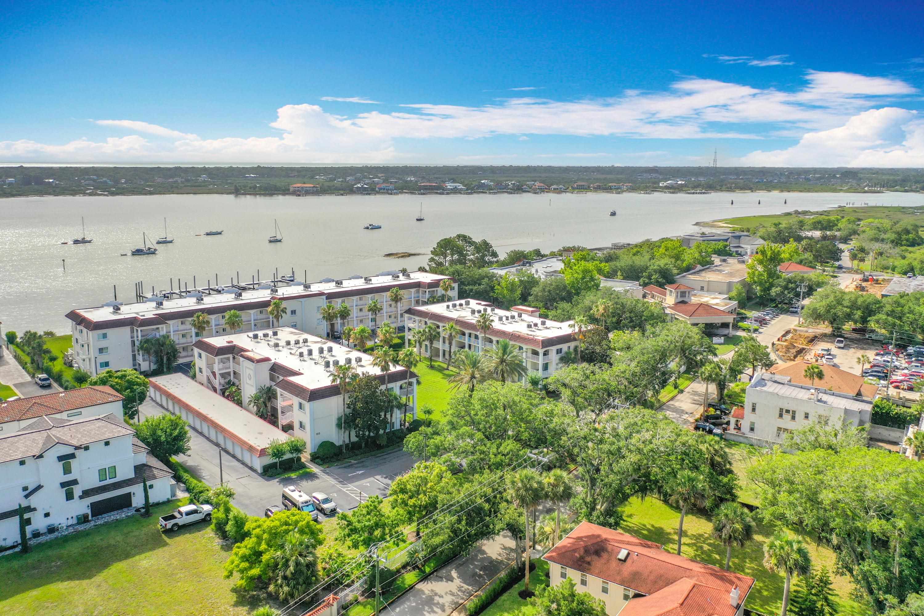 This wonderful 2nd floor condo in the Views at BayPointe is located in the heart of the historical district and includes a detached 1-car garage with additional storage space. Enjoy the rich history of the oldest city in the nation without worrying about where to park. Walk old brick streets and sidewalks to great restaurants, entertainment, unique shops, art galleries and museums. Flagler College is just a short walk as well as your choice of banks. Park your car in your assigned garage and get busy exploring. This condo features open floor plan with hurricane shutters and a view of the Intracoastal Waterway from your lanai. Full size washer and dryer off the kitchen. Large walk-in closet in master bedroom. Sunny lanai off the living room and master bedroom overlooks the Spanish style fountain and tropical courtyard with palm trees and lots of green space. Assigned one-car garage space is across from unit. Views at BayPointe offers a gated entrance, clubhouse, pool overlooking the Intracoastal waterway and private marina with boat slips owners can purchase separately, when available. New HVAC system with 10-year transferrable warranty. New owners pay a Capital Contribution of 2 months condo dues at closing. Condo docs available at: viewsatbaypointe. com Minimum rental period is 3 months. 3D Video tour link: https: //nodalview. com/s/3MnqSy6eb37R6Dc7Qz5Ck_