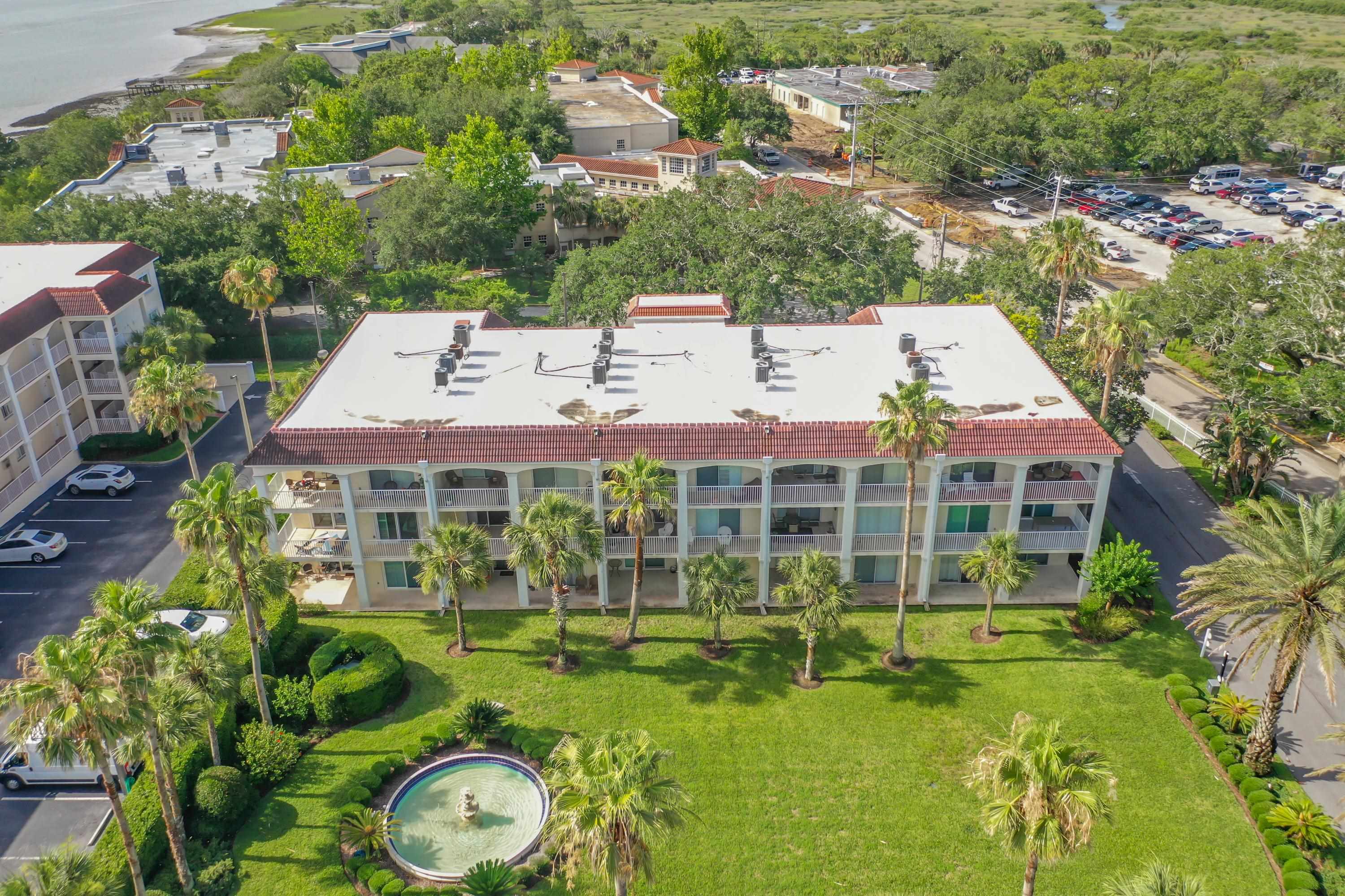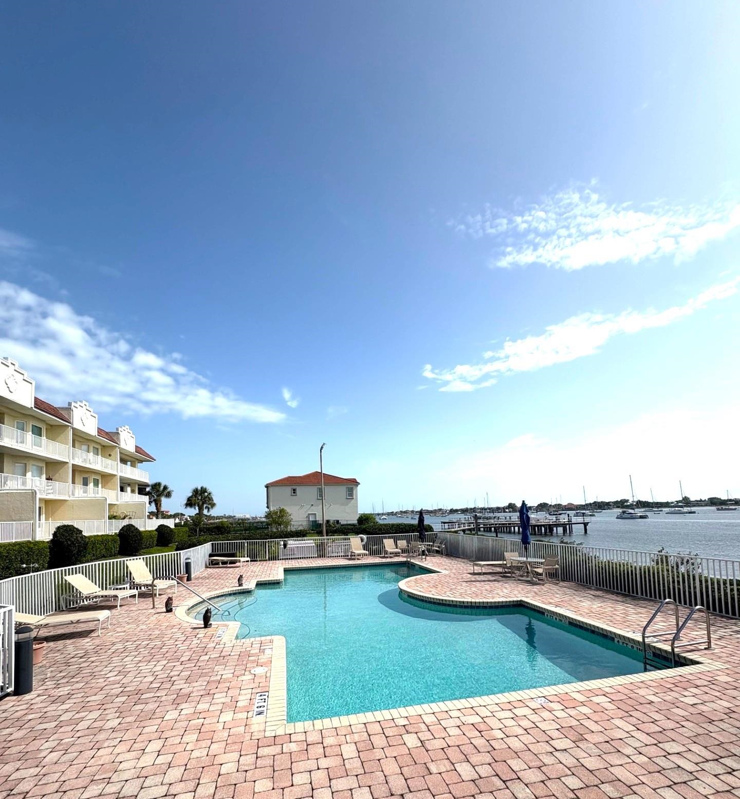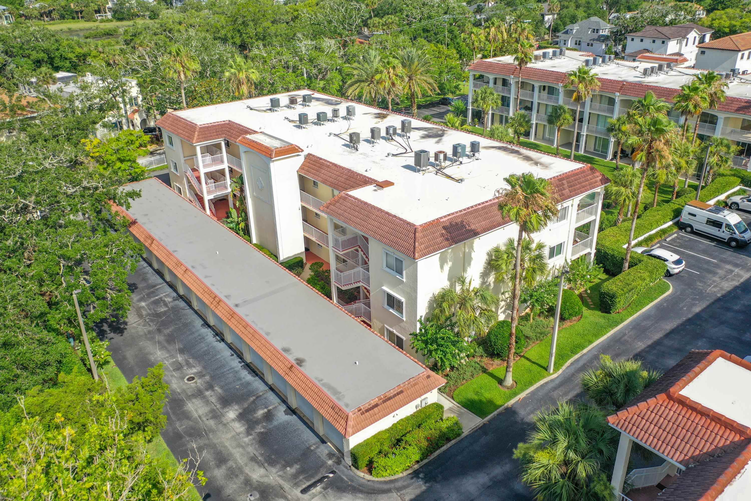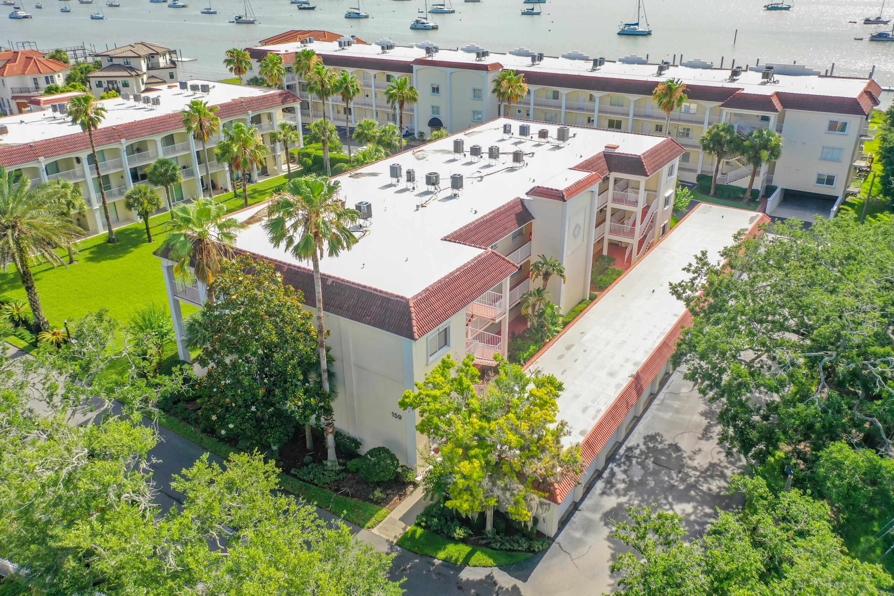 This wonderful 2nd floor condo in the Views at BayPointe is located in the heart of the historical district and includes a detached 1-car garage with additional storage space. Enjoy the rich history of the oldest city in the nation without worrying about where to park. Walk old brick streets and sidewalks to great restaurants, entertainment, unique shops, art galleries and museums. Flagler College is just a short walk as well as your choice of banks. Park your car in your assigned garage and get busy exploring. This condo features open floor plan with hurricane shutters and a view of the Intracoastal Waterway from your lanai. Full size washer and dryer off the kitchen. Large walk-in closet in master bedroom. Sunny lanai off the living room and master bedroom overlooks the Spanish style fountain and tropical courtyard with palm trees and lots of green space. Assigned one-car garage space is across from unit. Views at BayPointe offers a gated entrance, clubhouse, pool overlooking the Intracoastal waterway and private marina with boat slips owners can purchase separately, when available. New HVAC system with 10-year transferrable warranty. New owners pay a Capital Contribution of 2 months condo dues at closing. Condo docs available at: viewsatbaypointe. com Minimum rental period is 3 months. 3D Video tour link: https: //nodalview. com/s/3MnqSy6eb37R6Dc7Qz5Ck_