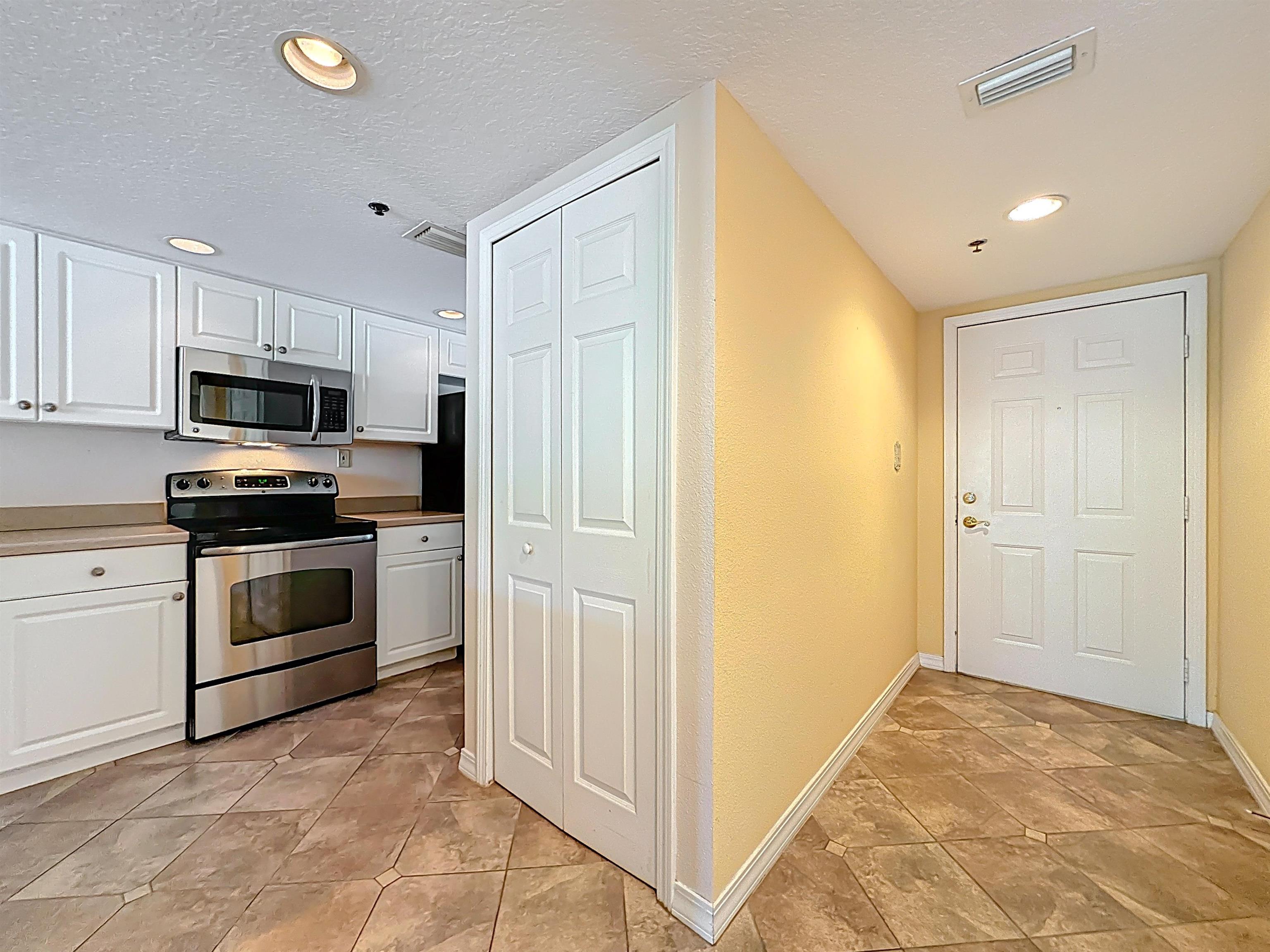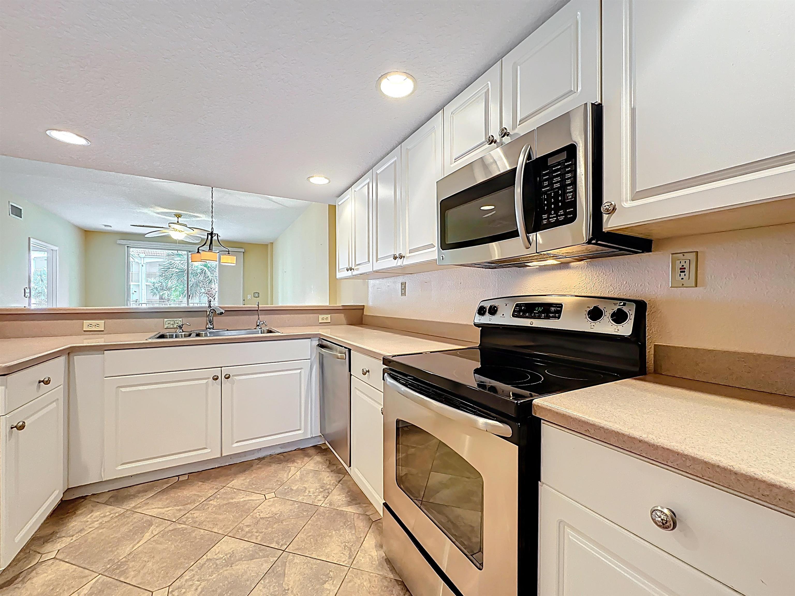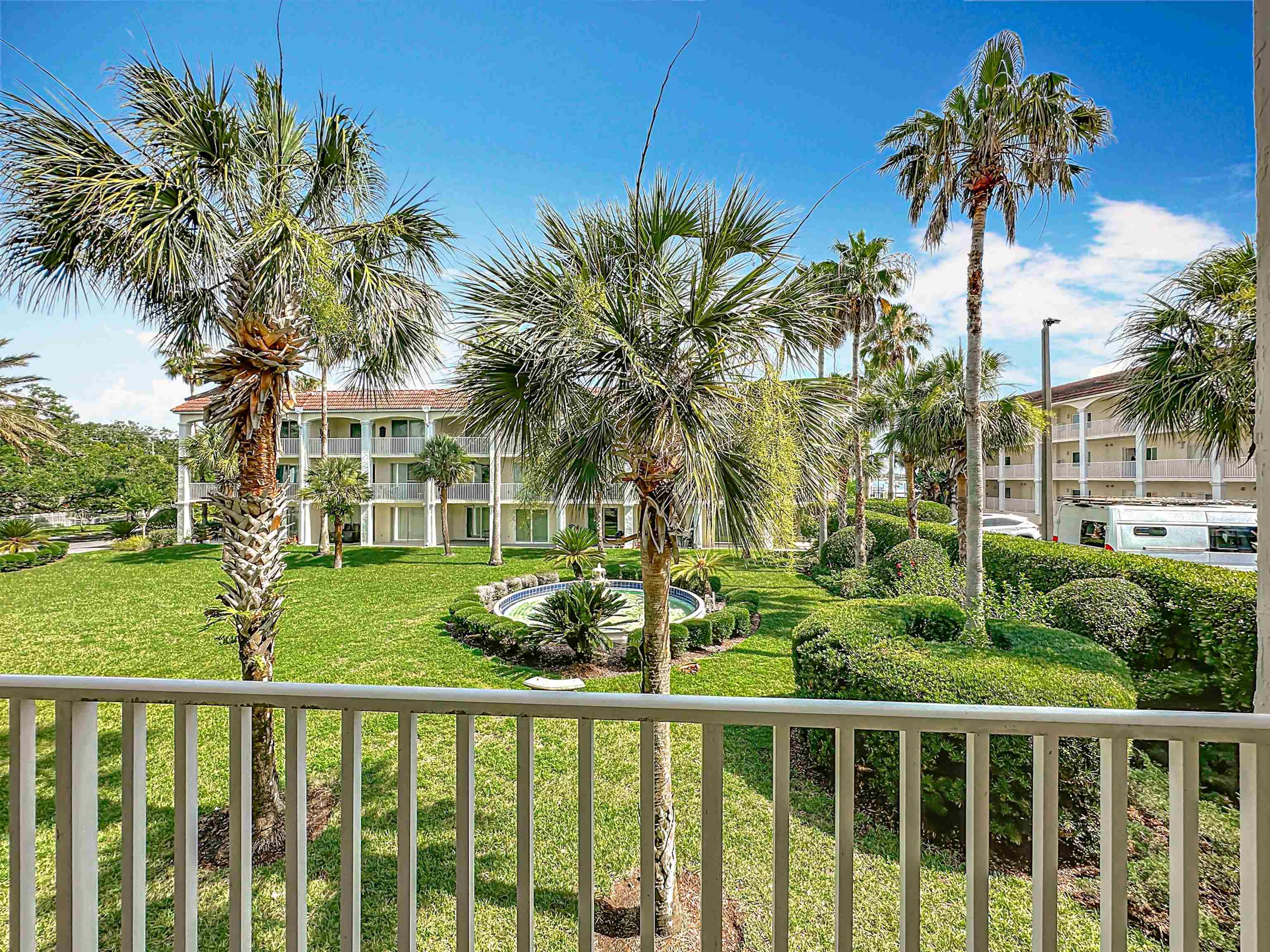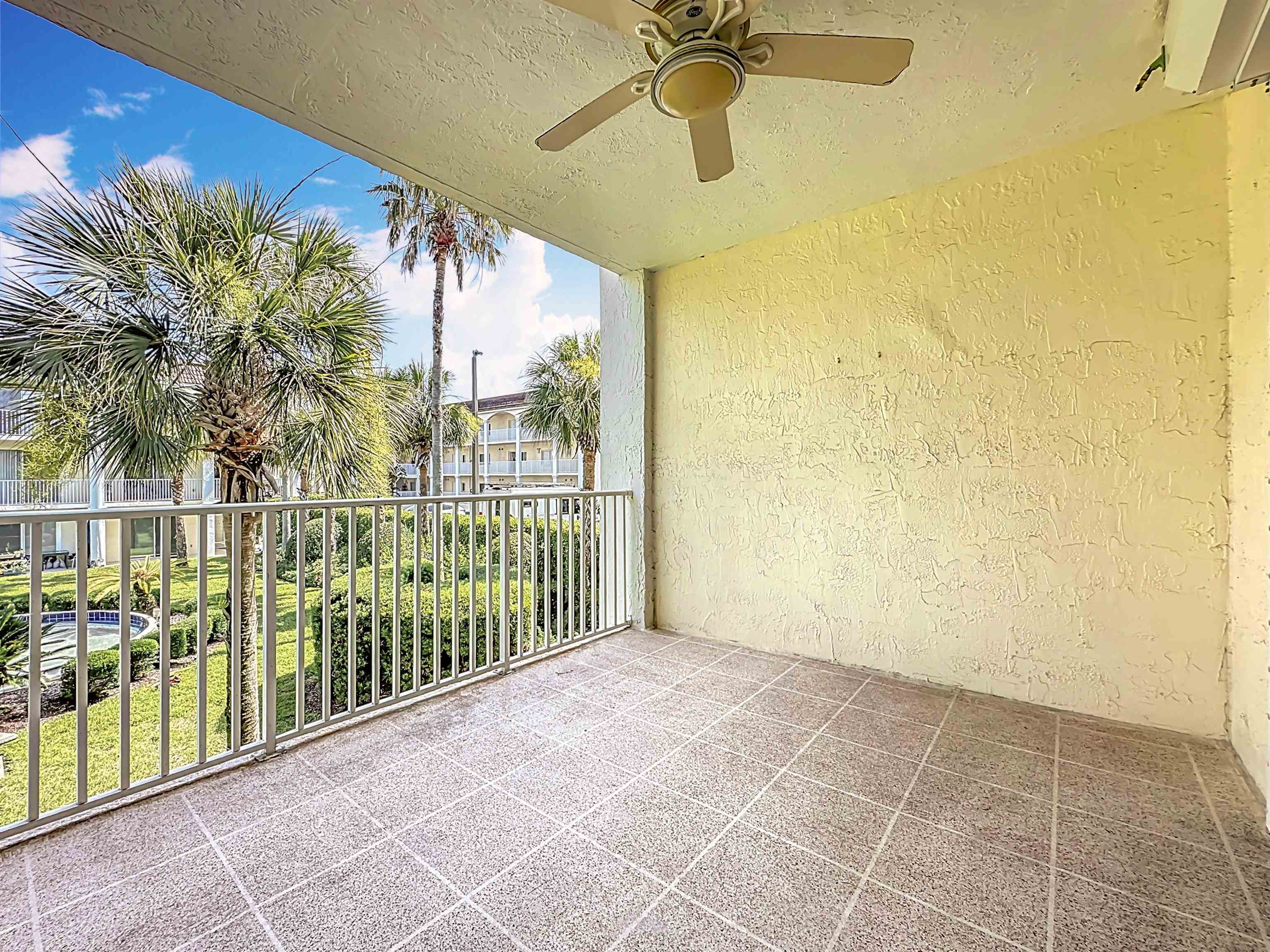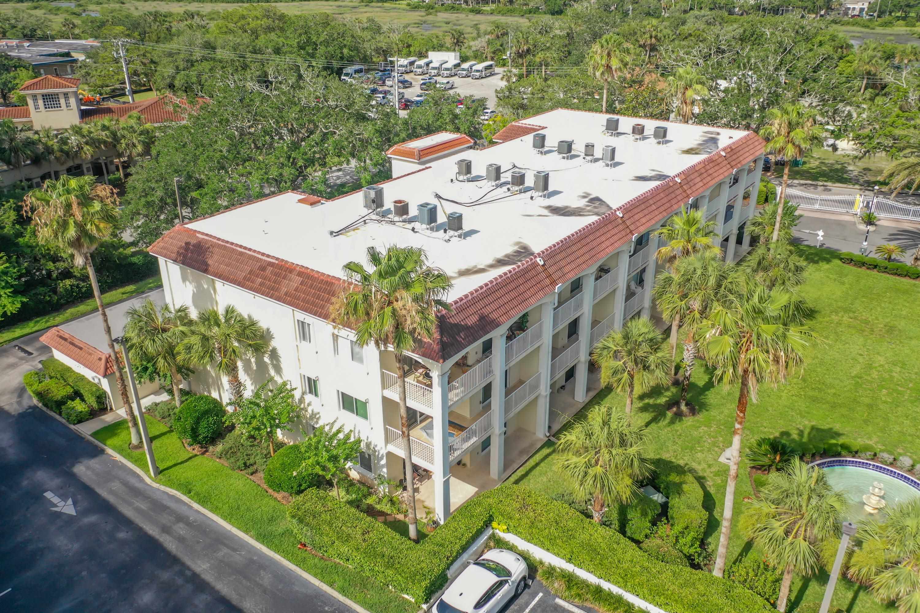 This wonderful 2nd floor condo in the Views at BayPointe is located in the heart of the historical district and includes a detached 1-car garage with additional storage space. Enjoy the rich history of the oldest city in the nation without worrying about where to park. Walk old brick streets and sidewalks to great restaurants, entertainment, unique shops, art galleries and museums. Flagler College is just a short walk as well as your choice of banks. Park your car in your assigned garage and get busy exploring. This condo features open floor plan with hurricane shutters and a view of the Intracoastal Waterway from your lanai. Full size washer and dryer off the kitchen. Large walk-in closet in master bedroom. Sunny lanai off the living room and master bedroom overlooks the Spanish style fountain and tropical courtyard with palm trees and lots of green space. Assigned one-car garage space is across from unit. Views at BayPointe offers a gated entrance, clubhouse, pool overlooking the Intracoastal waterway and private marina with boat slips owners can purchase separately, when available. New HVAC system with 10-year transferrable warranty. New owners pay a Capital Contribution of 2 months condo dues at closing. Condo docs available at: viewsatbaypointe. com Minimum rental period is 3 months. 3D Video tour link: https: //nodalview. com/s/3MnqSy6eb37R6Dc7Qz5Ck_