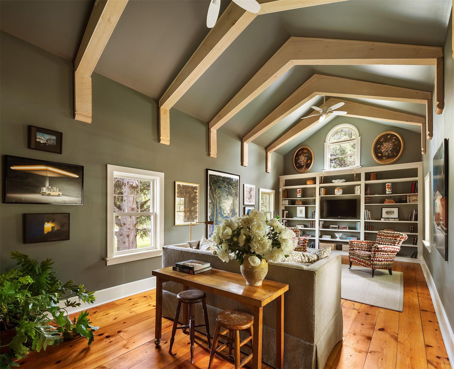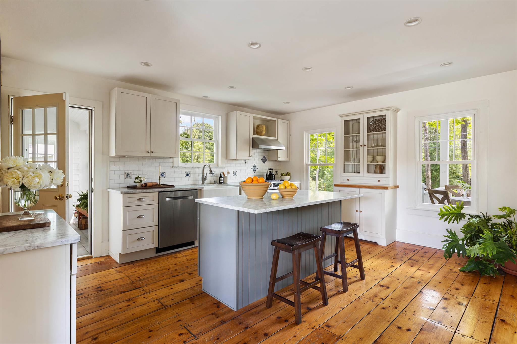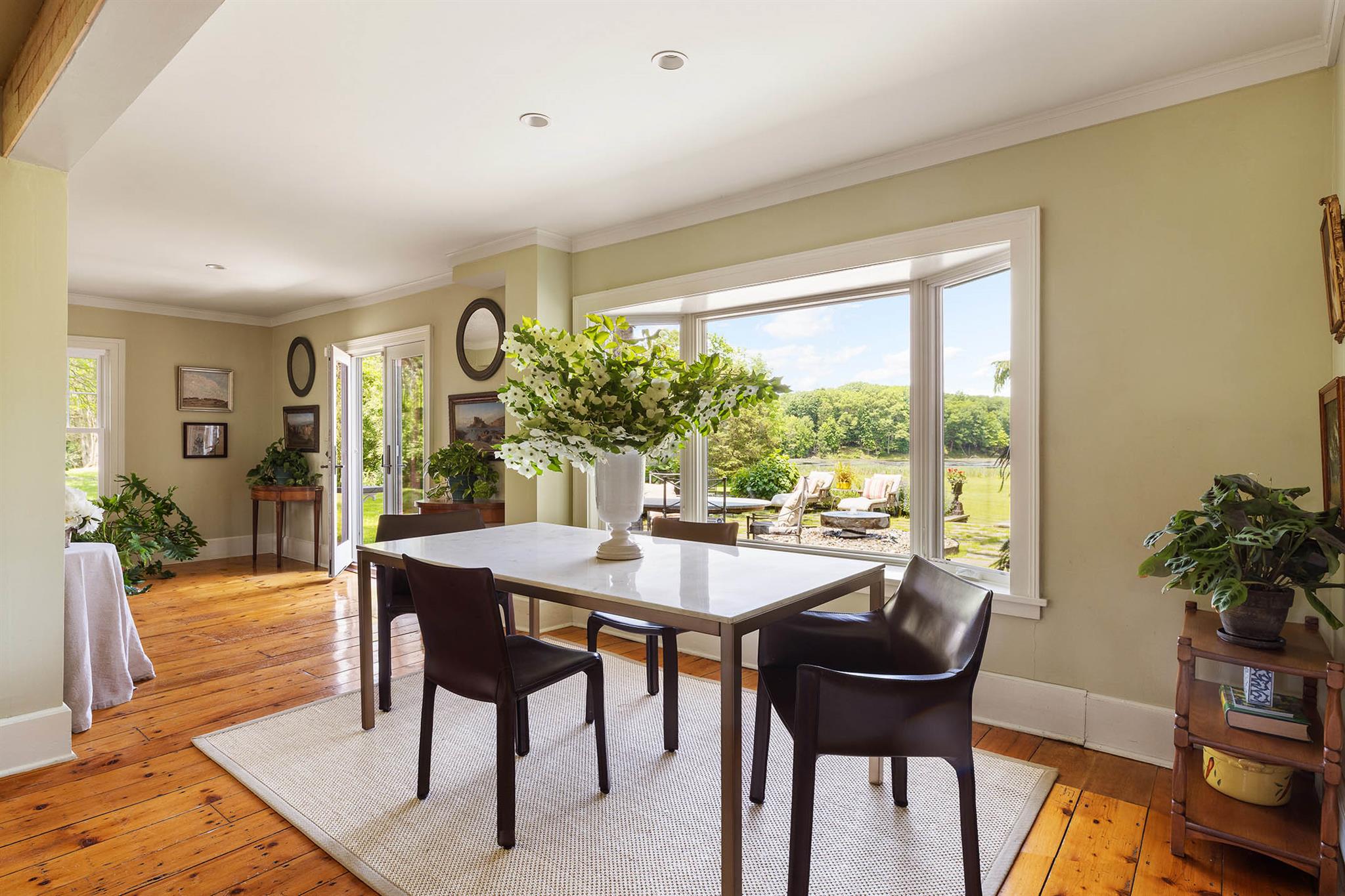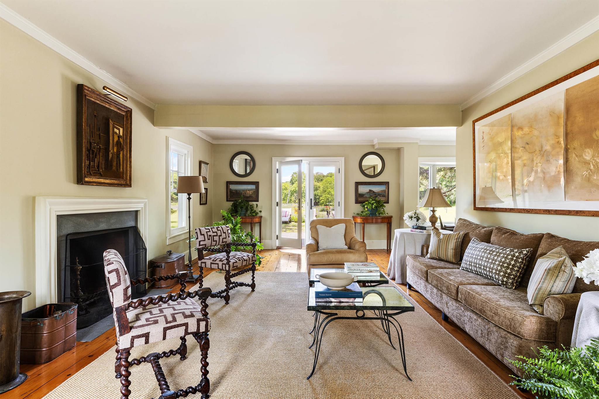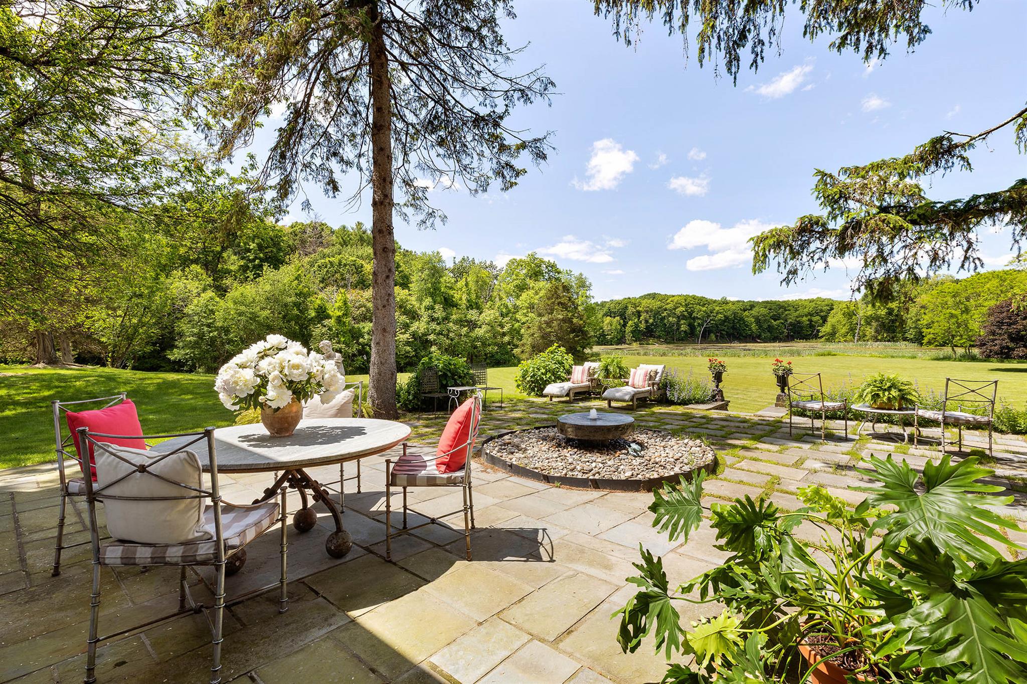 Hawkskill is a rare offering- a quintessential Hudson Valley country house set far back off a country road amidst 40 serene acres and accessed by a long private tree lined driveway. In the front of the home, which stands on a rise framed out by stately trees, a bubbling brook winds its way through a meadow and off towards the Roeliff Jansen Kill. At the back of the house a large flagstone terrace -with lovely established plantings , a deep electric awning and millstone fountain- leads towards a gentle sloping lawn revealing an expansive and magical view out over a romantic eight acre private lake. Here you can fish, frolic and paddle in the summer or ice skate in the winter to your hearts delight! The lake, meadows, stream and surrounding woods are rich with wildlife from turkey to deer, heron, owls and water birds of all kinds not to mention turtles, fish and the occasional fox sighting. Hawkskill is referred to as a Livingston tenant house, one of four in the area built by the Livingston family in 1859 as gifts to some of their more valued tenant farmers. The English Crown granted a large patent of land to Robert Livingston in 1684. This land grant became known as Livingston Manor and made the family the controlling manorial family in southern Columbia County for generations. By the mid-19th century when Hawkskill was built, the manor system was fading after tenant revolts and American expansionism westward, making a handsome home on a large tract of land an appropriate gift to a valued worker. The heart of the original home remains, with a welcoming front porch, center hall construction, lovely new paned windows to let the light stream in and beautiful wide plank pine floor boards. Upstairs are three sun filled bedrooms and two bathrooms renovated in a classic style. Downstairs the living room, with a wood burning fireplace and French doors out to the terrace, opens into a dining area that flows into the open plan country kitchen- making for a wonderful entertaining floor. A recent renovation to the ground floor addition is lined with windows and boasts a soaring cathedral ceiling with architectural wood beams, built in bookcases and media center, plus a third full bathroom. This space is currently used as a library/den but could certainly serve as a fourth, ground floor bedroom as well. A secret door off of the dining room leads to a large, full basement with an ample ceiling height and housing the updated systems for the house that includes central air conditioning throughout. Additionally there is an original historic barn, which has been updated to create a three bay garage with electronically controlled doors downstairs and a stair built to the second floor, providing additional storage or the space to create a charming guesthouse. Hawkskill is a peaceful retreat surrounded by rolling farmland and open spaces. The property is just minutes away from all that is on offer in neighboring Red Hook, Tivoli or Germantown, and equidistant to the trains at Hudson or Rhinebeck for easy access in and out of Manhattan.