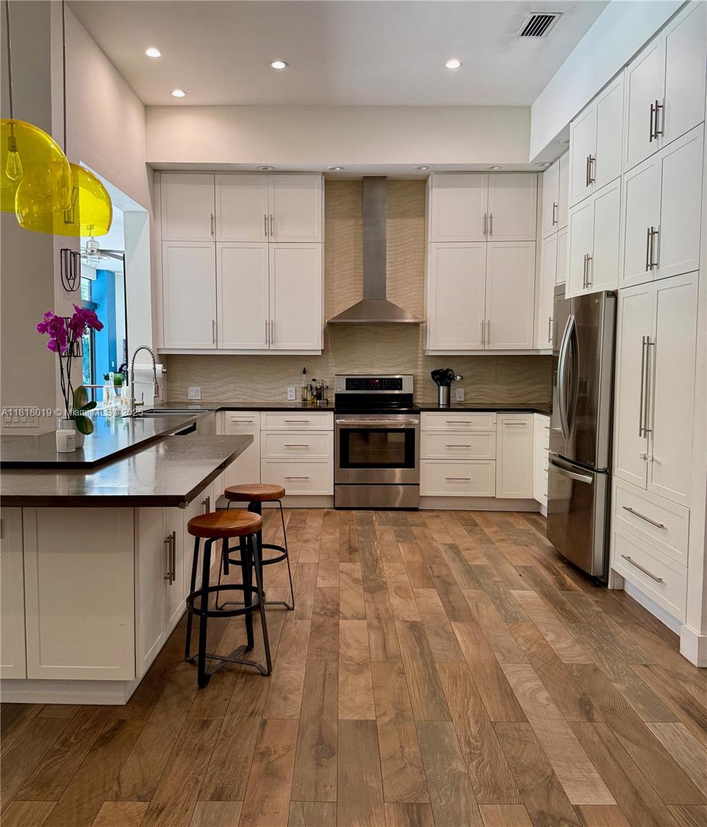 Sprawling 5, 116 SF home on a 23, 332 SF lot. Main house features 4 bedrooms, 4 baths, office and fully enclosed garage converted to a custom art studio/workshop. Soaring 12' ceilings, tons of natural light, and spacious kitchen that connects to open living spaces making it perfect for entertaining. Pool, avocado trees, and lush, private yard. Split bedroom plan, multiple flex spaces, ample storage, and parking.
