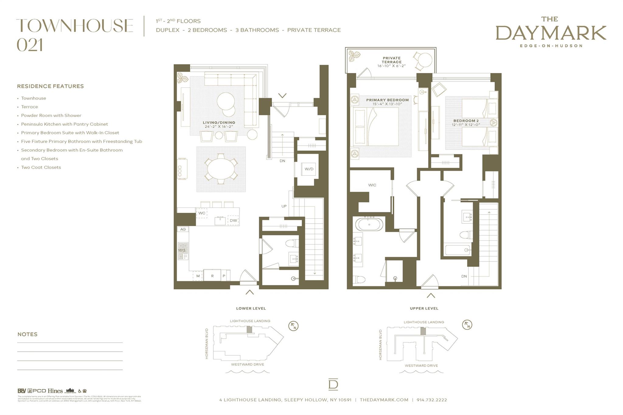 The Daymark brings luxury waterfront condominium living to the banks of the Hudson River in Sleepy Hollow, New York. Envisioned by architecture firm COOKFOX, The Daymark offers modern day comforts while harnessing the breathtaking beauty of its surroundings. Interior materials have been chosen to reflect the organic tones and textures of its waterfront setting.