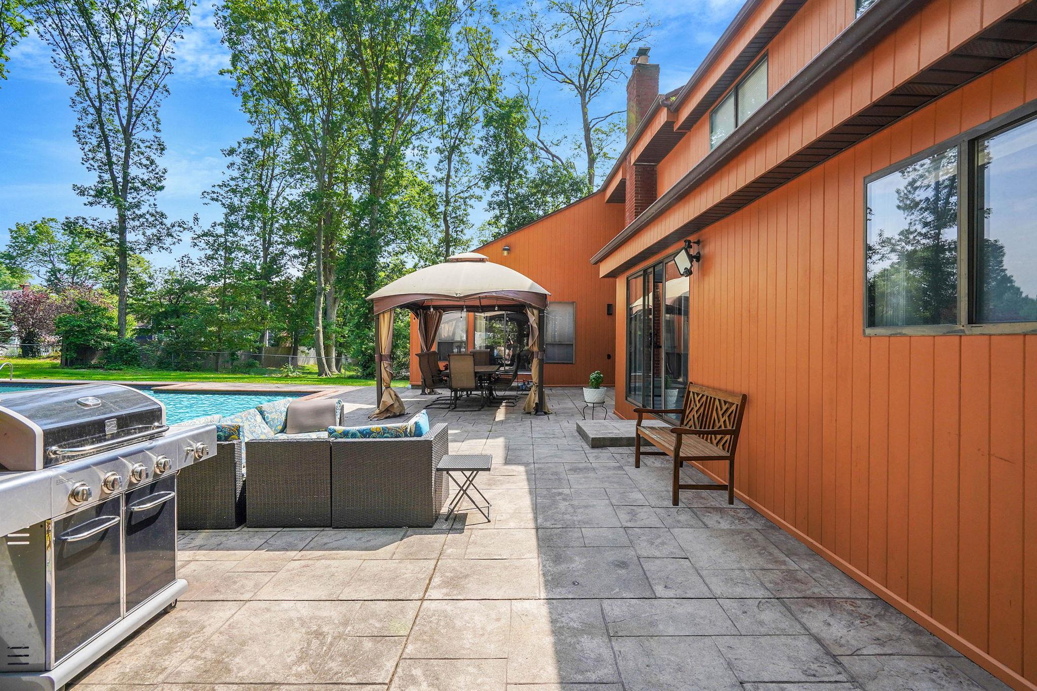 Welcome to this beautifully updated 5 Bedroom, 4. 5 Bathroom Contemporary Colonial, ideally situated in the highly sought-after Three Village School District. Step inside to find a completely renovated eat-in kitchen, featuring a large center island, gas cooking, stainless steel appliances, and plenty of custom cabinetry – a true chef’s dream and perfect for entertaining. This floor also boasts a large living room with vaulted ceilings and plenty of windows for ample amounts of light. A formal dining room and an office/sitting room, a full bathroom off the backdoor used frequently after the pool, and a separate powder room. The first-floor primary suite offers convenience and comfort, with a spacious walk-in closet and a luxurious en-suite bathroom boasting a jacuzzi tub and a separate shower. Upstairs, you’ll find 4 additional well-sized bedrooms and a recently renovated bathroom with sleek, modern finishes throughout. The finished basement adds incredible value and versatility, featuring a large recreation/living area, a full renovated bathroom, a kitchenette, and a dedicated office space—perfect for guests, remote work, or extended family. Step outside to your private backyard retreat with a spacious patio, ideal for summer entertaining, and a large in-ground pool for endless fun and relaxation. A generously sized shed at the rear of the property provides ample storage for outdoor equipment or hobbies. This move-in-ready home has everything you’ve been looking for. Location, space, and modern amenities. Don’t miss your opportunity to own this East Setauket gem!