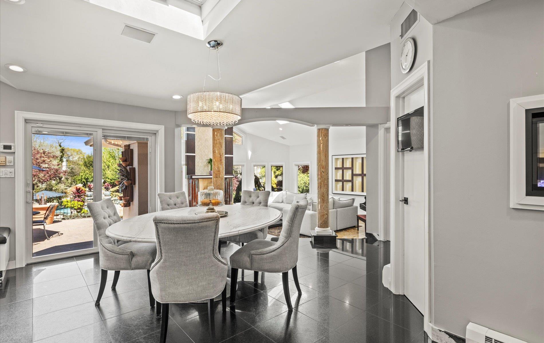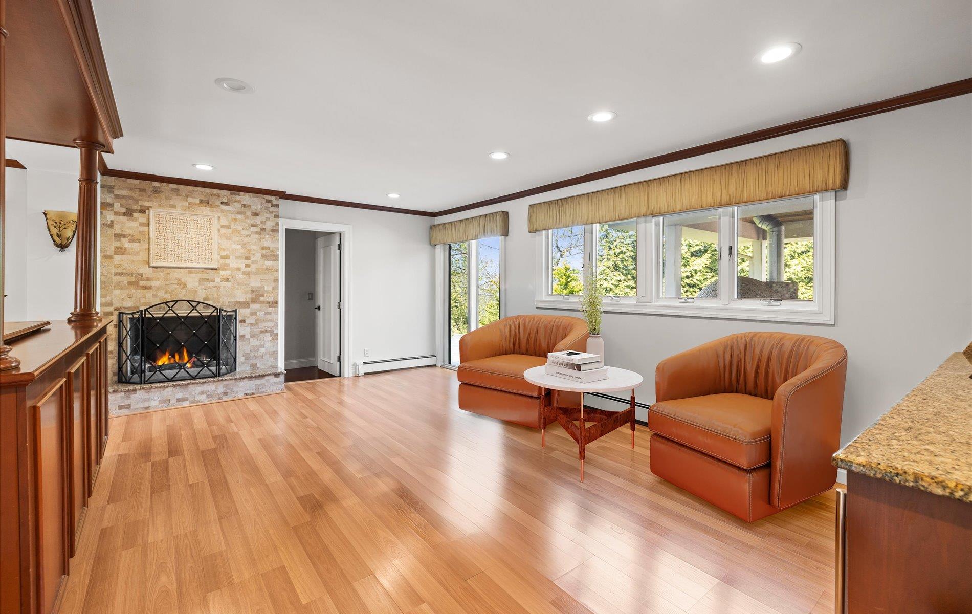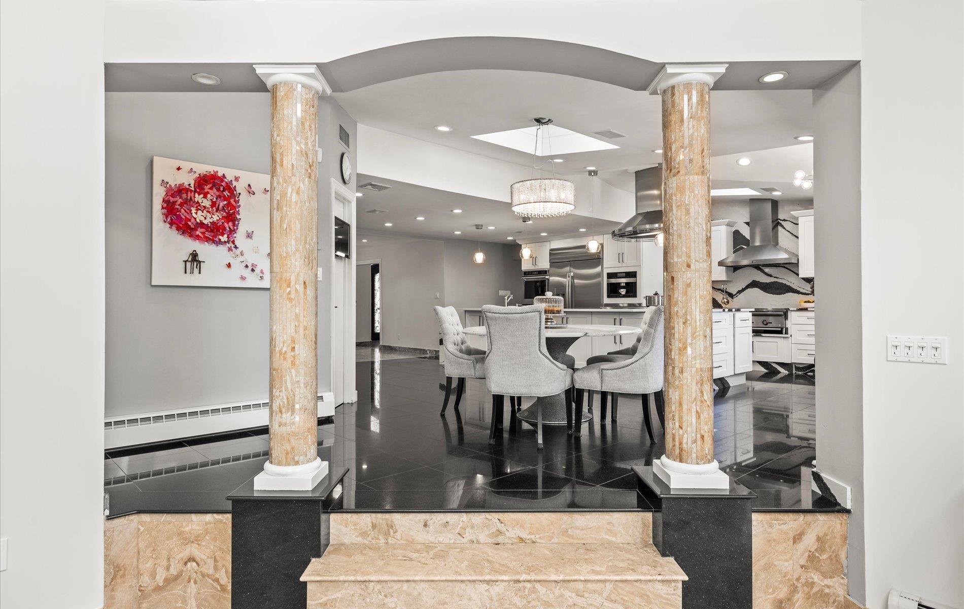 Welcome to your private oasis in the heart of the Half Hollow Hills School District! Tucked away on a QUIET cul-de-sac, this immaculate 5, 000+ square foot contemporary colonial offers the ultimate in luxury living and resort-style amenities, set on a magnificently landscaped property that feels like a five-star retreat. Step into the grand two-story foyer and immediately sense the refined elegance and perfect flow of this beautifully maintained home. Designed for both comfortable living and stylish entertaining, the spacious layout includes a private guest ensuite on the first floor, four fireplaces throughout, and generously sized rooms bathed in natural light. At the heart of the home lies a stunning, fully renovated eat-in kitchen featuring sleek white cabinetry, gleaming countertops, a massive center island, high-end appliances, cooktop, and a built-in BBQ—perfect for hosting and gourmet cooking. Upstairs, the luxurious primary suite is a true sanctuary, boasting a separate sitting room, a jaw-dropping custom walk-in closet with built-ins, and a spa-inspired bath complete with a jacuzzi tub. All additional bedrooms are spacious and beautifully appointed, offering comfort and privacy for everyone. The true showstopper is the extraordinary backyard. Multi-level and masterfully designed, this private resort paradise includes an outdoor kitchen with a pizza oven, charming gazebos, tranquil koi pond, multiple sitting and lounge areas, and a spectacular in-ground saltwater gunite pool with a swim-up bar. Whether you're entertaining or unwinding, every day feels like a vacation.