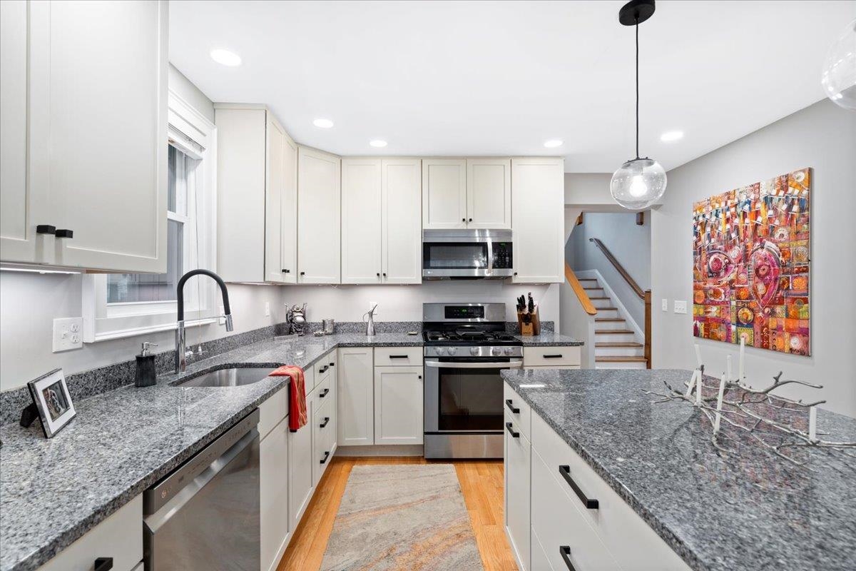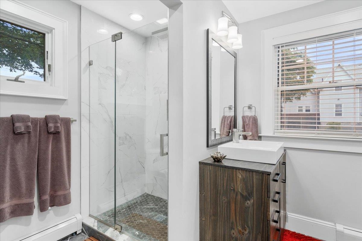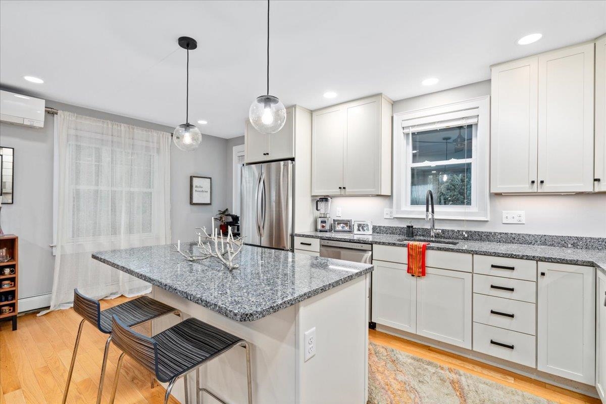 Welcome to 165 Taylor St where historic charm & character meets modern comfort situated in a quiet neighborhood. This METICULOUSLY maintained 4 Bedroom 2 Bath Colonial with 1 Car Garage and 1 Car Carport is beautifully situated on a large lot with a private backyard oasis centered around a 100+ year old sugar Maple that is truly mesmerizing! Enter front door and instantly love the OPEN FLOOR plan of Living/Dining Room, lots of natural light along with custom recessed lighting, Living Room with GAS Fireplace and Kitchen with Custom cabinets, GRANITE, large island and sparkling stainless Steel appliances! HARDWOOD floors throughout. Home had full remodel in 2018! Including All new Electric & Plumbing! 1st Floor Washer/Dryer. Cozy Sunroom overlooking your fully FENCED backyard. Second floor offers 4 Generous size bedrooms and Full Bath with newly renovated Bathroom with Jetted Glass and Tiled Shower, PORCELAIN Soaking Tub, custom vanity, porcelain/Marble tile throughout. Unfinished basement great for storage. NEWLY Re-Sealed Driveway! Conveniently located to I93, shopping, restaurants, Prout park & Elliot Hospital. Are you Ready to view your NEXT Home and OWN this oasis on the east side of Manchester?!
