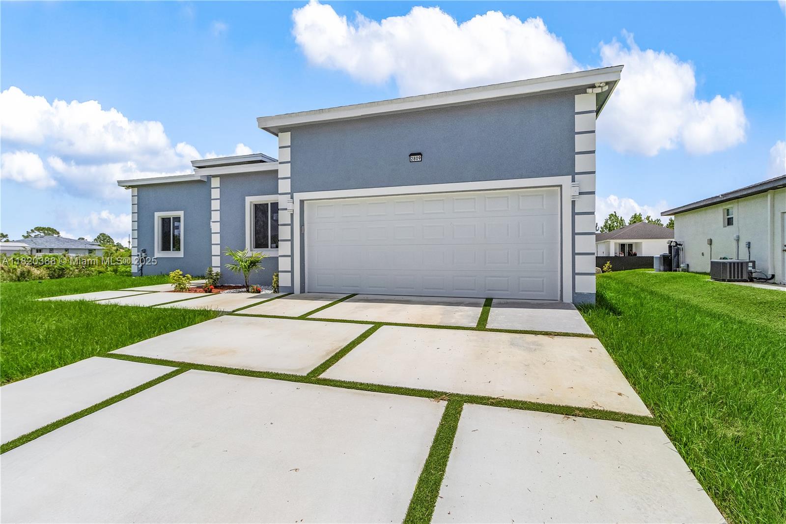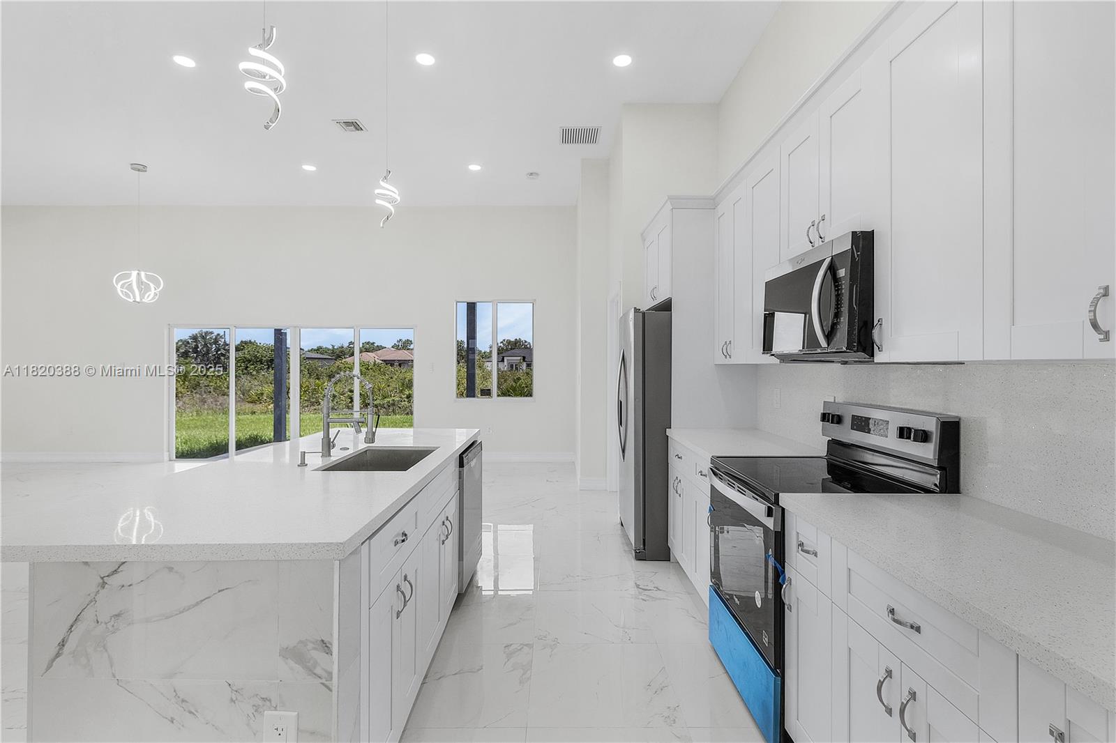 Beautiful New Construction Home In Lehigh Acres. This Charming Home Features 4 Bedrooms 2 and a half Bathrooms 2 Car Garage. An Oversize Master bedroom included walk in closets, dual sinks and a separate soaking tub. The open concept design 12 feet high ceilings, ceramic flooring in main living spaces, recessed lighting throughout the House. The Kitchen is fully equipped with upgraded 42 cabinets and quartz Countertops. Step outside through a sliding glass door to the lanai. Enjoy playing, relaxing and entertaining in your backyard