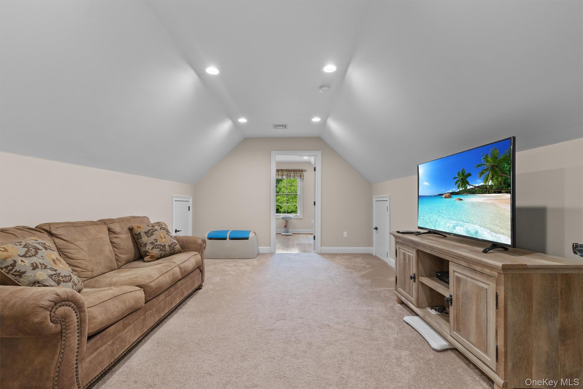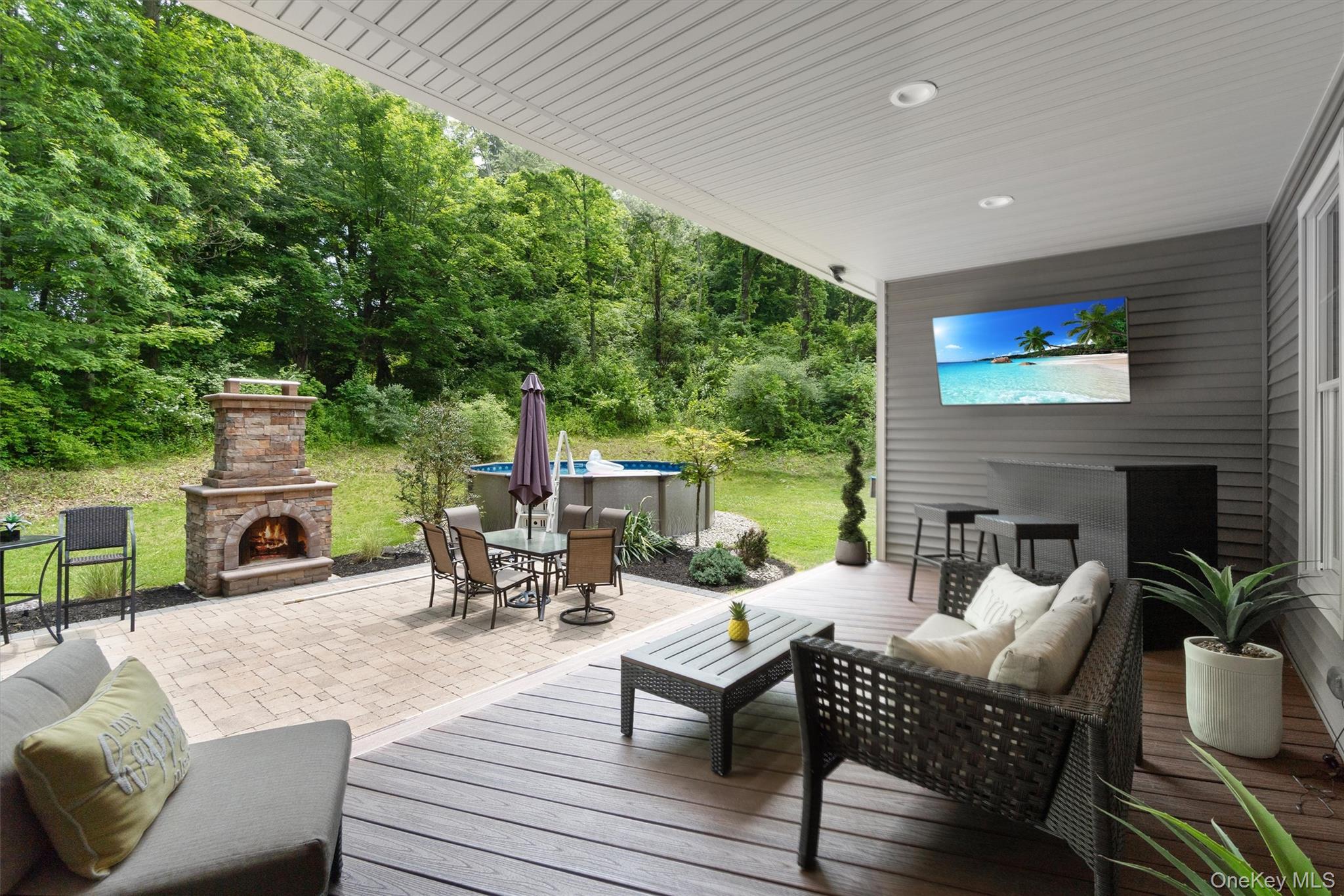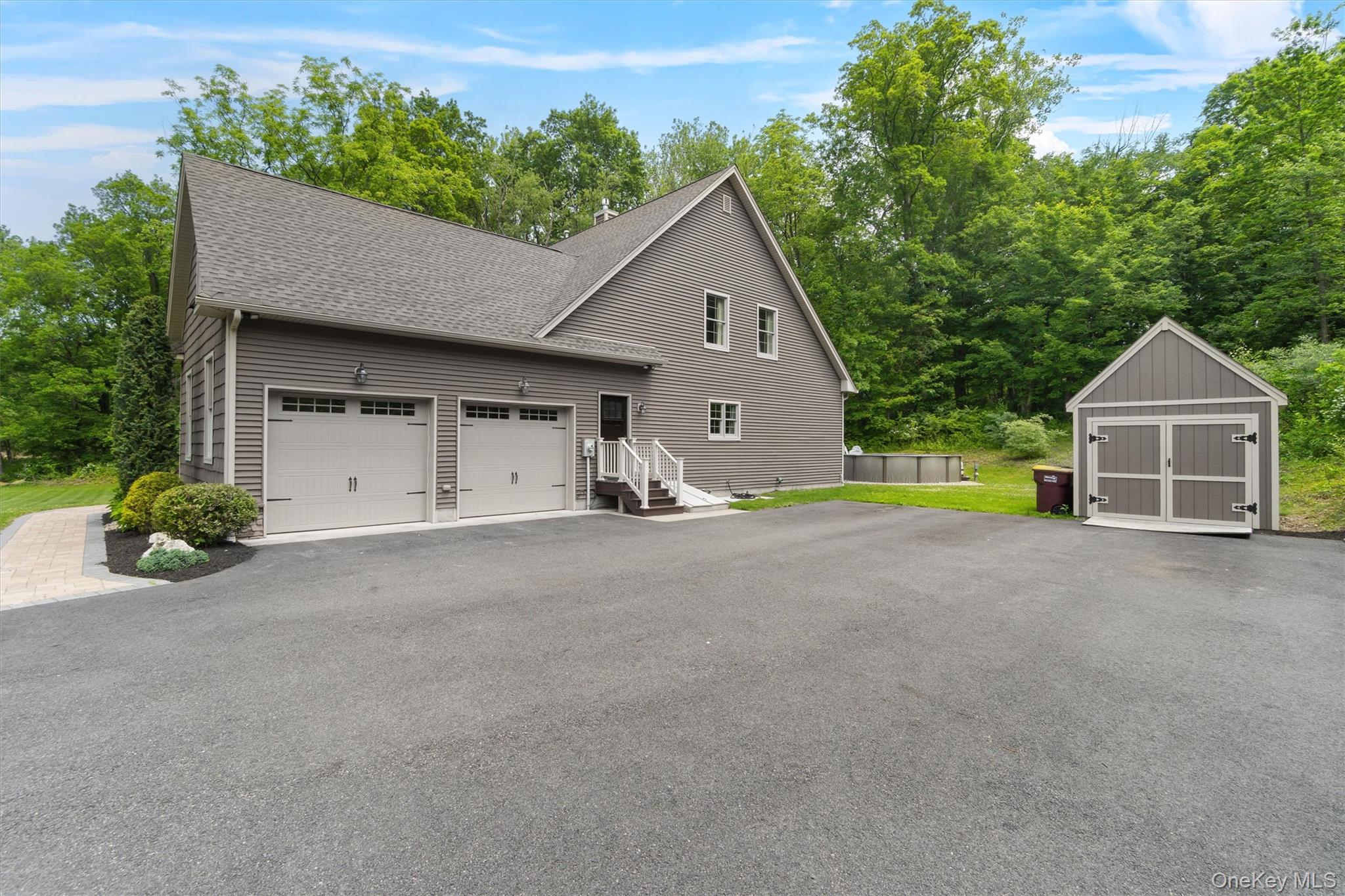 GORGEOUS CUSTOM COLONIAL BUILT IN 2016! Situated on a private cul de sac, this stunning 3, 063 square foot home sits on 1. 9 acres, and features 4 bedrooms, 2 1/2 baths, a second floor bonus room AND separate office/den above the 2-car garage (with BRAND NEW EPOXY FLOORING), as well as a fabulous back patio entertainment area with a covered deck with big screen TV, which steps down to an uncovered patio area with a built-in gas grill, stand-alone fireplace, and an above-ground pool . . . and finally, a full unfinished basement with 9-foot ceilings ripe for finishing! And that's just for starters! The owner is a builder who built this home for his family -- and it shows! Curb appeal galore as you pull in the driveway and walk up to the stone paver patio. Enter to an open floorplan with gleaming hardwood floors, and a living room featuring cathedral ceilings and a gas fireplace with the stone chimney extending all the way up, along with sliders to the back deck/patio area. An open kitchen concept includes stainless steel appliances, beautiful quartz countertops, a breakfast bar, a pantry, and is sandwiched by a formal dining room, as well as an eat-in dining area. This home also feature a main floor en suite with bathroom with soaking tub and stand-up shower and two walk-in closets. Upstairs are three generously-sized bedrooms, not a mention an oversized bonus room which leads into a separate office/den area. The property is well landscaped, and includes a separate drive up to an open area with a pop-up garage tunnel, as well as plenty of space for an RV and any other outdoor equipment, etc. (and this area is completely obscured from the home). Private setting, yet just minutes from the Village of Warwick and all it has to offer, not to mention hiking, skiing, boating, entertainment, fantastic dining options, orchards, Farmers Markets, wineries, breweries, bike/walking trails, drive-in movie, bowling alley, schools, library, hospital, and so much more. This home and property has everything you need -- just move right in and unpack!