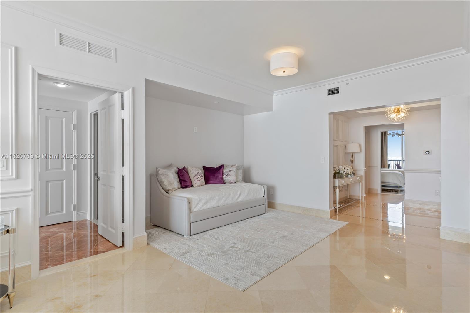 Step into a storybook of oceanfront elegance with the white glove service to match. This exquisitely finished 3-bedroom, 3-bathroom flow-through residence at the legendary Acqualina. This turnkey masterpiece has been impeccably redesigned with top-of-the-line finishes and every detail thoughtfully curated for the most discerning buyer. From the moment you enter, you’re greeted by sweeping views that stretch the beautiful Atlantic and the tranquil Intracoastal. As a resident of Acqualina, a Forbes 5 star resort, you’ll enjoy access to the world of five-diamond resort amenities: three shimmering pools, an exclusive beach club, in-residence dining from acclaimed restaurants Avra and Il Mulino, ; and full-service European spa, 24/7 concierge. This is more than a home; it’s a castle in the sky.