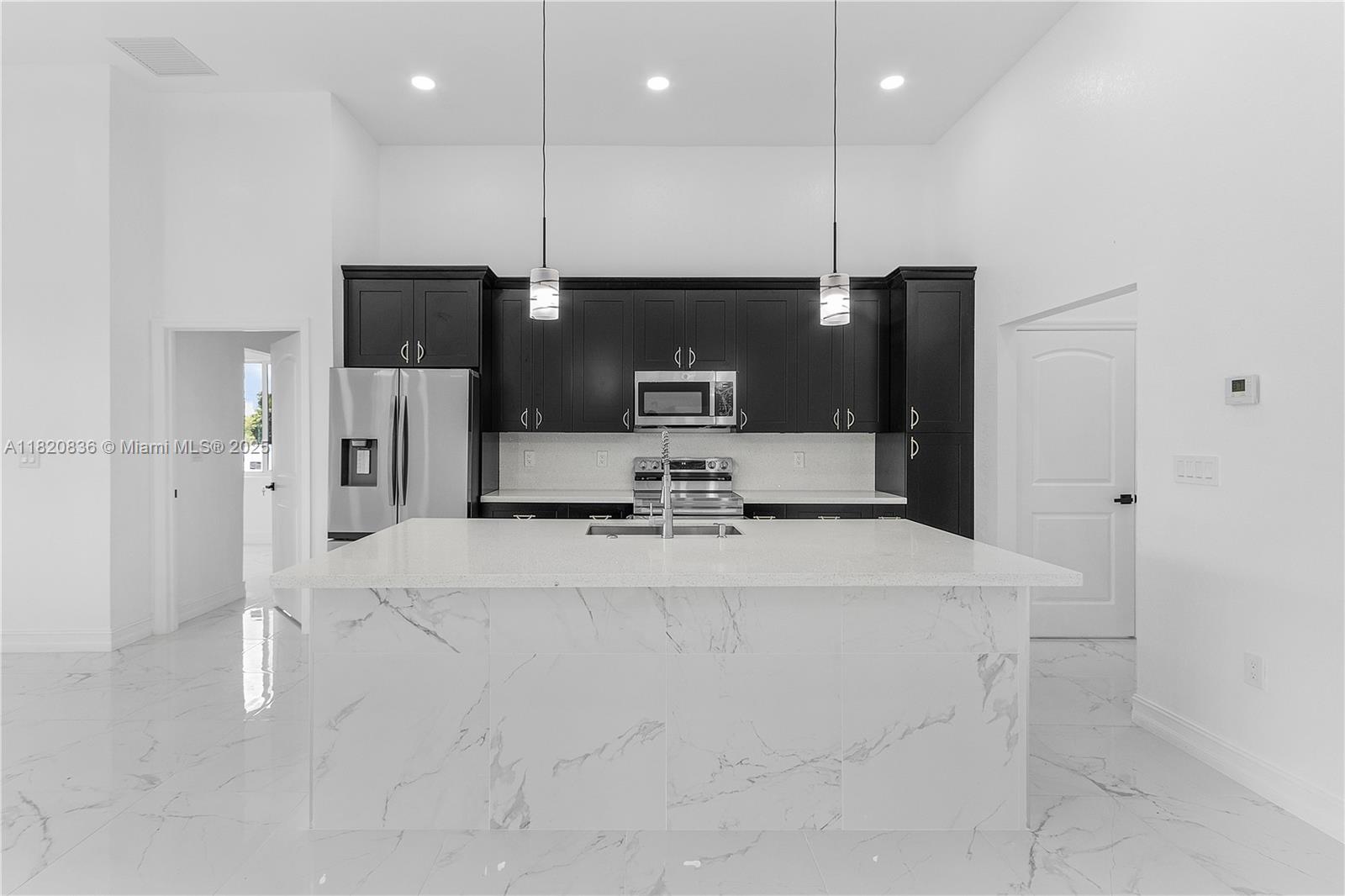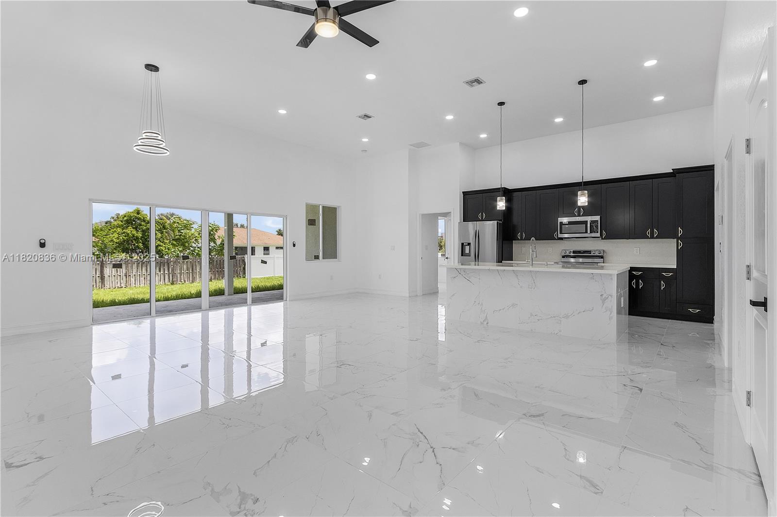 Beautiful New Construction Home in Lehigh Acres. This Charming Home Features 4 Bedrooms, 2 and a half Bathrooms 2 Car Garage. An Oversize Master Bedroom included walk in closets, dual sinks and a separate soaking tub. The open concept design 12 feet high Ceilings, ceramic flooring in main living spaces. Recessed lighting throughout the House The Kitchen is fully equipped with upgraded 42 cabinets and quartz Countertops. Step outside through a sliding glass door to the lanai Enjoy playing, relaxing and entertaining in your backyard.