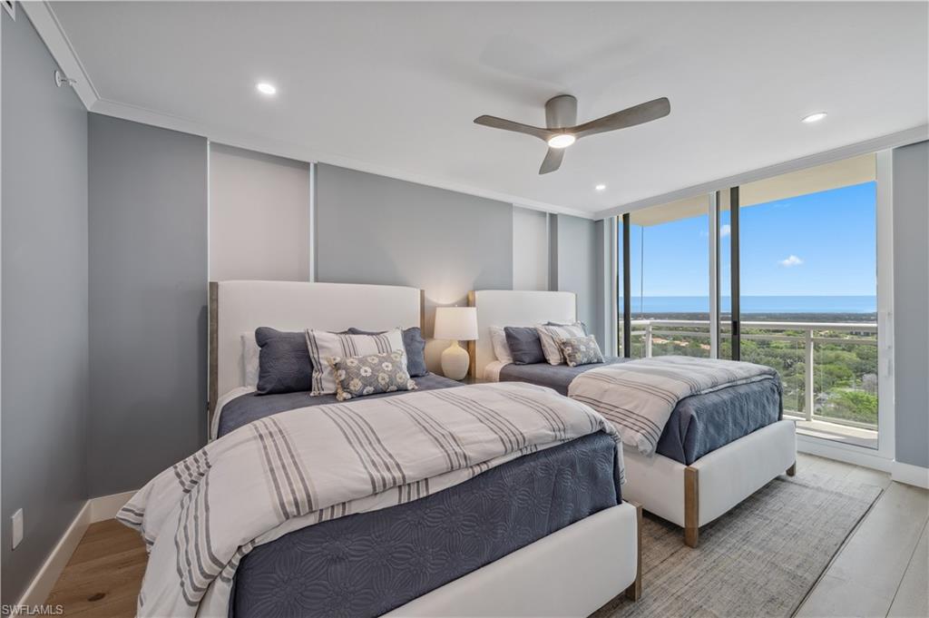 Whether you're enjoying a sunset cocktail, entertaining guests, or simply relaxing in solitude, Residence 1606 offers an ideal setting for an unforgettable seasonal or monthly stay. Framed by floor-to-ceiling glass sliders, this spacious layout is ideal for both quiet relaxation and lively entertaining. The main living space boasts luxurious designer furnishings, plush seating, and curated artwork, all arranged to take full advantage of the sweeping views of the Gulf and Naples' iconic coastline. Slide open the massive hurricane-rated glass walls to blur the line between indoor and outdoor living. The expansive lanai becomes your open-air living room, equipped with comfortable lounge seating and a dining table—perfect for enjoying coffee at sunrise or a candlelit dinner against the colors of a Florida sunset. Gourmet modern chef’s kitchen equipped with top-of-the-line Sub-Zero and Wolf appliances, sleek quartz countertops. Four Bedrooms, 3 En Suite for Ultimate Comfort