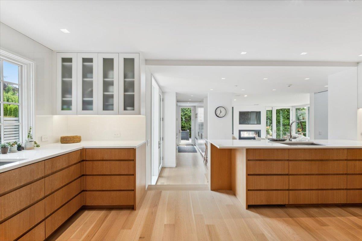 Located in a prized Rye Beach location, this beautifully reimagined Tudor-style home masterfully blends historic character with striking modern design. A sleek, charcoal-stained cedar addition introduces clean lines and bold contrast to the meticulously restored stucco and timber facade. Inside, natural light floods the interiors, anchored by a dramatic glass-enclosed stairwell that bridges the original structure with the new addition. The first floor features a spacious family room with oversized floor to ceiling doors, double sided interior/exterior fireplace and the open contemporary kitchen. The graciously sized living room and dining room also enjoy bright windows and a fun windowed bar room. The upper level houses a serene primary suite nestled within the extension. This bedroom is the ultimate zen space with a wall of windows, stunning bathroom with heated floors and oversized glass shower and two separate dressing rooms with custom built ins. Two additional family bedrooms all with en suite baths and a private home office finish this floor. Flowing perfectly upstairs is another graciously sized bedroom suite with a full bath, sitting area brightly lit with many windows and skylights. Throughout the home a theme of warm wood, steel, and glass elements create cohesion and visual interest, enhancing both form and function. Designed by the architectural firm Joeb Moore, the home was awarded the 2015 American Institute of Architects high honor award and was featured in the Wall Street Journal. As the new extension echoes the tones and materials of the original Tudor, forging a seamless connection between past and present. Interior spaces are curated with custom millwork, elegant finishes, and high ceilings that evoke both comfort and openness. The exterior of the home perfectly matches the homes style with a 645 sq ft deck, covered seating area, tv, built in BBQ, heaters and generator. The yard is perfectly flat, highly usable with lush plantings. All of this is perfectly placed on a quiet, tree-lined street in one of Rye’s most desirable coastal enclaves. 35 Halsted Place offers a rare combination of privacy and style, just steps to Rye Town Park, Oakland Beach, and the vibrant downtown.