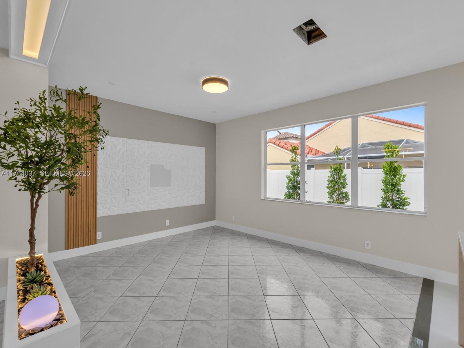 Inside, you’ll find new flooring on the stairs and second floor, smooth ceilings (popcorn removed), fresh interior and exterior paint, impact windows and doors, and designer lighting with adjustable warm or white tones. The home also features a smart thermostat, smart doorbell, and new exterior lighting.