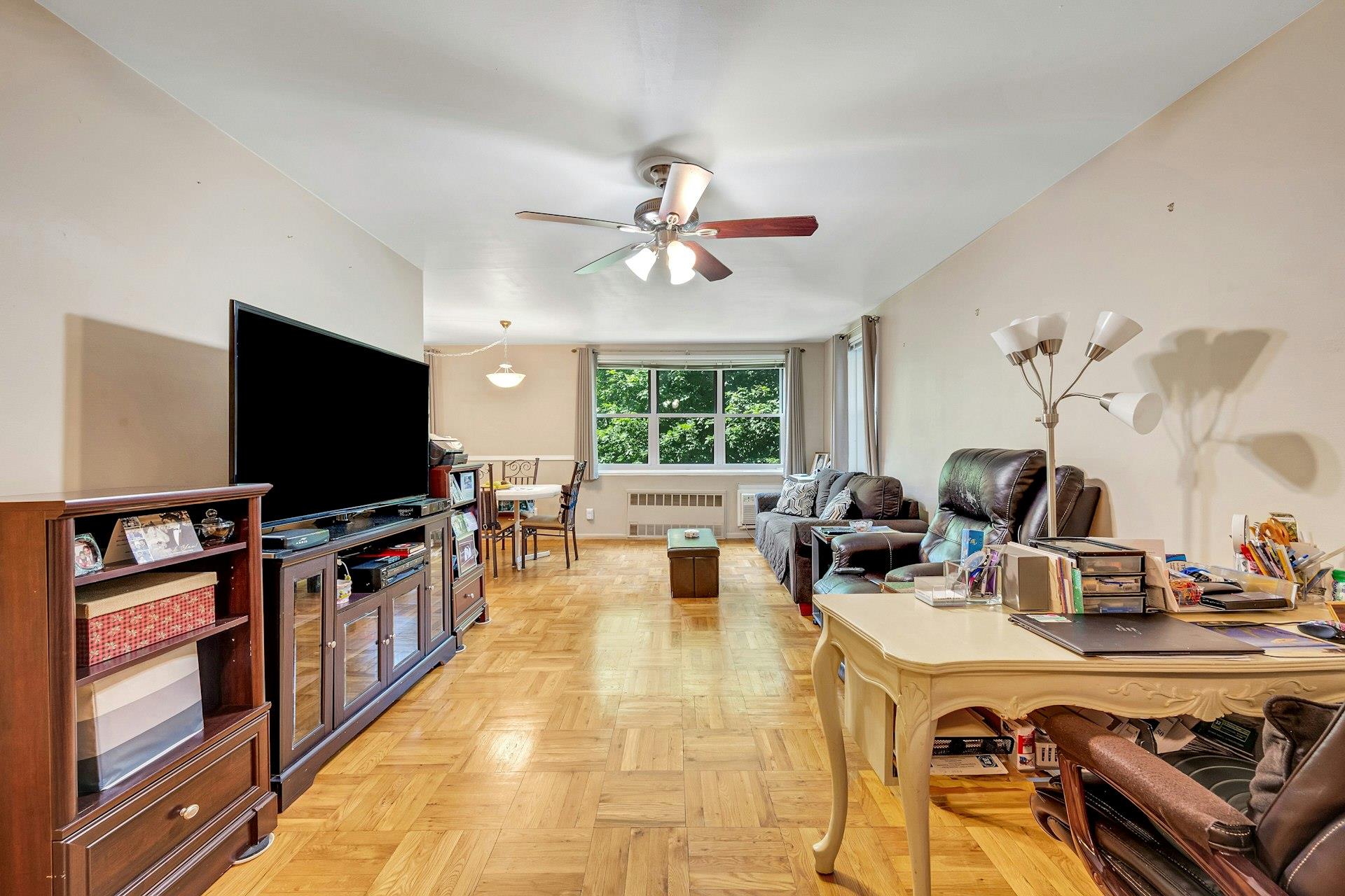 A/o 6/20**Just place your furniture in this Charming Oversize 1-Bedroom Co-op with Scenic Views!** Discover your dream home in this spacious and bright oversize 1- bedroom co-op, perfectly nestled in a serene community surrounded by natural beauty, Have coffee watching the deer and bunnies in the wooded view. . **Key Features: ** - **Spacious Layout: ** Step into an inviting large foyer that flows seamlessly into a large living room and versatile dining area, offering the potential to transform into a 2nd bedroom or a cozy den. - **Ample Storage: ** Enjoy the luxury of 6 closets, including 2 generous walk-in closets, perfect for all your storage needs. - **Quiet Living: ** Situated with no downstairs neighbors, you'll experience unparalleled peace and tranquility. - **Comfortable Living Environment: ** Benefit from 3 ceiling fans to keep your space airy and comfortable all year round. - **Community Perks: ** Part of a vibrant and welcoming community, complete with a playground, outdoor pool and beautiful green spaces for leisurely strolls. Extra parking available, may be wait. This home offers an exceptional blend of space, comfort, and nature's charm. Don't miss the opportunity to make it yours! Contact us today to schedule a viewing.
