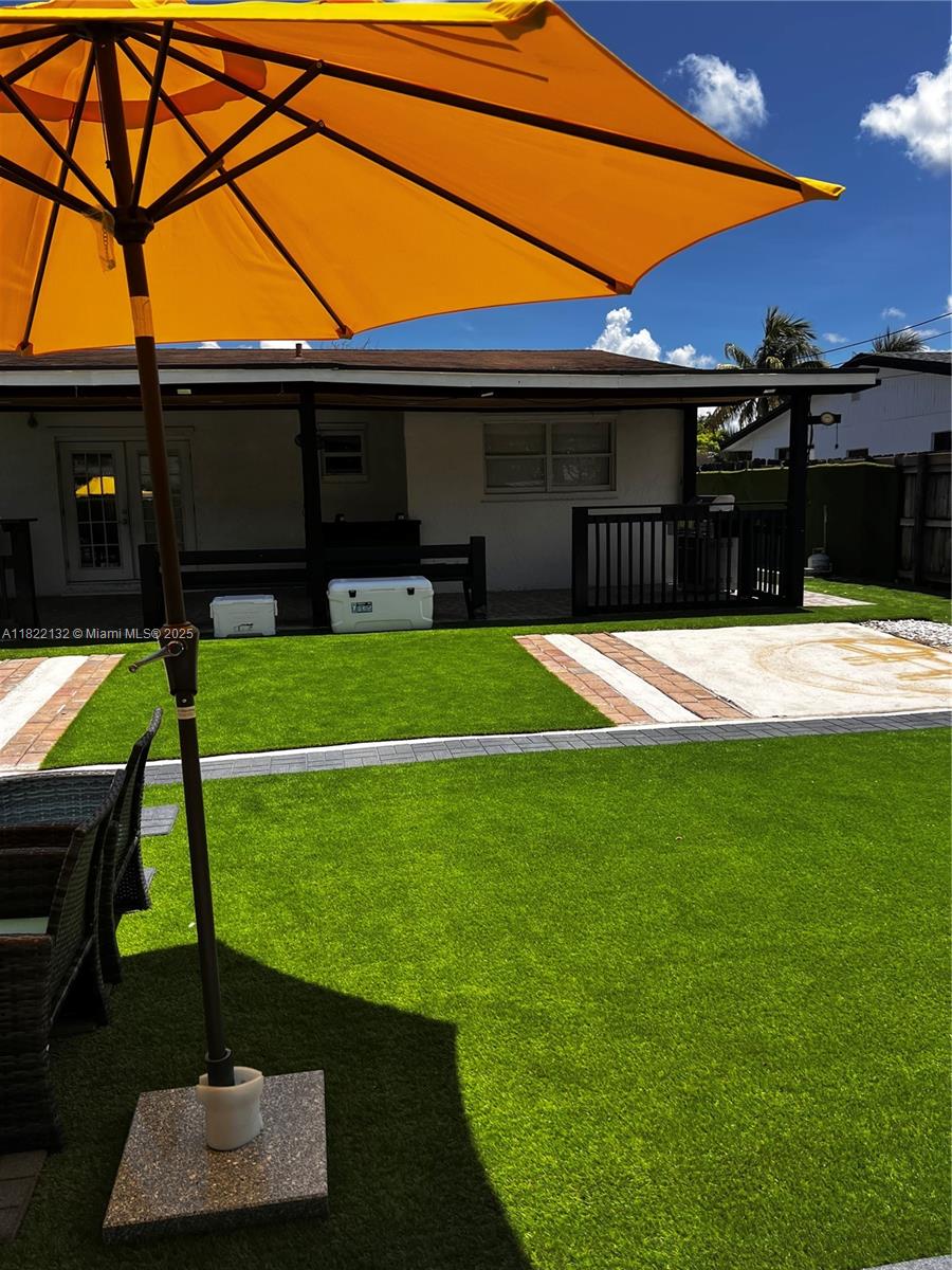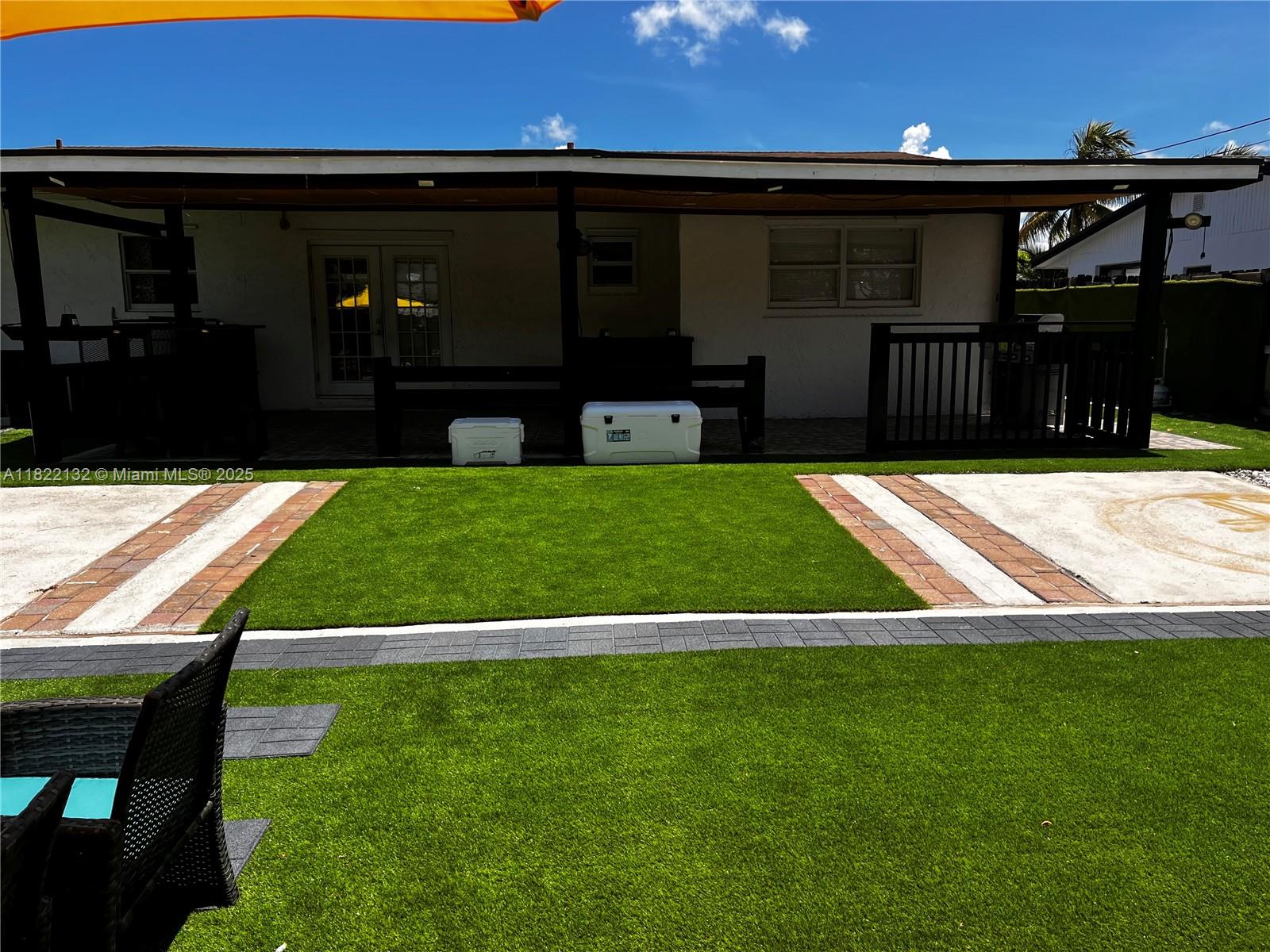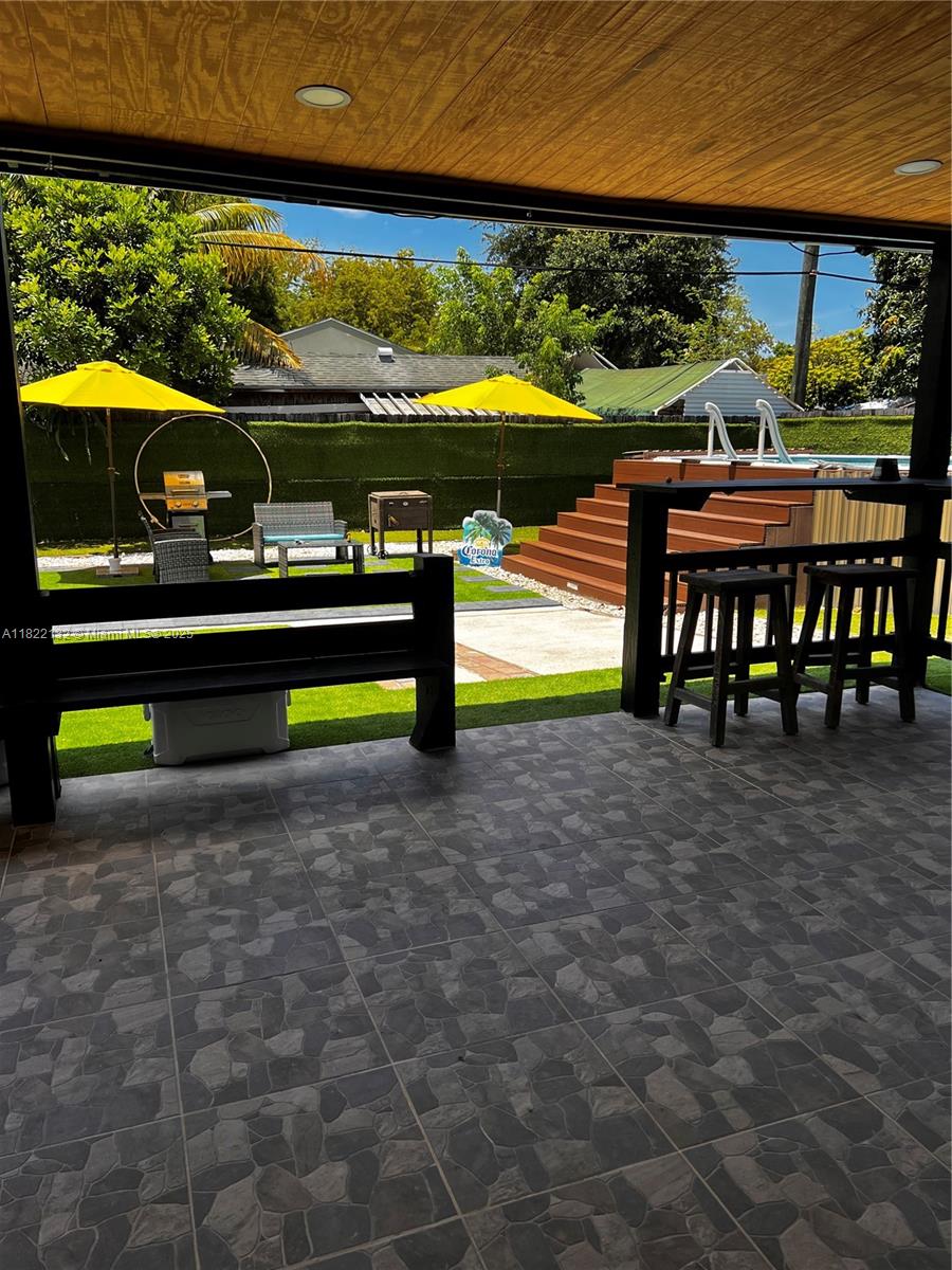 Beautifully maintained 3-bedroom, 2-bath single-family home combining comfort and style. Features a bright open-concept layout with marble-look tile floors throughout. The updated kitchen offers rich wood cabinets, granite countertops, stainless steel appliances, and a built-in beverage cooler. Enjoy a spa-inspired bathroom with sleek finishes, rainfall shower, and frameless glass. The backyard is a true retreat with a covered patio, BBQ area, and an above-ground pool with sun deck, all surrounded by low-maintenance turf and tropical landscaping. Recessed lighting, modern fixtures, and a spacious driveway with room for a boat or RV add to the appeal. Conveniently located near highways, shopping, and schools—perfect for relaxing or entertaining!