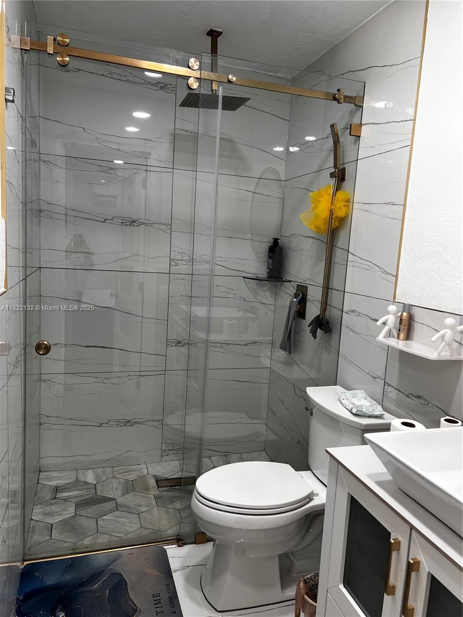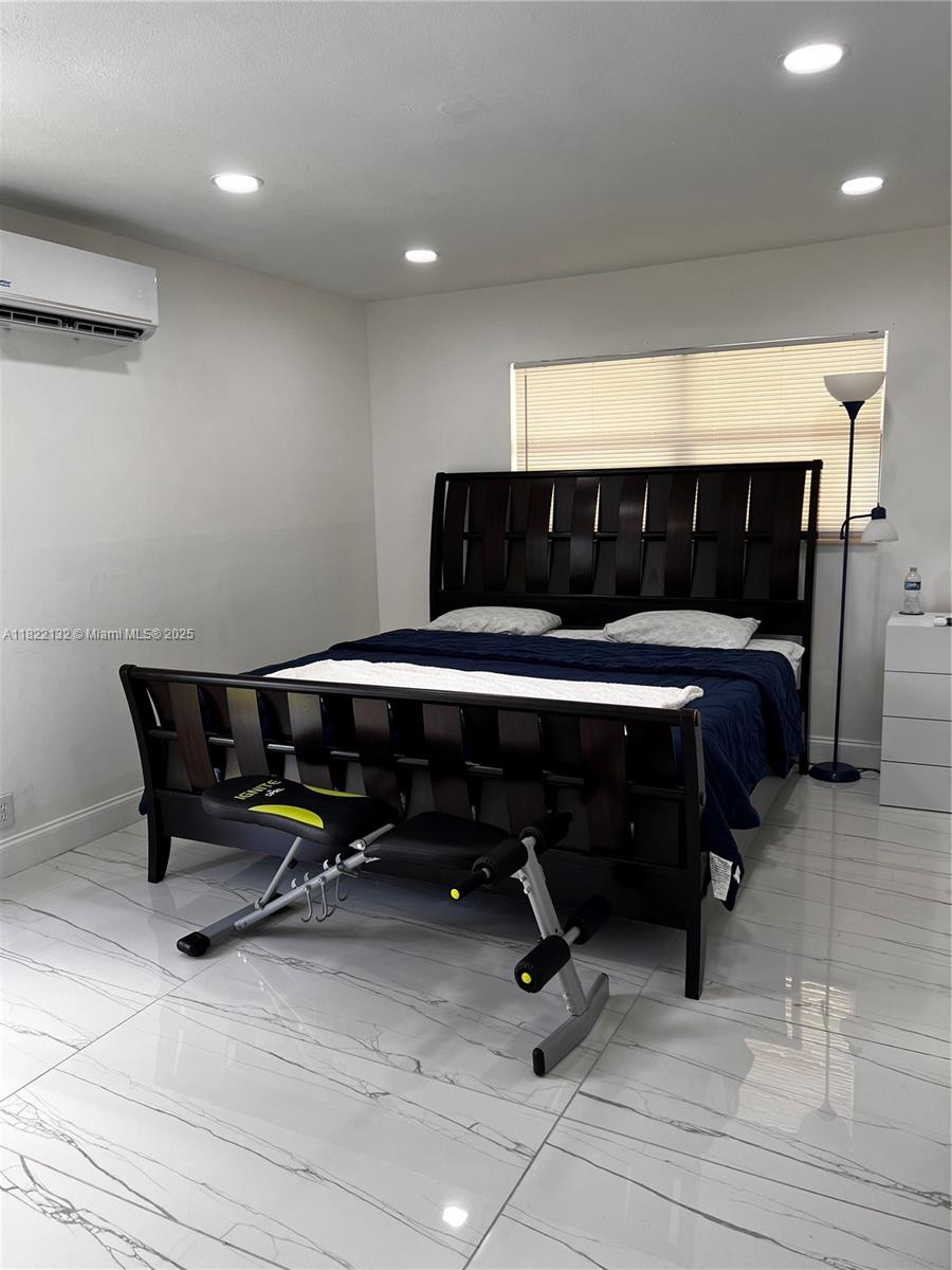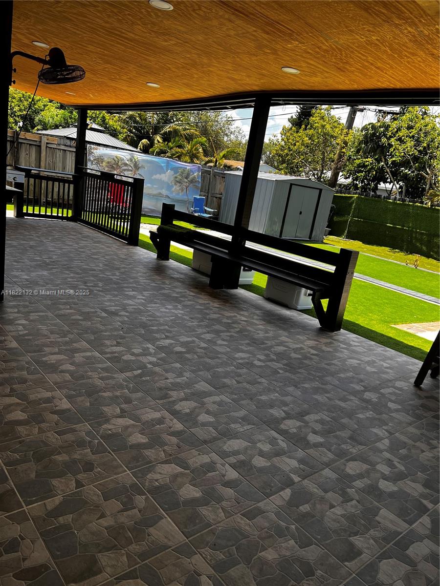Beautifully maintained 3-bedroom, 2-bath single-family home combining comfort and style. Features a bright open-concept layout with marble-look tile floors throughout. The updated kitchen offers rich wood cabinets, granite countertops, stainless steel appliances, and a built-in beverage cooler. Enjoy a spa-inspired bathroom with sleek finishes, rainfall shower, and frameless glass. The backyard is a true retreat with a covered patio, BBQ area, and an above-ground pool with sun deck, all surrounded by low-maintenance turf and tropical landscaping. Recessed lighting, modern fixtures, and a spacious driveway with room for a boat or RV add to the appeal. Conveniently located near highways, shopping, and schools—perfect for relaxing or entertaining!