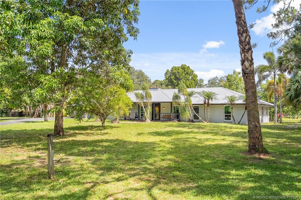 Country eleg?n?e & modern ?omf?rt on thi? beautiful 5-acre P?lm Cit? Farm estate ideal for large families, multigenerational living or income potential. The CBS main home is 3, 602 sq ft of living space w/ 5 bedrooms, 3 baths, an open-concept kitchen & living area w/ shared fireplace & a large, air-conditioned Florida room overlooking a tranquil pond. Enjoy updated flooring, a remodeled master bath, impact glass & hurricane shutters for peace of mind. An attached studio suite w/ a full bath provides privacy for guests/in-laws while the 2-bedroom guest house features a spacious kitchen w/ granite countertops perfect for family or rental income. Equestrians will love the barn complete w/ 3 horse stalls, hot & cold water, a workshop and tack room. Outdoor living shines with a pond, tiki bar, dock & lush, fenced yard perfect for entertaining or relaxing. Located near schools, dining, & highways this serene property combines rural charm w/ everyday convenience, the best of Palm City living.