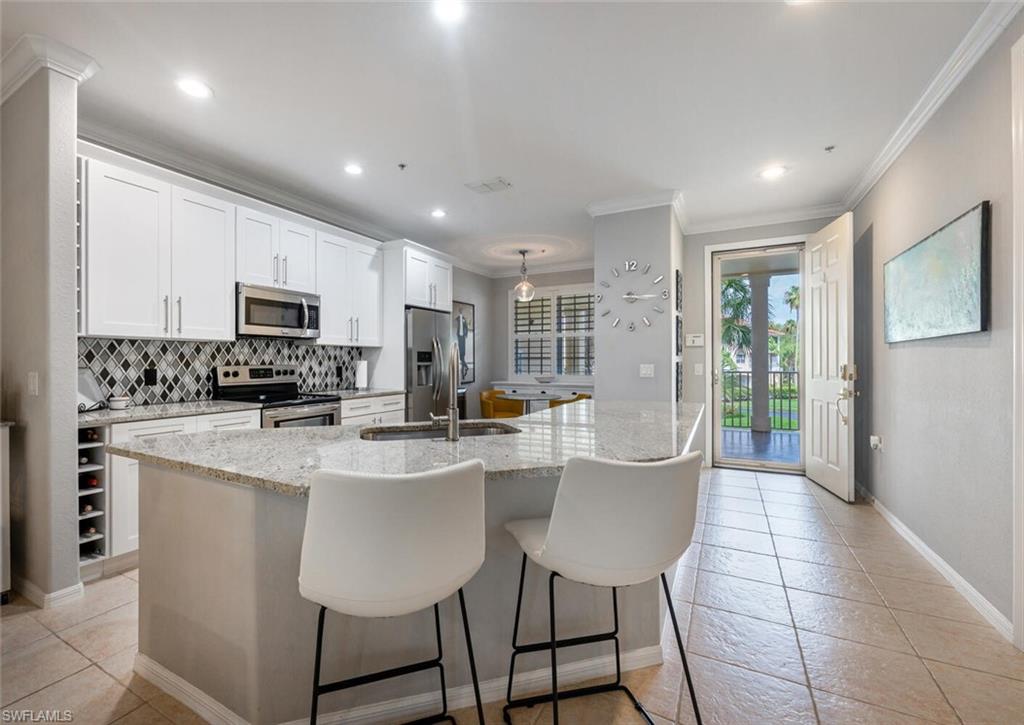 Renovated 2BR/2BA beautifully styled condo with a 2-car garage in the award-winning Naples Lakes Country Club! Located in the most desirable building on a quiet cul-de-sac, this move-in ready, turnkey-furnished unit features the largest lanai of all condo models—perfect for enjoying stunning sunsets, lake views, and the 16th fairway. Interior upgrades include new cabinetry, granite countertops, crown molding, plantation shutters, engineered wood flooring in bedrooms, newer AC, and updated fans and lighting. Spacious open-concept layout with great natural light and NW exposure for breezes all day long. Naples Lakes is a bundled golf community with an Arnold Palmer Signature Course, tennis, clubhouse dining, resort-style pool, and fitness center. Under 30 mins to Marco Island and 5th Ave South, and approx. 40 mins to RSW Airport, depending on traffic. Just bring your bag and start enjoying life in paradise!