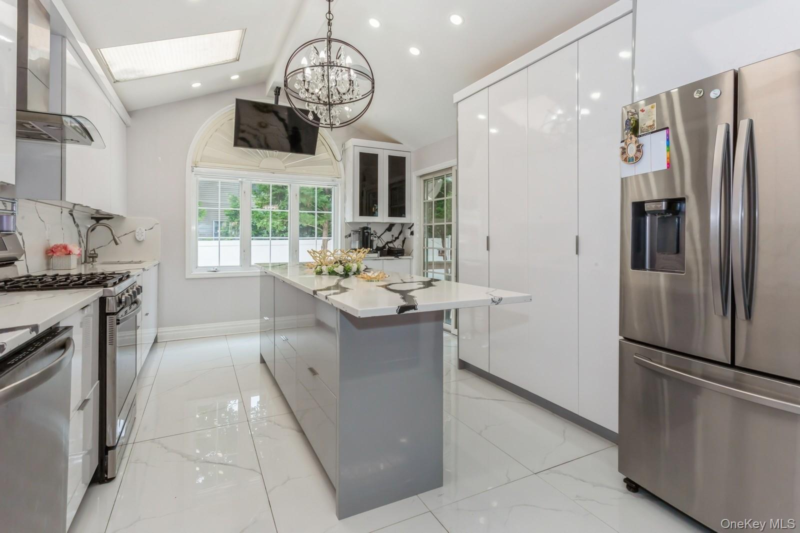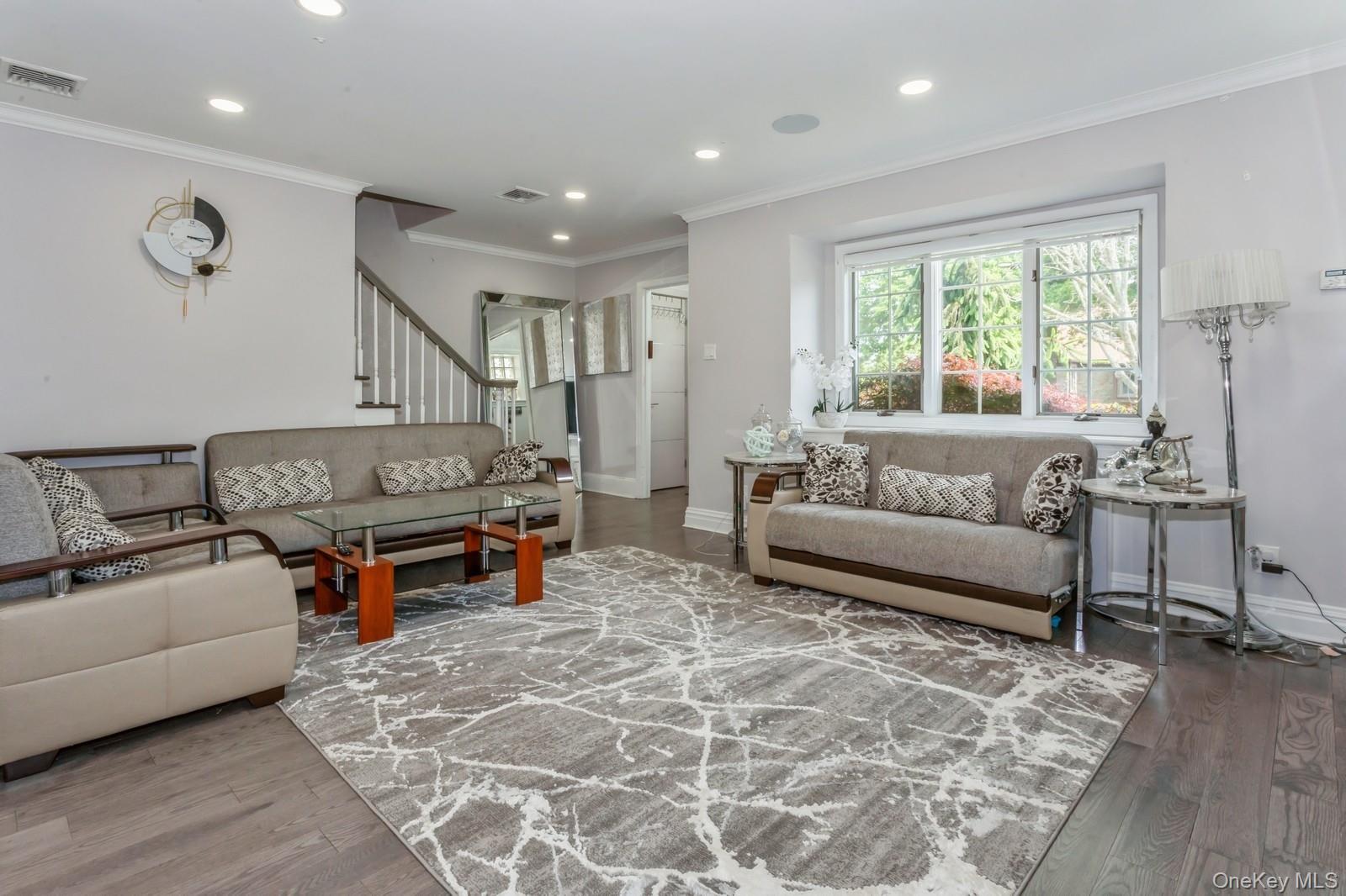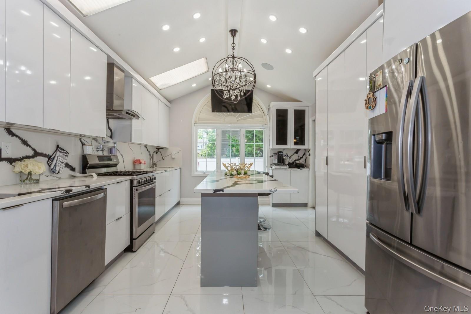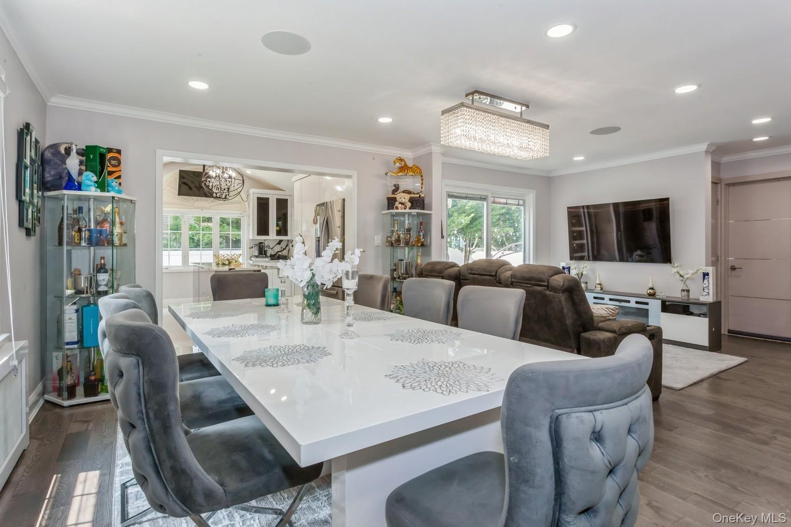 Move right into this stunning renovated COLONIAL in LYNBROOK SCHOOLS District #20. Welcome to this beautifully updated 4-bedroom, 2-bath home, ideally situated on an oversized lot on a tree-lined street. This home is move-in ready and features a range of luxury upgrades. Step into the inviting foyer with a convenient coat closet, leading to an elegant and spacious living room featuring a wood-burning fireplace, bay window, built-in speakers, hardwood floor throughout the house, and energy-efficient LED spotlights. The expansive dining room seamlessly flows into a cozy TV room, perfect for gatherings and entertaining. The heart of the home is a stunning, oversized, custom white eat-in kitchen: radiant floor heating, 2 sinks, cabinets with pull out drawers, LED under-cabinet lighting, built-in pantry with pull-out drawers, stainless steel appliances and gas stove with pot filler, quartz countertop with a matched backsplash for a seamless modern look, large center island with seating, two skylights, large arched window, and sliding glass doors that open to the backyard brings an abundance of natural light. A first-floor bedroom and updated full bathroom offer flexibility for guests or extended family. The 2nd floor has 3 spacious bedrooms and a full bathroom. European custom interior doors, central AC, ductless mini-splits, gas cooking, plenty of closet space, full finished basement with washer & dryer, full attic for extra storage, and attached garage. Enjoy the oversized, paved backyard ideal for entertaining with built-in speakers, water and gas connections for an outdoor kitchen, retractable awning, security cameras, solar panels, and new PVC fencing. No Sandy damage and no flood insurance required. This exceptional property is a true must-see. Schedule your private tour today and experience this beautifully renovated home for yourself!