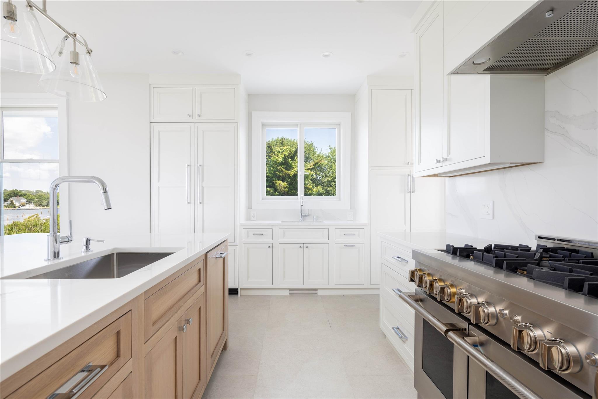 Extraordinary Waterfront Estate in Center Moriches Introducing a rare and remarkable offering on the serene shores of Senix Creek and the Great South Bay—an exceptional waterfront residence boasting panoramic bay views and an unparalleled 388 feet of impeccably maintained Navy bulkhead. Nestled on nearly one acre of secluded, manicured grounds, this custom-renovated masterpiece is a boater’s dream, featuring a protected 50-foot slip, deepwater dock and accommodations for vessels up to 75 feet. The residence showcases timeless craftsmanship and elegant design, with four spacious bedrooms and three and a half luxurious baths. An expansive living room is graced by wide-plank wood flooring, gas fireplace, exquisite coffered ceiling, molding and bespoke built-in bar—an ideal setting for both intimate gatherings and grand entertaining. The gourmet eat-in kitchen is a culinary showcase, outfitted with custom cabinetry, quartzite countertops, JennAir refrigerator and range, Bosch dishwasher and dual sinks, all designed to inspire the chef in you. Retreat to the tranquil primary suite offering breathtaking 270-degree water views, a cozy gas fireplace, spa-like ensuite bath, generous walk-in closet and private covered porch for savoring sunset serenity. Additional highlights include mahogany wraparound porch, expansive covered decking off both the kitchen and living room, rich cedar shake siding, central air, integrated sound system and oversized three-car garage with parking for up to six vehicles. Lush lawn space with a full irrigation system and pool potential complete this waterfront haven. Whether you’re enjoying world-class boating, spectacular sunrises and sunsets, or simply relaxing by the creek, this is the ultimate coastal retreat—just minutes from Westhampton Beach and only 75 miles from the heart of Manhattan. Welcome to your private paradise on the water.
