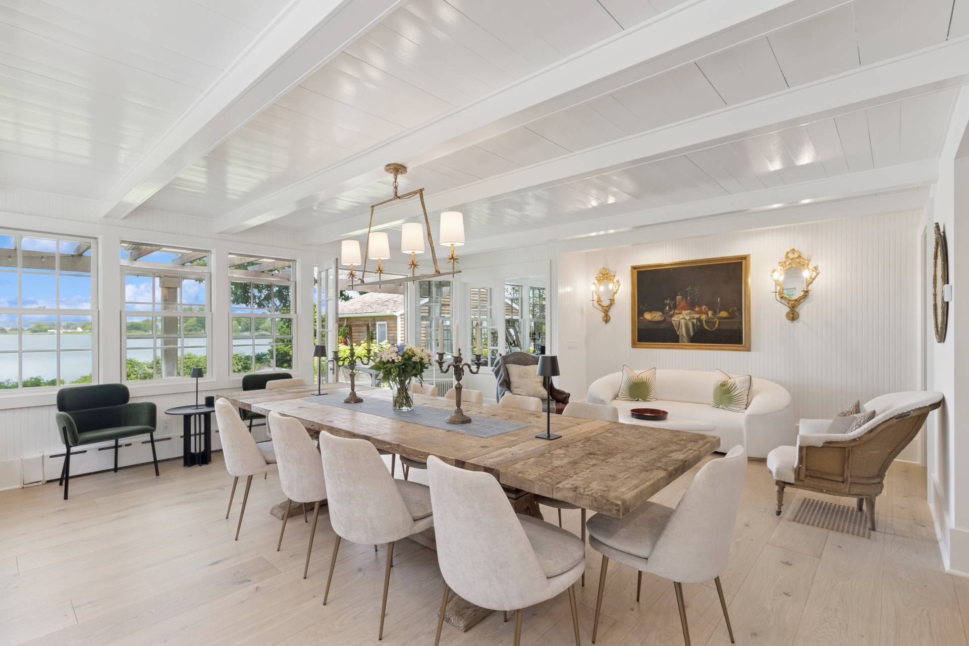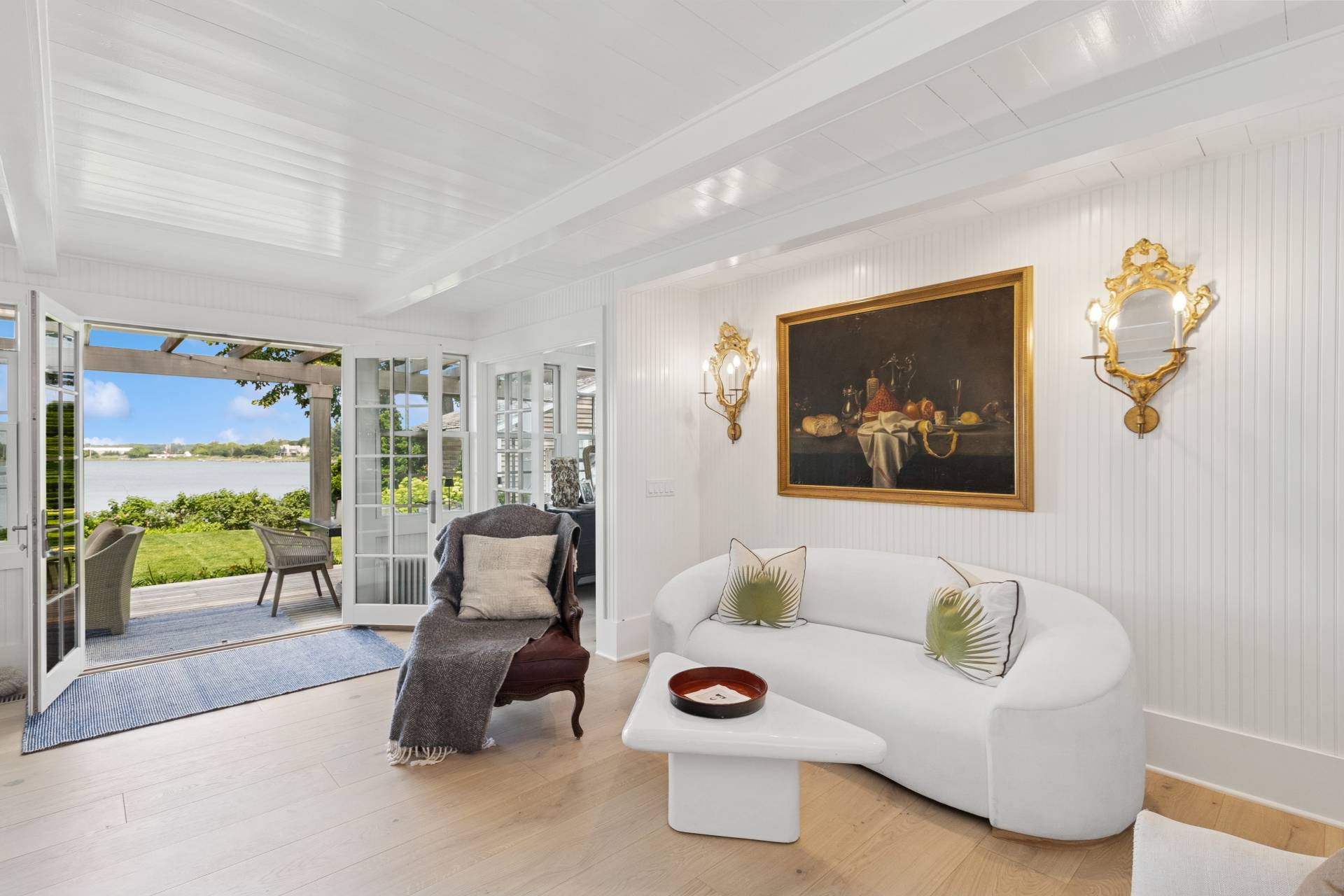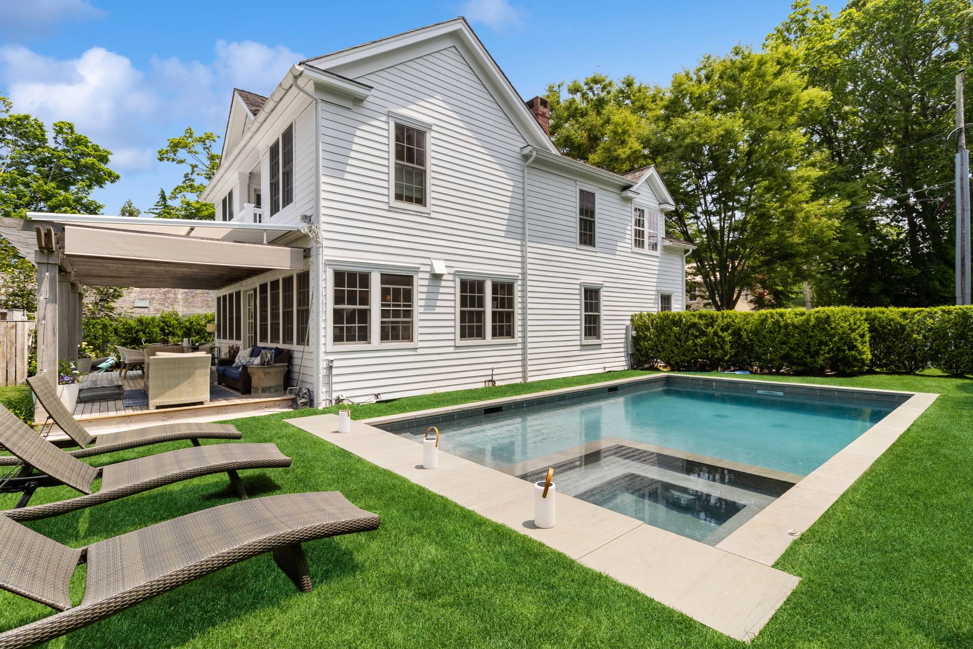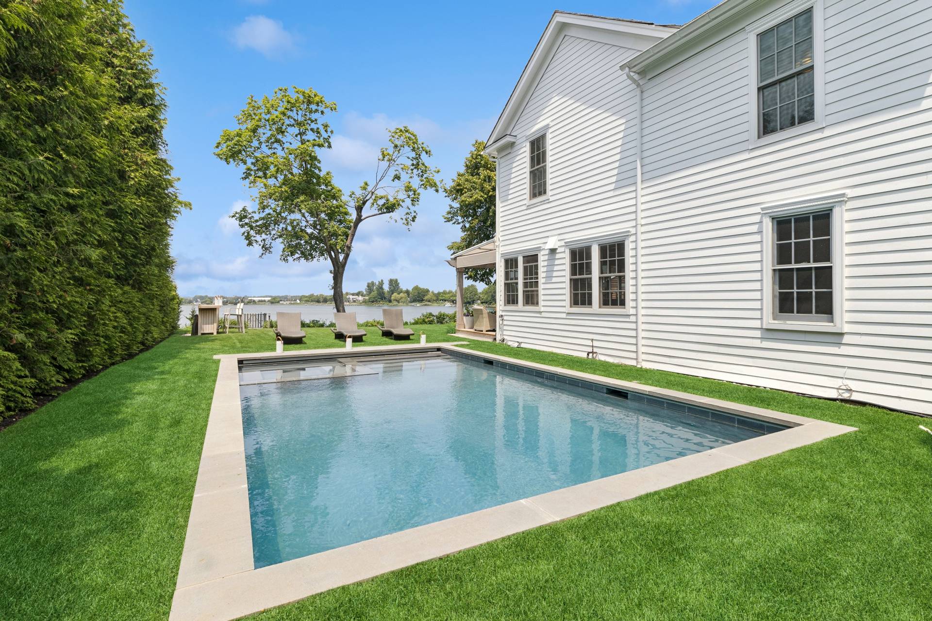 Step into a piece of history with this stunning 1835 home, beautifully renovated to offer modern comforts while maintaining its charming period details. Perched just minutes from the village, this exquisite property boasts breathtaking water views, spectacular sunsets, and a private dock accommodating a 30ft boat. Inside, enjoy the perfect blend of vintage charm and contemporary style with an open floor plan, bright interiors, and luxury bedding in four spacious bedrooms, two of which feature ensuite baths. A separate 1-bedroom, 1-bath cottage provides additional space for guests or personal retreats. Outdoor living is effortless with a large deck featuring a motorized awning, offering ample shaded seating rain or shine. Indulge in year-round relaxation with a heated gunite saltwater pool, complete with jacuzzi and swim jet, all surrounded by meticulously landscaped grounds and a sweeping lawn framing one of the best water views Sag Harbor has to offer. This rare gem in Sag Harbor village is a short, scenic stroll from shops, dining, and culture-offering a seamless blend of tranquility and convenience. Luxury, history, and breathtaking surroundings-this property has it all. Make it yours today!