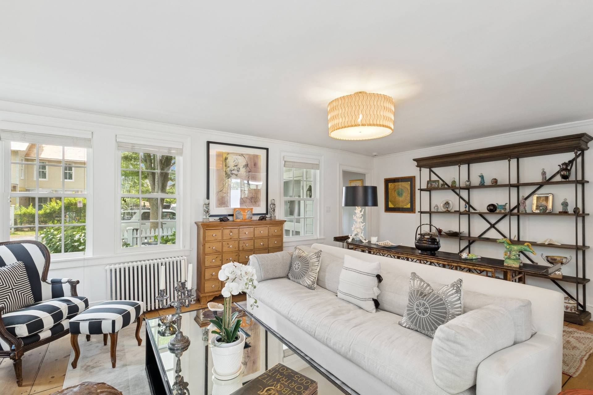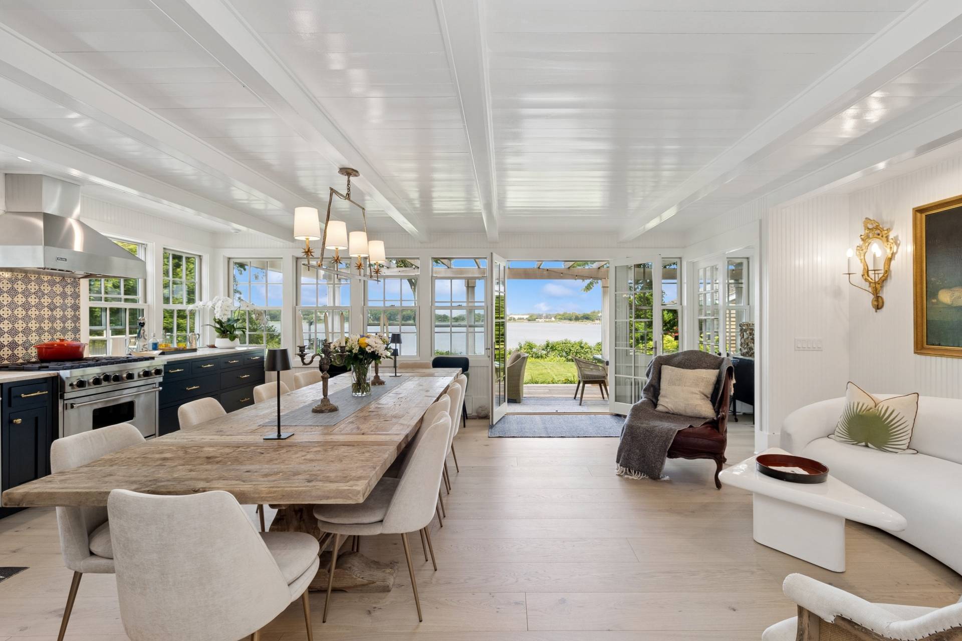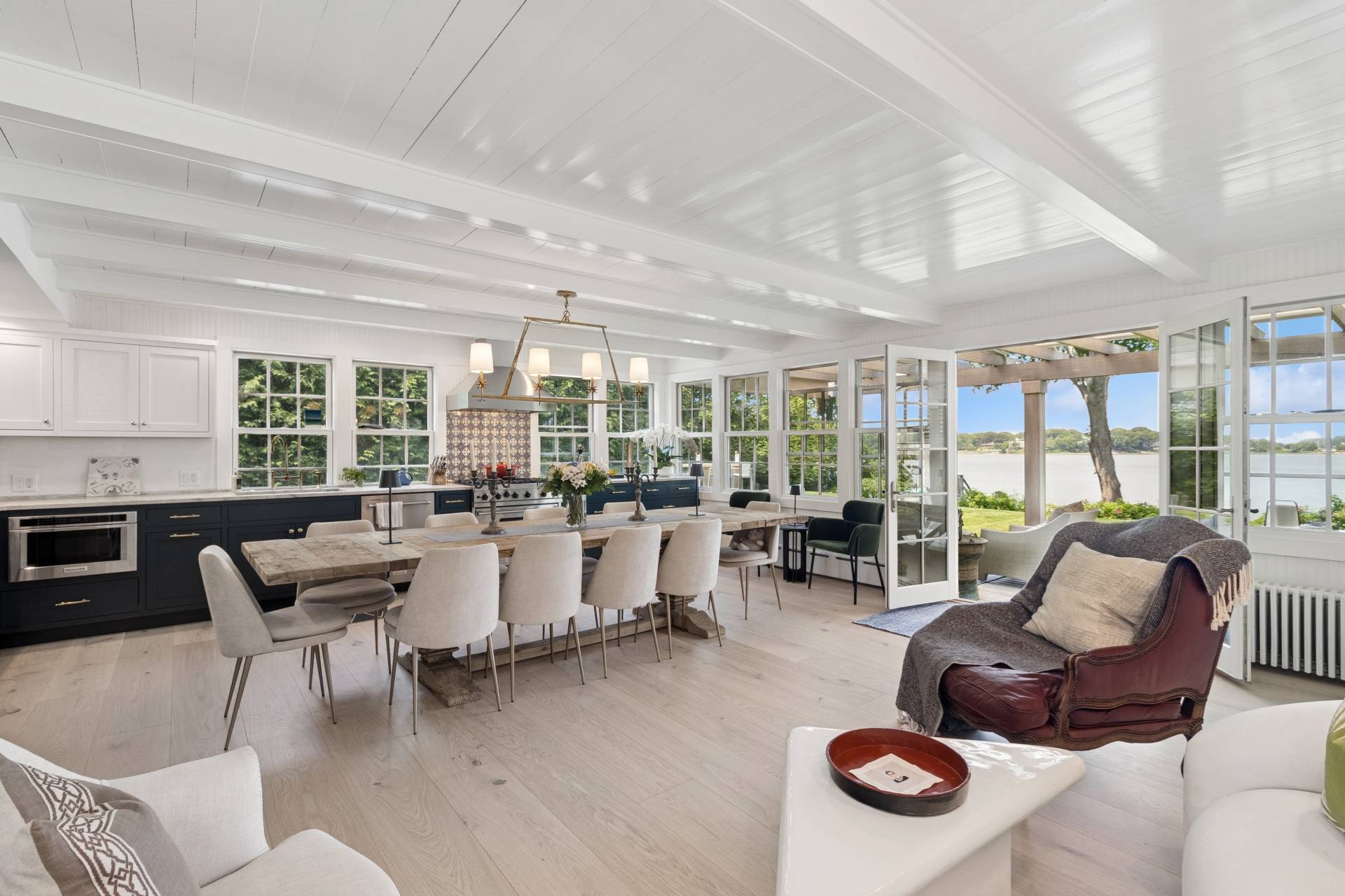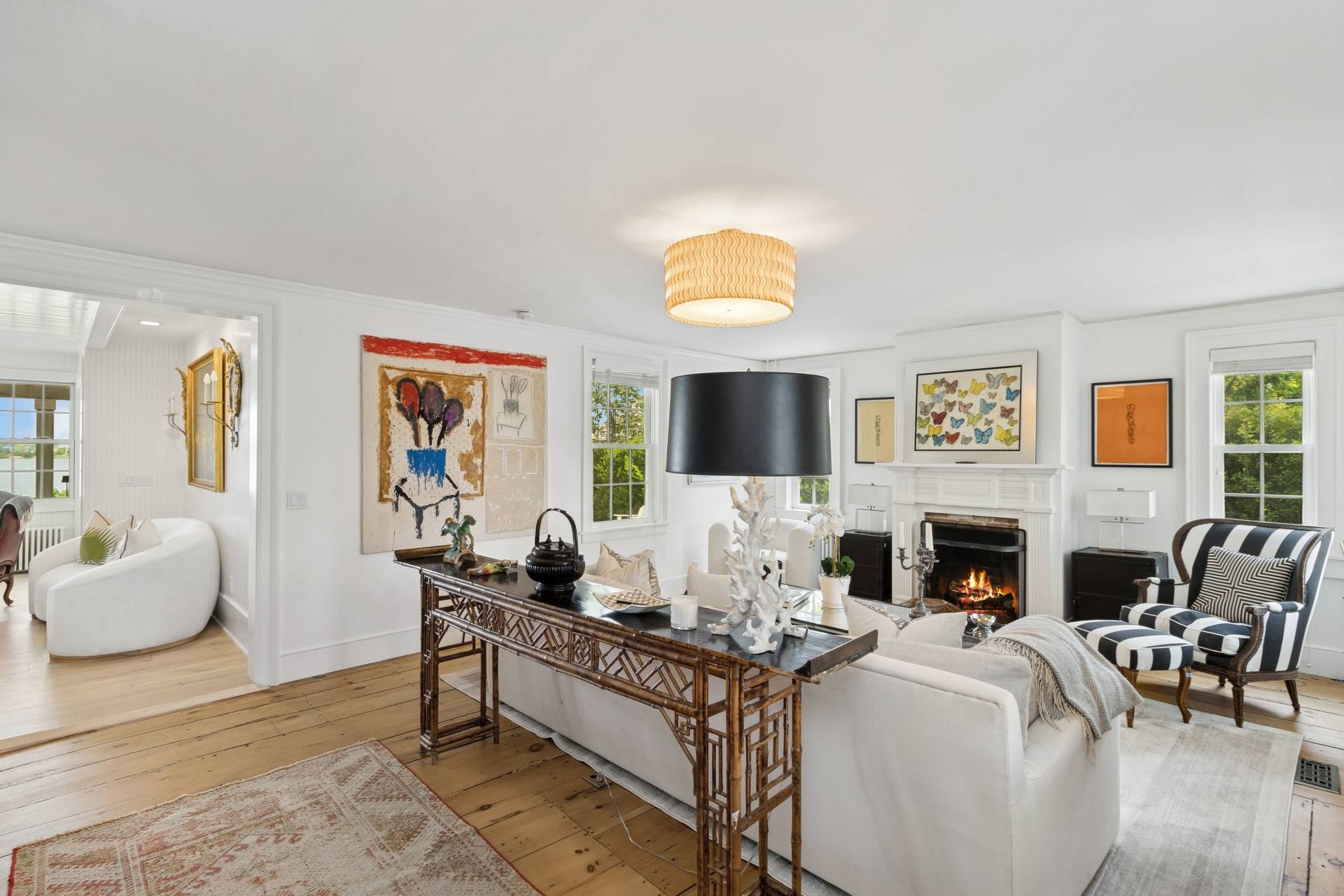 Step into a piece of history with this stunning 1835 home, beautifully renovated to offer modern comforts while maintaining its charming period details. Perched just minutes from the village, this exquisite property boasts breathtaking water views, spectacular sunsets, and a private dock accommodating a 30ft boat. Inside, enjoy the perfect blend of vintage charm and contemporary style with an open floor plan, bright interiors, and luxury bedding in four spacious bedrooms, two of which feature ensuite baths. A separate 1-bedroom, 1-bath cottage provides additional space for guests or personal retreats. Outdoor living is effortless with a large deck featuring a motorized awning, offering ample shaded seating rain or shine. Indulge in year-round relaxation with a heated gunite saltwater pool, complete with jacuzzi and swim jet, all surrounded by meticulously landscaped grounds and a sweeping lawn framing one of the best water views Sag Harbor has to offer. This rare gem in Sag Harbor village is a short, scenic stroll from shops, dining, and culture-offering a seamless blend of tranquility and convenience. Luxury, history, and breathtaking surroundings-this property has it all. Make it yours today!