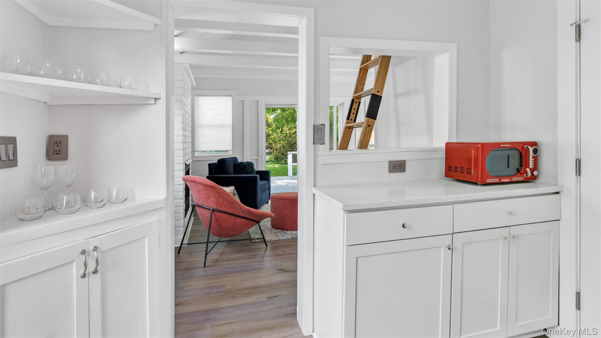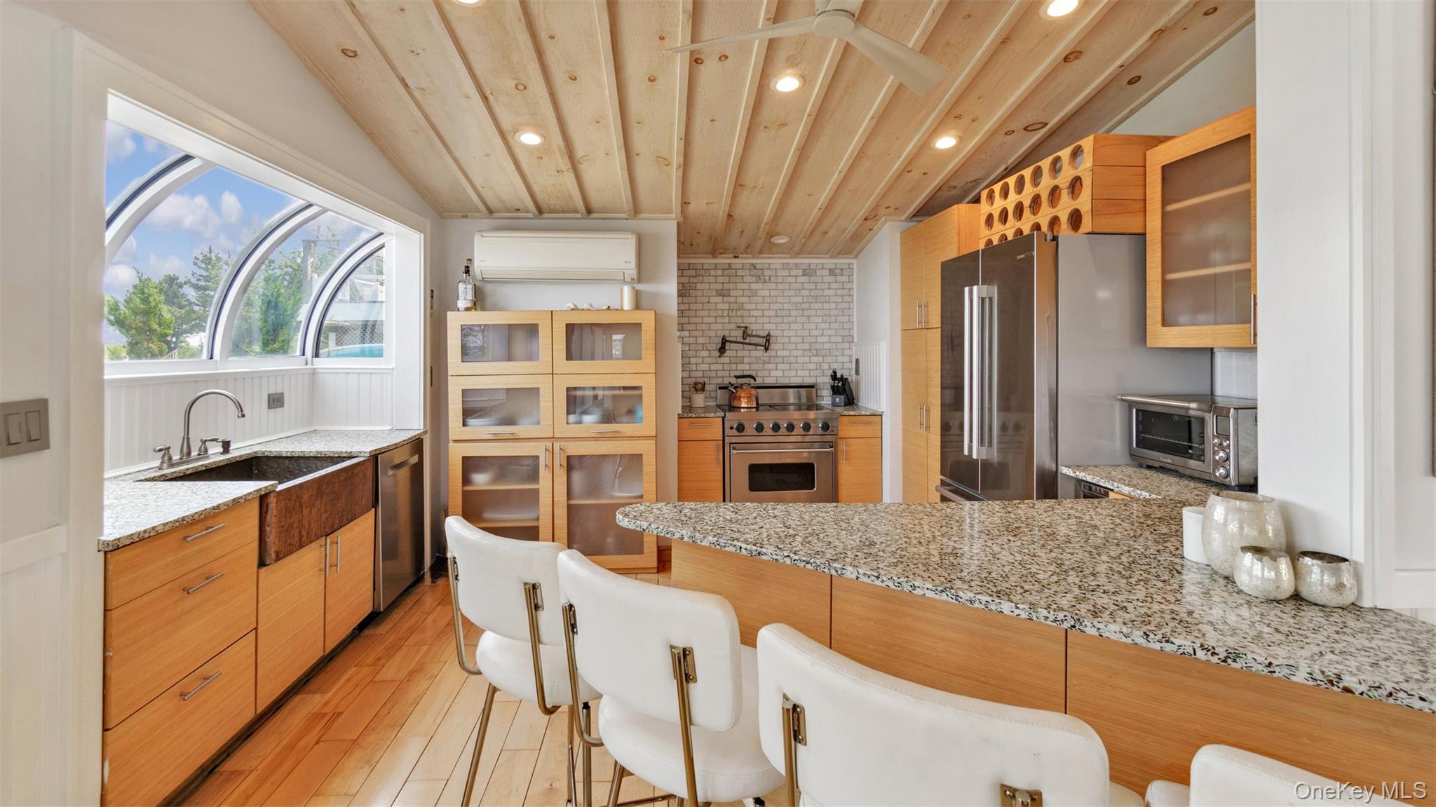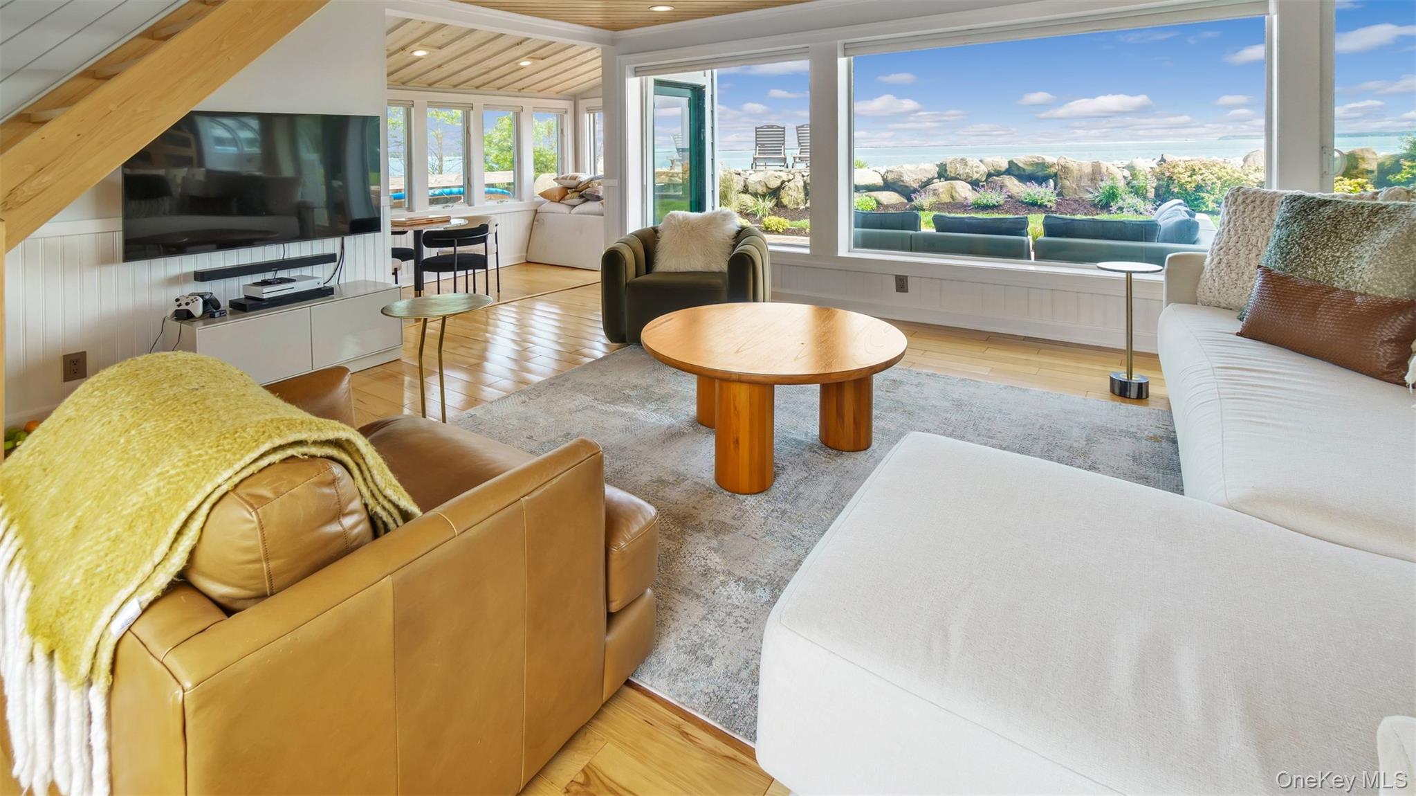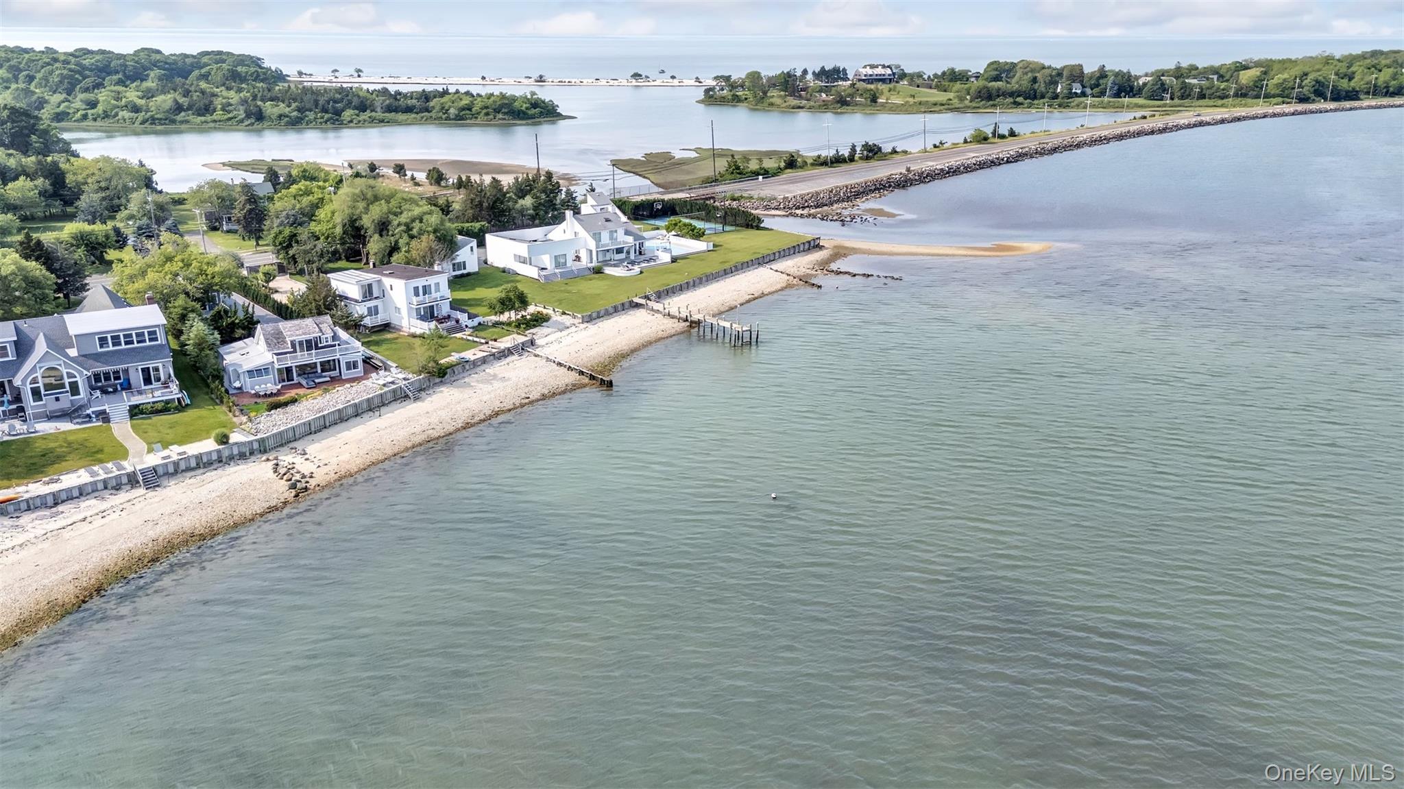 NOW IS THE TIME TO VISIT THIS AMAZING BAYFRONT PROPERTY AND FALL IN LOVE!! Paradise Found on Gardiner’s Bay! This is a rare 2 for 1 opportunity, consisting of a beautiful 2 Bedroom, 2 Bath Bayfront Main House, PLUS a 1 Bedroom, 1 Bath Guest Cottage! The property is fully bulk-headed with approximately 70 feet of serene and captivating beachfront along Gardiner’s Bay, and has undergone recent, significant renovations, both inside and out. Stunning new landscaping has been installed by a well-known, professional landscaper, including abundant Blue Junipers, to create a natural, green privacy screen, as well as a variety of attractive plantings, which are both deer-resistant and salt-water resistant, conducive to the waterfront setting. A new Bluestone driveway has also been installed, which so perfectly complements the natural beauty of the Blue Bay and Blue Sky! The First Floor of the Main House features an open floor plan with a light and bright, gracious Living Room, Sunroom, and Eat-in-Kitchen, surrounded by a wall of windows with gorgeous, endless views of Gardiner’s Bay and “Bug Light. " There is a Guest Bedroom and Full Bath on the first floor as well. The Primary Ensuite is located on the entire second floor of the Main House, featuring a wrap-around balcony with seating and sweeping water views. There is a classic, red-brick patio off the rear of the home, which is an ideal outdoor entertaining area for friends and family alike. And, there is a separate, elevated, slate patio where one may observe the wonders of the sea, such as flying Osprey fishing for their next meal, as well as Kayakers, Paddle-boarders and Boaters enjoying the beautiful, pristine waters. For the landlubber, shell collecting is a must, as is frolicking along the shoreline. After a long and enjoyable day by the Bay, your friends or family may take comfort in the Guest Cottage, with its own Kitchenette, featuring a brand-new matching retro-red Refrigerator and Microwave, a large open Living Room with a vaulted ceiling and gas fireplace, an upstairs Loft/Storage Area, and an outdoor deck for reading and relaxing, as well as having its own washer and dryer. 12910 Main Road will assuredly become your Escape Destination, providing a lifestyle you so richly deserve! Although time and pace may slow down here, for additional activities and options, the Village of Greenport is only a short distance away, offering a vast array of Art Galleries, Museums, Fishing Charters, Boutique Shops, Breweries and Cideries, Waterfront Dining and other Entertainment Venues. Simply stated, this property is not to be missed!! Room for a Pool.
