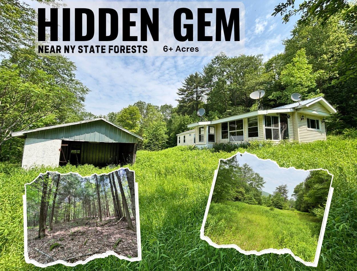 Tucked away on over 6 gently sloped acres along a quiet private road, this serene property offers the perfect blend of privacy, natural beauty, and convenience to adventure. Whether you're dreaming of building your own escape, creating a weekend basecamp, or embracing a simpler lifestyle, this unique parcel is ready to inspire. A driveway winds through the trees to a peaceful clearing, where you'll find an old mobile home (not inhabitable) on a slab, a 2-car garage, woodshed, and a sense of potential around every corner. With electric service, a drilled well, and septic system already in place (condition unknown), much of the hard work is already done. Enjoy a view of the mountain, a mix of open space and woods, and total seclusion, all while being minutes away from some of the region’s top destinations such as the Afton Fairgrounds & Afton Motorsports Park, Animal Adventure Park, Oquaga Creek State Park, and Beaver Pond & Marsh Pond State Forests. Whether you're looking for a weekend retreat, hunting camp, or future homesite, this property is brimming with opportunity in the heart of Upstate New York’s wild and wonderful countryside. Bring your vision—and your sense of adventure!