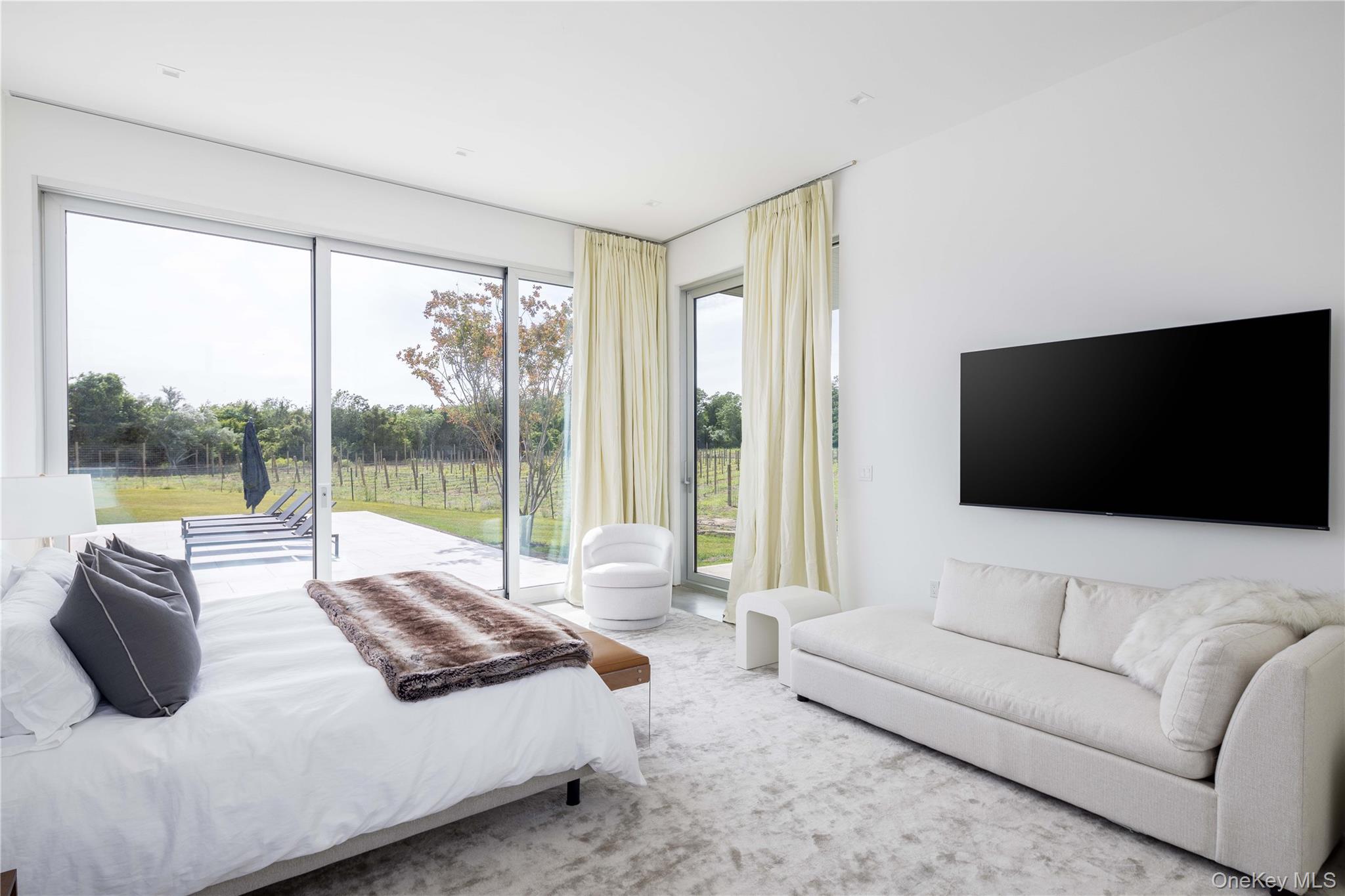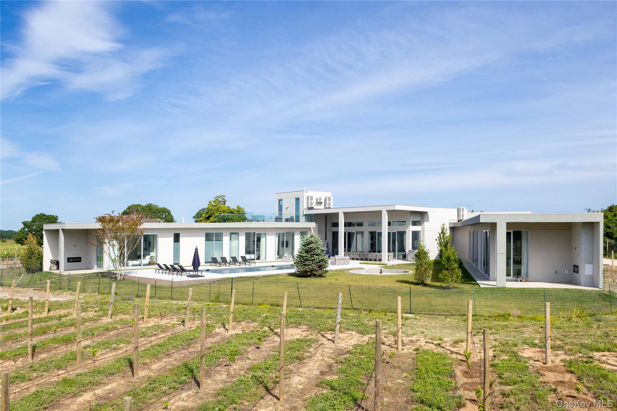 Don't miss your chance to rent this unparalleled estate, nestled on 5 picturesque acres among the region's most prestigious vineyards. This magnificent home is a perfect blend of elegance and tranquility, ideal for those seeking a refined living experience. Spanning an impressive 7, 000 sf, the residence is designed with sharp attention to detail. Floor-to-ceiling windows flood the space with natural light and provide breathtaking views of the surrounding vineyards. Featuring six generously sized bedrooms and six opulent bathrooms, ensuring ample space and privacy for everyone. The expansive roof deck is a standout feature, offering panoramic views that stretch across the vineyards to the Long Island Sound. A beautiful gunite heated pool in the courtyard with firepit and entertainment space. This serene setting is perfect for both entertaining guests and enjoying quiet moments. This is a perfect house to share with friends and family. May $35K; June $35K; July 80k; August 80k; Sept. 35K