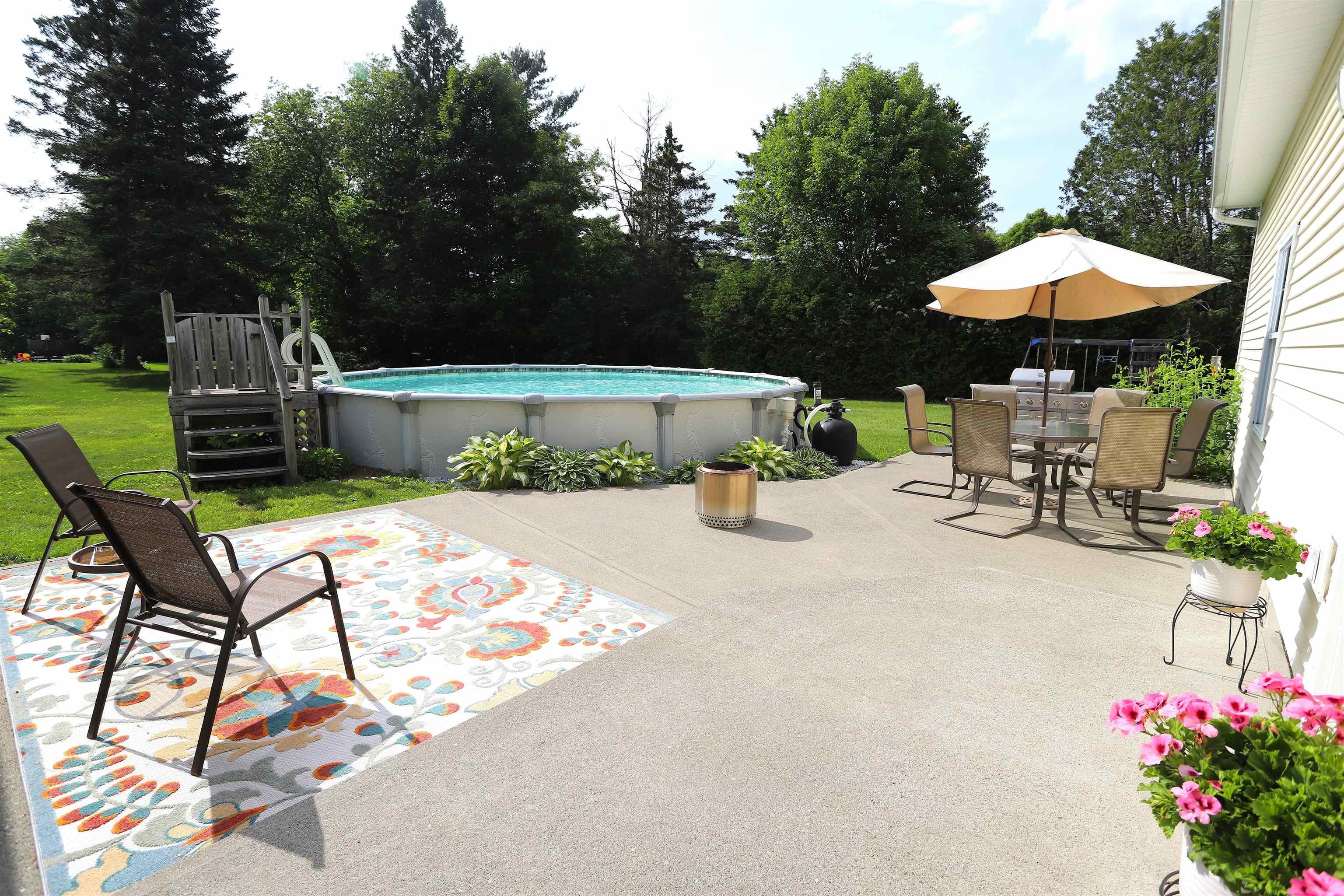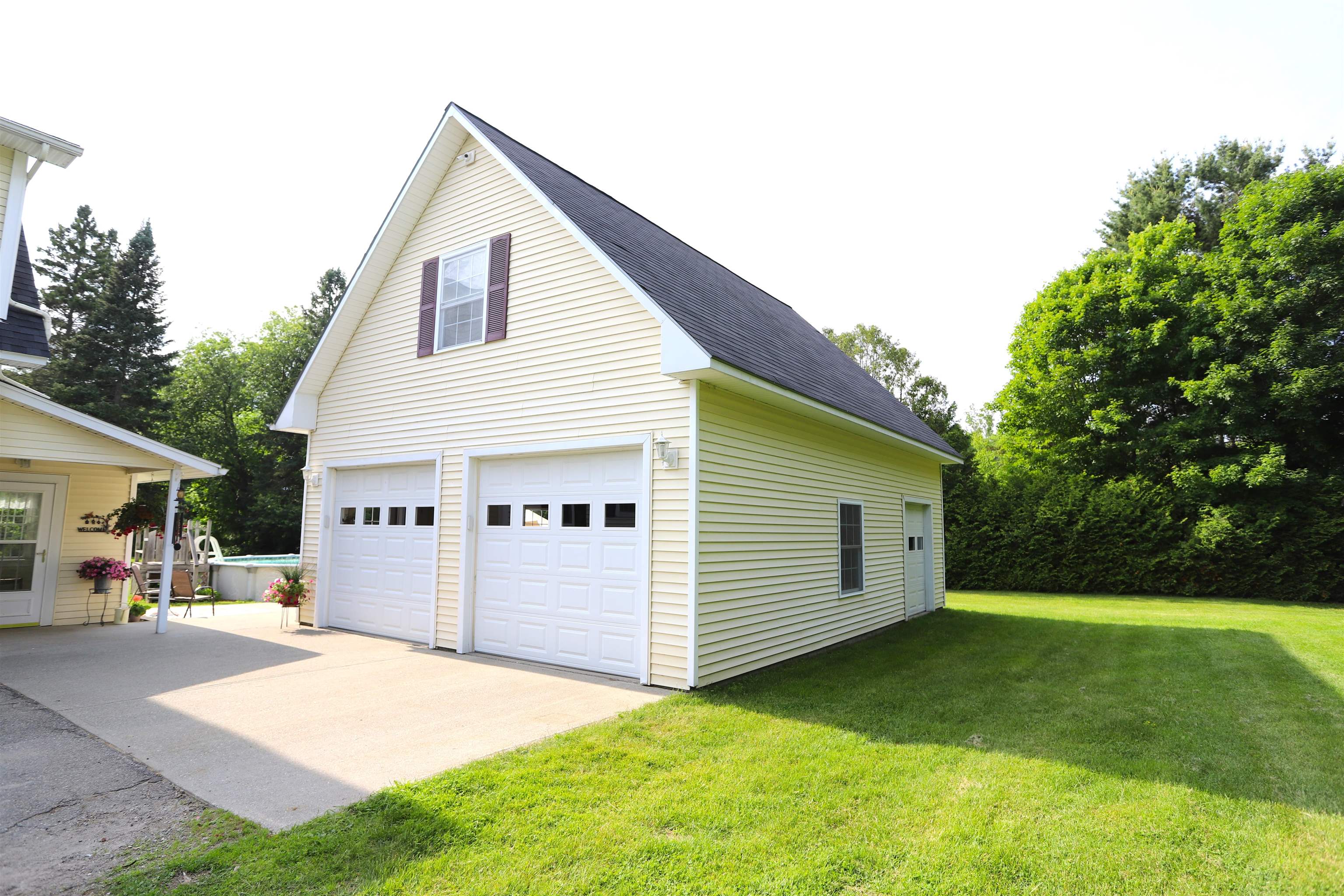 Welcome to this meticulously maintained home on a spacious 0. 47-acre lot within the Village of Derby Line, VT. This fully renovated & modernized home leaves nothing to do but move in and enjoy all the luxuries it has to offer. Offering 2, 100+ sq. ft. of finished living area, it features 4 bedrooms & 2 baths, 2 enclosed porches, an oversized 2-story heated garage (24’x32’) and a Jacuzzi 24’ above-ground pool. The main level boasts beautiful hardwood floors, a modern kitchen with granite counters, a spacious living room, formal dining room, 2 bedrooms, and a full bath. The 2nd floor features a family room, large primary bedroom w/ a walk-in closet, an additional bedroom and a full bath. The lower level is partially finished with an exercise room and also offers plenty of unfinished storage & workshop space. This is an efficient home w/ vinyl windows & siding throughout, a Smith boiler w/ baseboard hot water heat, secondary heat via a coal stove and a new roof. It is serviced by public water & sewer and high-speed Xfinity cable & internet. All of this is set in a quiet location on a dead-end street with a spacious, tastefully landscaped lot featuring a variety of perennials. Enjoy the convenience of village living within walking distance to Baxter Park, the library, Derby Elementary School, the Canadian border crossing and more. Easy VAST snowmobile trail & VASA ATV access nearby. The sellers have enjoyed this property for 27+ years and have updated almost every inch of the home.
