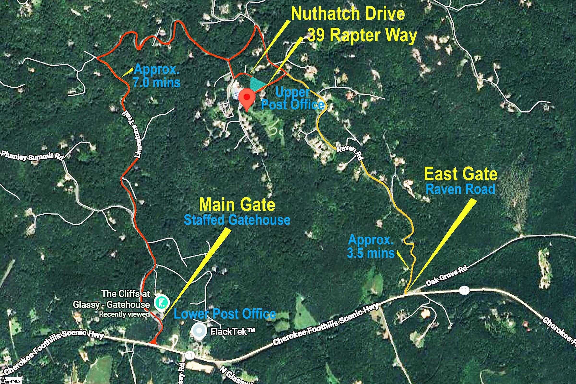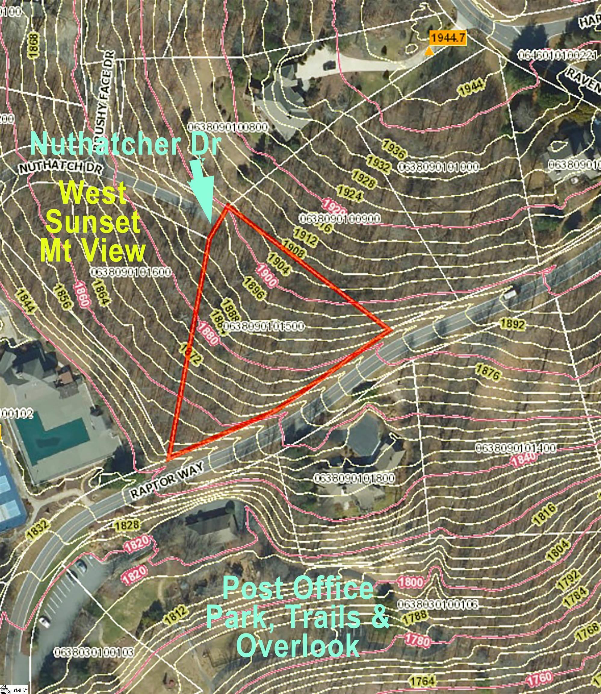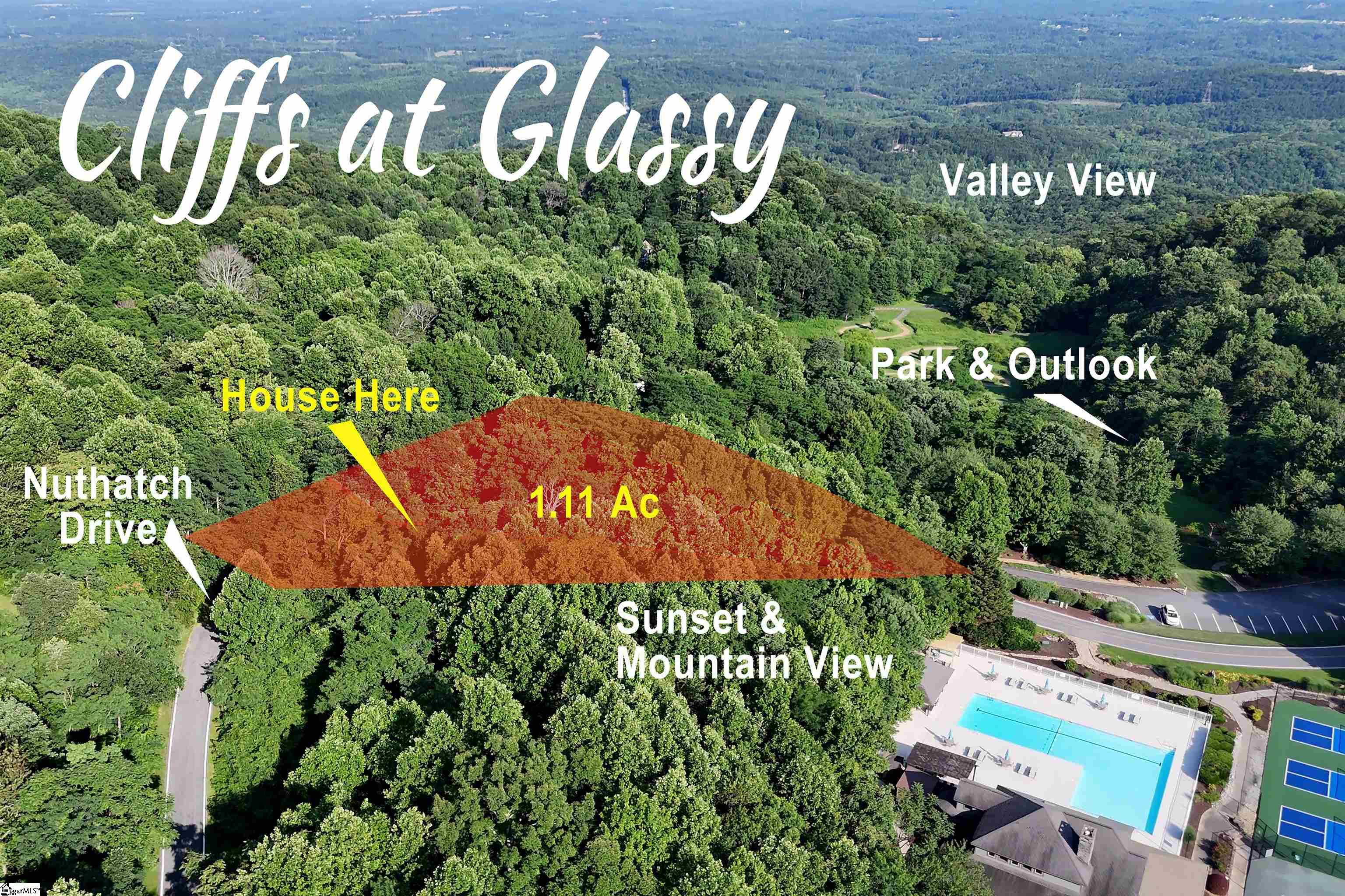 GENTLY SLOPED BUILDING SITE, ideal for a custom home and even a FUTURE IN-GROUND POOL. The pinnacle of mountain elegance at THE CLIFFS at GLASSY, the original gated crown jewel of Landrum SC property offers DUAL ACCESS FROM NUTHATCH DRIVE or RAPTOR WAY and is mostly wooded with SMALLER TREES for EASIER CLEARING, allowing you to open up and capture the STUNNING VALLEY AND MOUNTAIN VIEWS, including beautiful SUNSETS. Imagine evenings on your future porch or patio watching the sun dip behind the mountains, creating the perfect setting for relaxing or gathering with family and friends. *** Enjoy outdoor living and privacy since the lot offers approximately 344 FEET OF ROAD FRONTAGE, providing flexibility for your build while maintaining a peaceful, natural setting. Conveniently located within WALKING DISTANCE to the UPPER POST OFFICE, in this vibrant community hubs of the SCENIC VALLEY OVERLOOK, PARK, TRAILS, PLAYGROUND, DOG PARK and just a SHORT DRIVE TO THE EAST GATE for easy access in and out of the community. *** Experience mountain living at its finest, in this enchanted gated community where everyone is friendly and inviting, known for its dramatic elevation, natural beauty, and vibrant lifestyle. While CLUB MEMBERSHIP IS NOT INCLUDED, membership options may be available and can be discussed. I’m also happy to assist with PERC AND SOIL TESTING, or connect you with some of the AREA’S PREMIER BUILDERS to help bring your MOUNTAIN DREAM HOME to life.