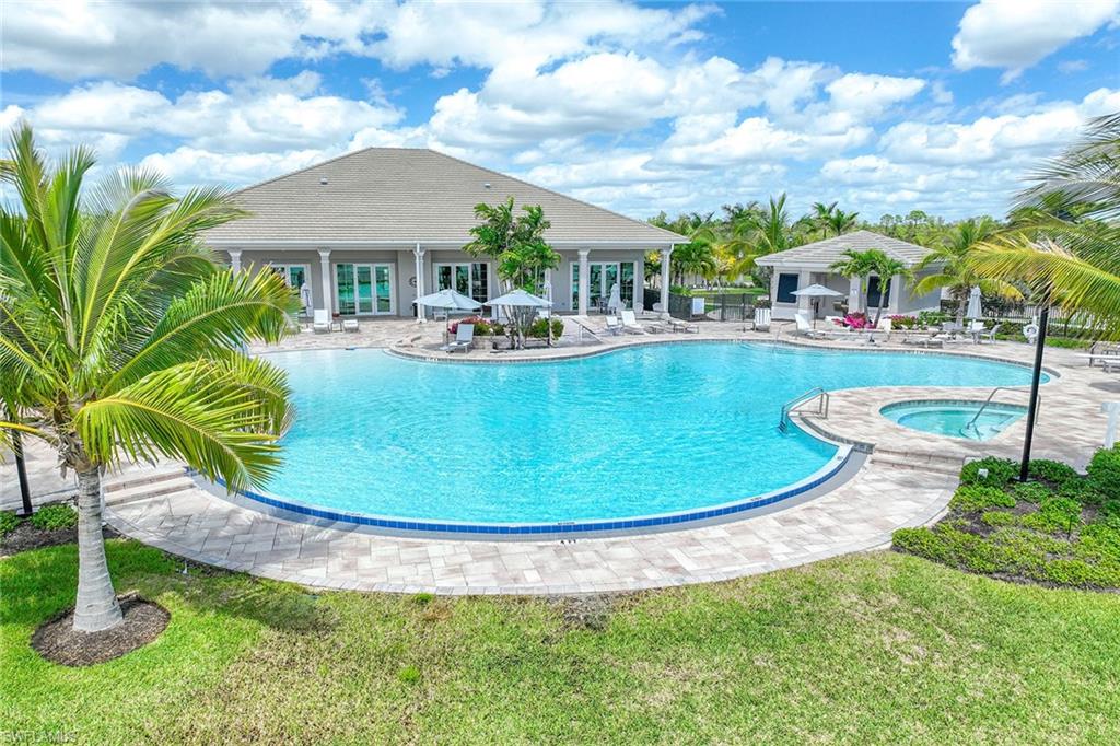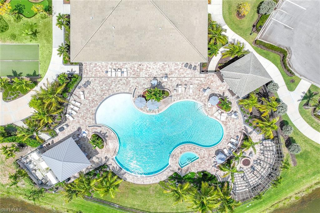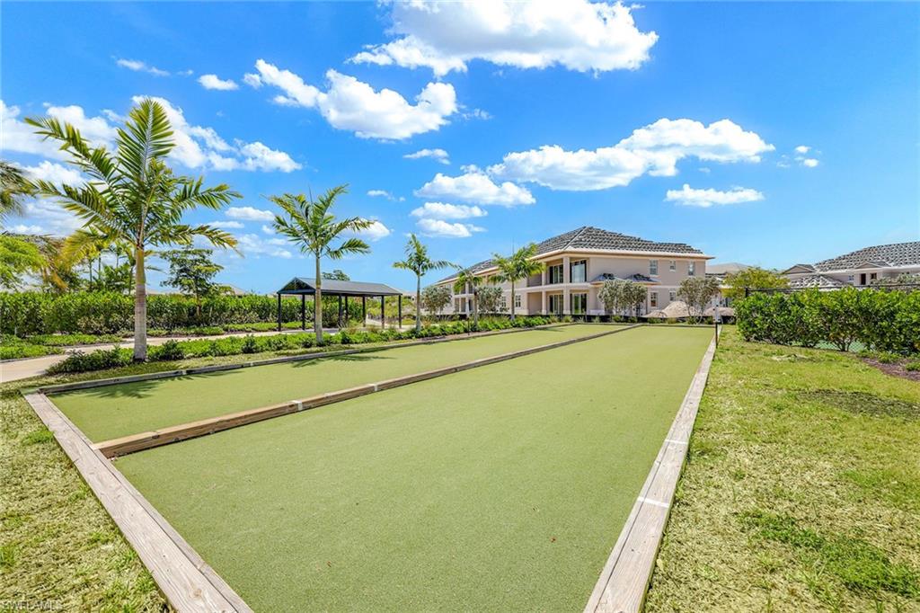 Amenities available include 4 pickleball courts, 2 bocce courts, outdoor kitchen with grill, fire pit seating area and clubhouse with kitchen.