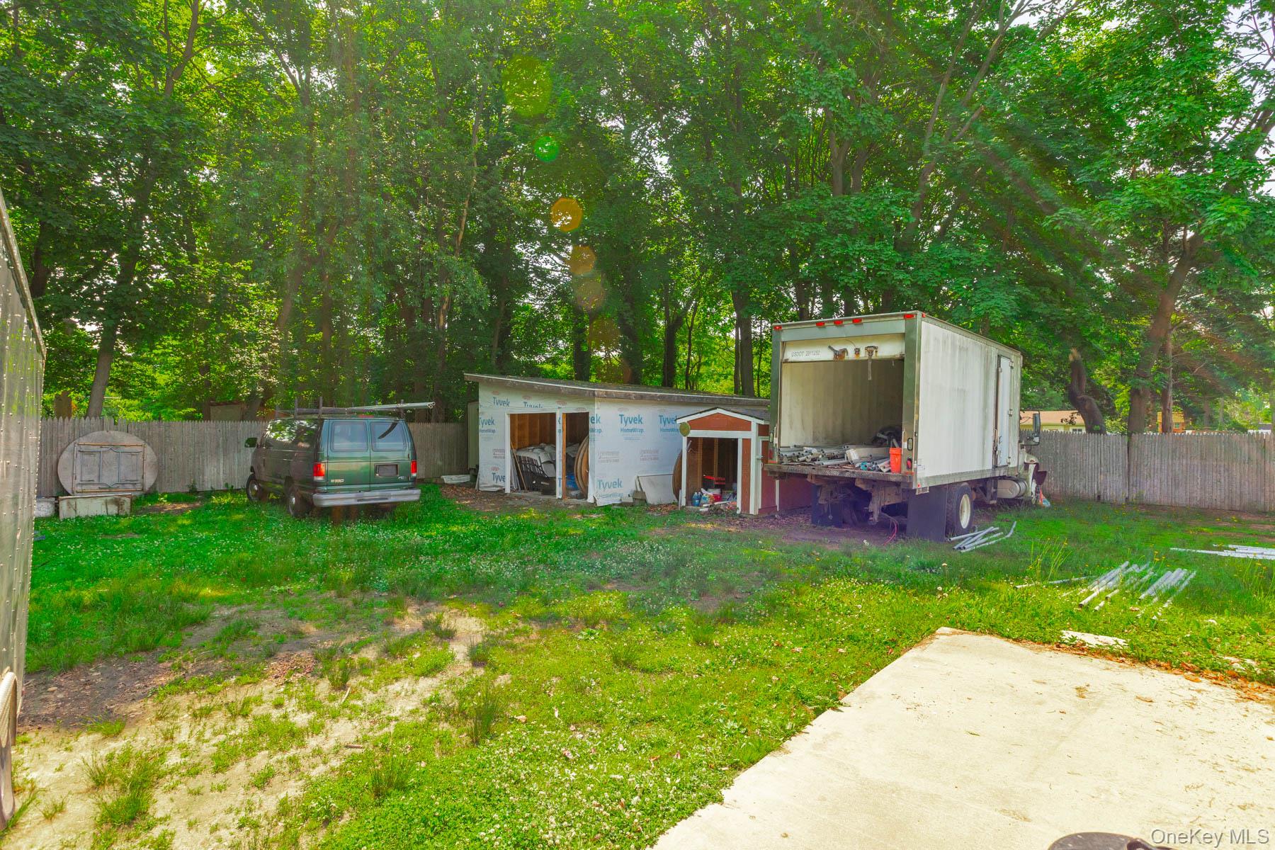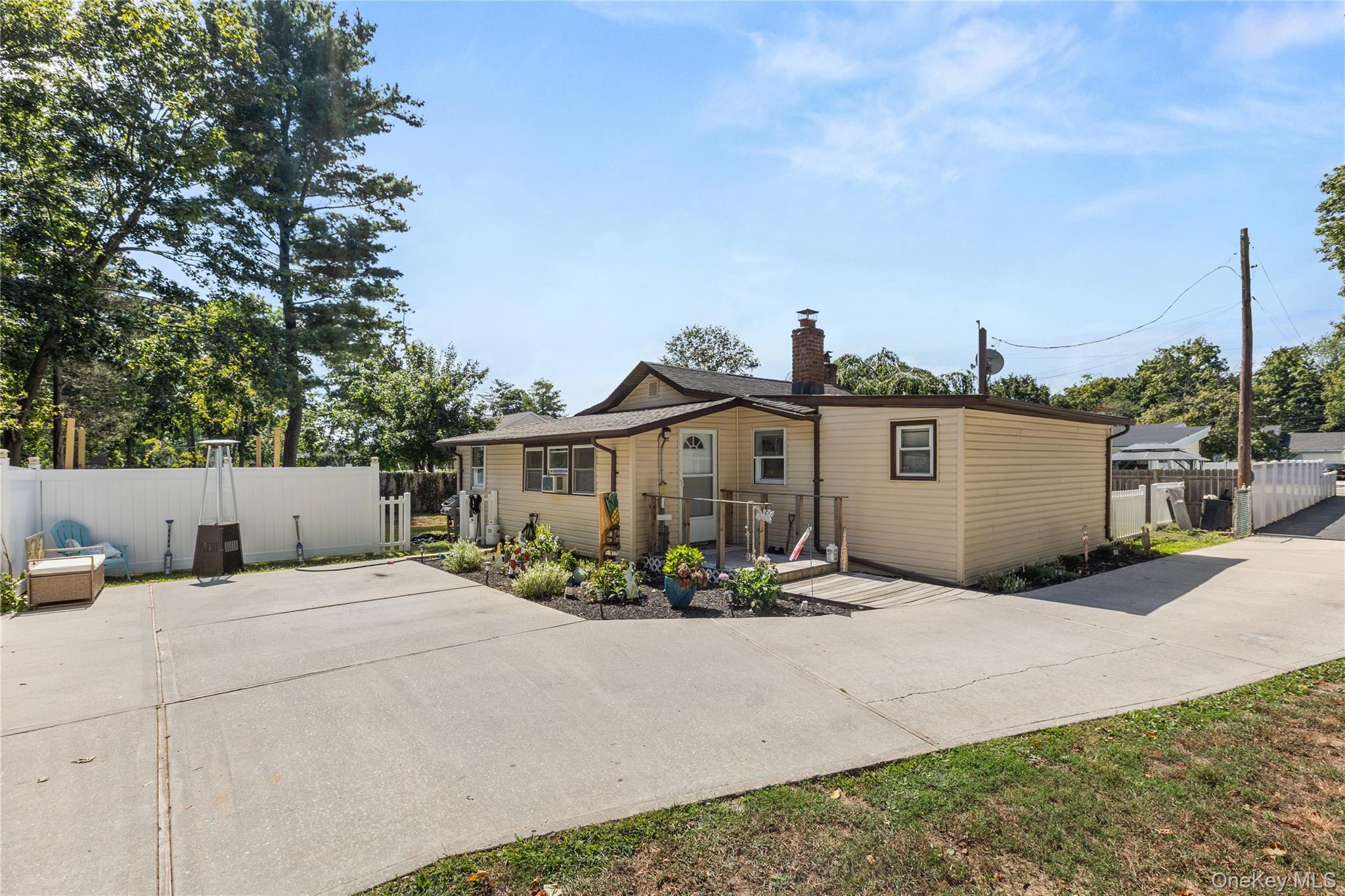 Charming and updated ranch set on a private flag lot. This home offers an inviting open-concept living and dining area centered around a large fireplace. The kitchen includes a laundry area and mudroom for added convenience. You’ll find three bedrooms and a newly renovated full bath. Additional highlights include a large walk-in closet (or potential office space), pull-down attic stairs for extra storage, and an oversized lot with two electric-equipped sheds and a fenced storage area