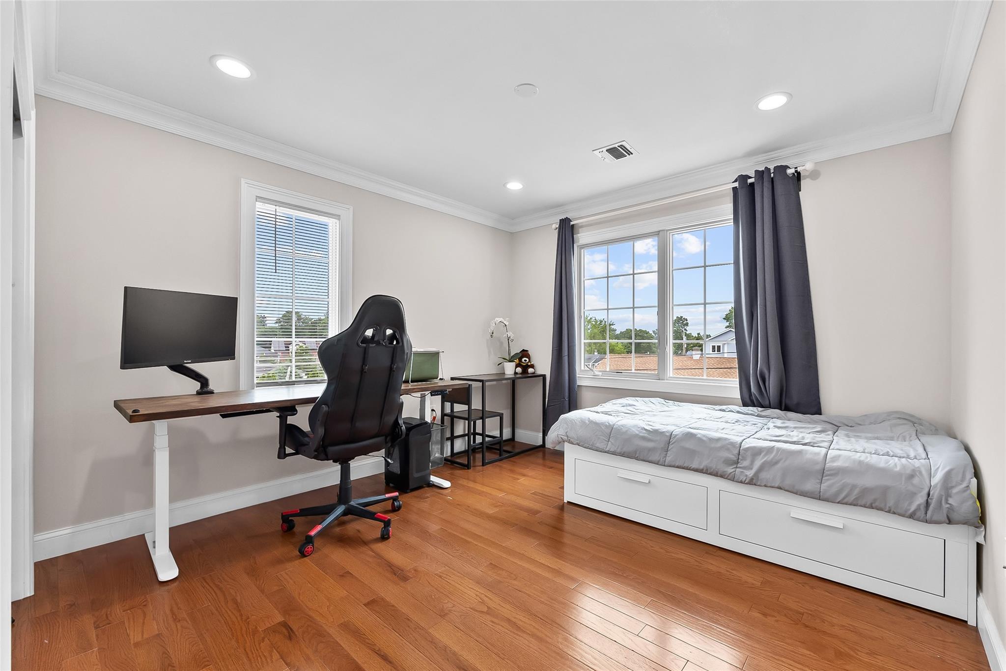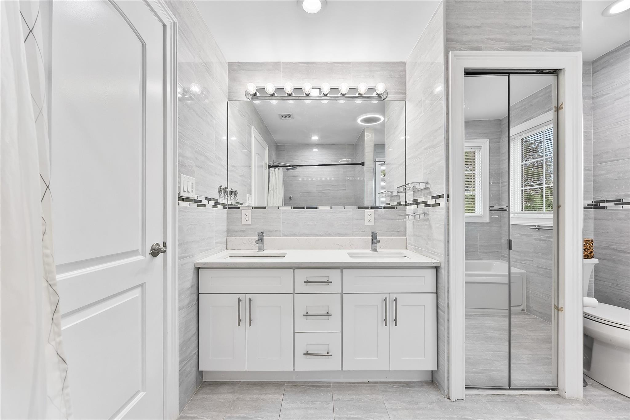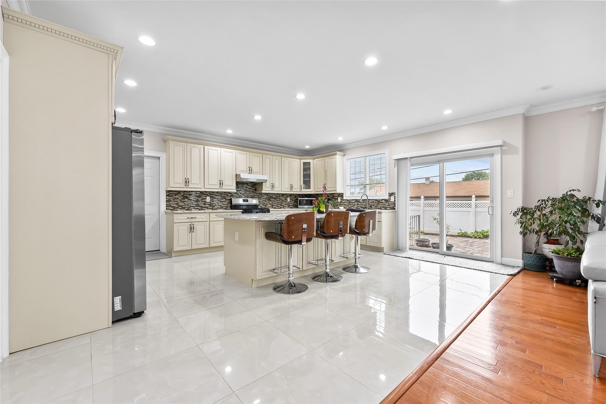 Luxuriously Remodeled, and Significantly Expanded Colonial Home in Plainview offers luxurious living with 6 bedrooms, 4. 5 bathrooms, and a fully finished basement with a full bath and separate entrance. The grand double-height entry sets the tone for the spacious and open layout. The first floor features a stunning custom eat-in kitchen with a large center island, stainless steel appliances, and an adjoining family room with a gas fireplace—perfect for entertaining. A junior en-suite bedroom on the first level provides ideal space for guests or multigenerational living. Second Floor the oversized primary master bedroom includes a spa-like bath and a walk-in closet. Four additional large bedrooms, a full bathroom, and a convenient second-floor laundry room. Crafted with exceptional workmanship and high-end finishes throughout, this move-in ready home is located close to transportation and shopping, and is zoned for the desirable Plainview-Old Bethpage School District.
